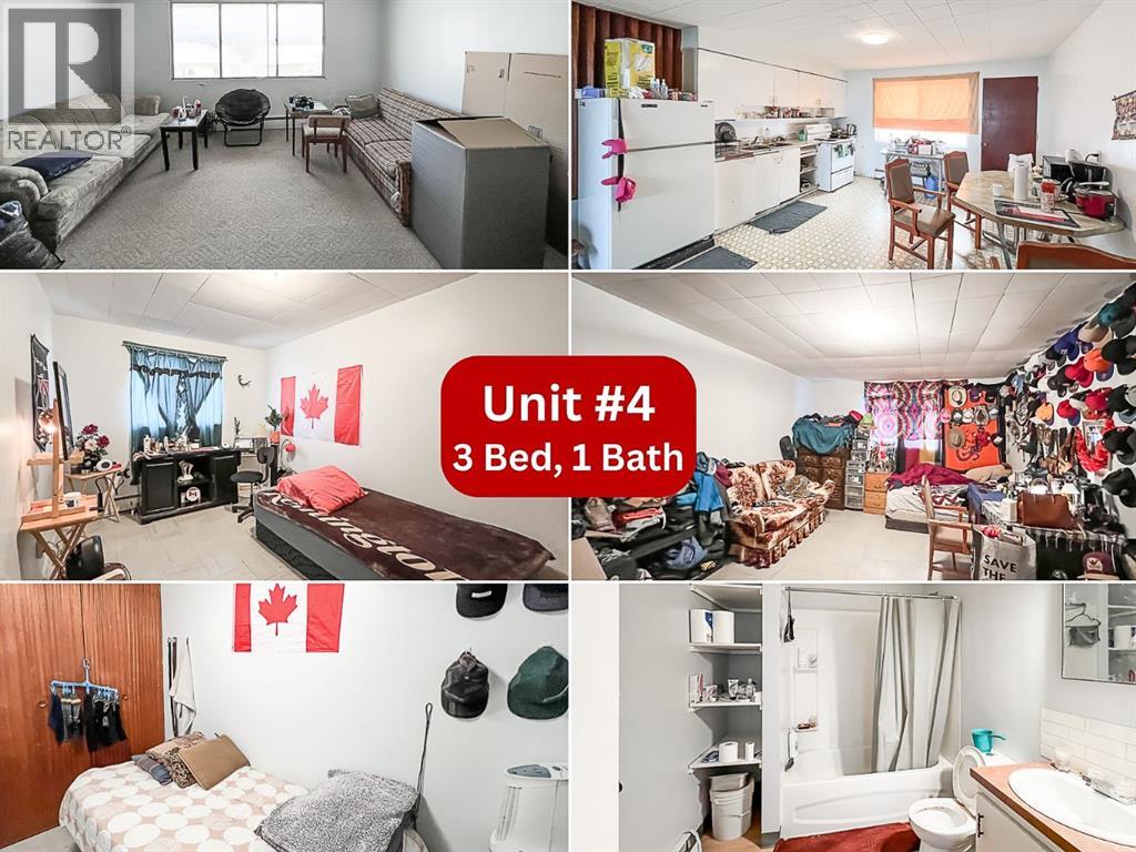 Investment opportunity with this 7-unit apartment building located in the community of Falher. The property offers a desirable mix of unit sizes, making it attractive to a broad range of tenants. The building includes five 3-bedroom, 1-bathroom units (Units 1, 2, 3, 4, and 7), each featuring its own dedicated laundry room, and two 1-bedroom, 1-bathroom units (Units 5 and 6) with coin laundry. Additional building features include keyless entry for enhanced security and convenience, as well as separate storage rooms and coin laundry machines for tenant use. Several upgrades have already been completed, including replacement of all bottom-unit windows, adding value and peace of mind for future ownership. This apartment building provides strong rental income and is conveniently located near local amenities and services, making it an excellent opportunity for investors seeking stable returns and long-term growth. Book your showing today! (id:63190)