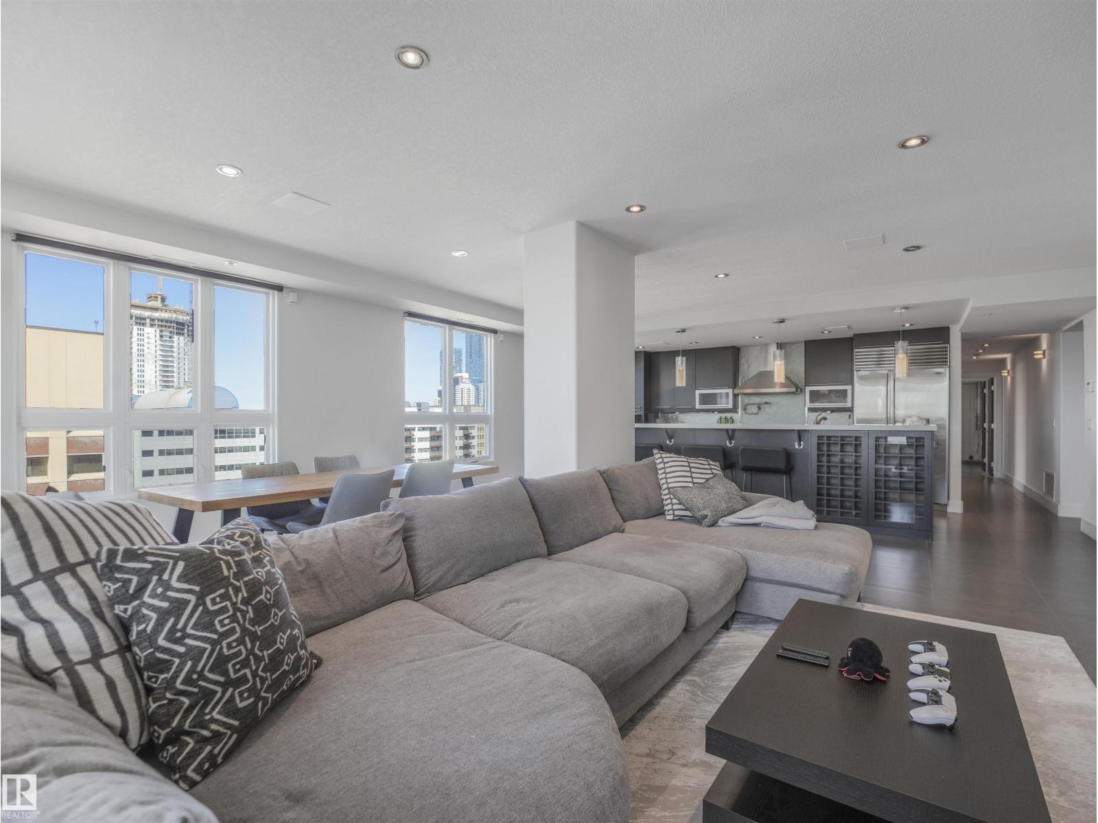 Experience unparalleled luxury in this exquisite SUB-PENTHOUSE located in the prestigious Parliament The, nestled in the heart of downtown. Designed by an esteemed interior designer, this lavish 17th-floor suite spans 1311 square feet and boasts opulent finishes, including SubZero, Viking & Miele Appliances. Perfectly tailored for discerning executives, it features 2 bedrooms, 2 deluxe baths, and an open kitchen concept with custom-engineered Granite, dark maple cabinets, and 18 ceramic tile floors. Enjoy breathtaking views of downtown from the west-facing balcony, complemented by a gas fireplace and a gas line for BBQ. Additional amenities include in-suite laundry, storage, AIR CONDITIONING, and TWO side-by-side TITLED underground heated parking spaces. With proximity to LRT, leading universities, and major corporations, this residence offers unrivaled convenience. Embrace urban living at its finest, steps from renowned cultural attractions, shopping centers, and the serene trails of the river valley. (id:63190)