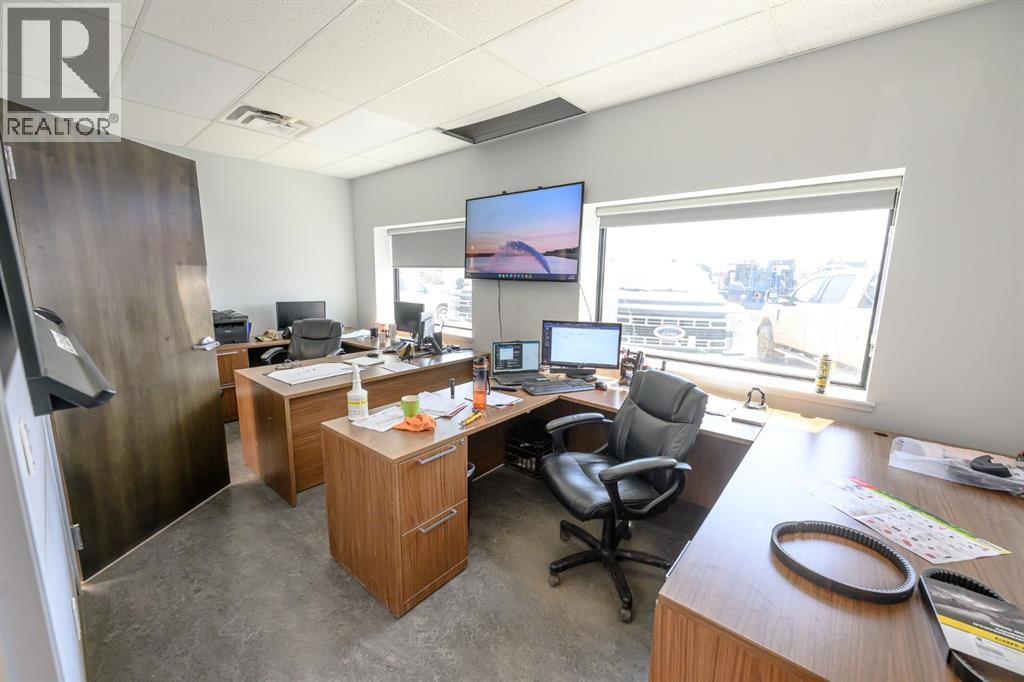 “AAA” INDUSTRIAL FACILITY ON 9.32 ACRES. Property offers RM-2 ZONING, MUNICIPAL WATER & SEWER SERVICES, FULLY FENCED & GRAVELLED LOT, EASY HIGHWAY ACCESS, TWO 10-TON CRANES, DEDICATED WASH-BAY, 25’+ CLEAR CEILING HEIGHT OUTSIDE OF CRANE AREAS, TWO PARTS AREAS, LOCKER ROOM & LUNCHROOM. CURRENT CONFIGURATION OFFERS 18,000FT.+/- OF SHOP AREA & 5400FT. OF OFFICE/SHOP SUPPORT AREA. THE QUALITY & CONDITION OF THE PROPERTY EXCEEDS MANY OTHER AVAILABLE OPTIONS IN THE MARKET. Main shop area: 10,300ft.(100’L x 103”W) WITH EIGHT 18’ O.H.D.’S. Washbay area: 2700ft.(27’ x 100’) WITH TWO 18’ O.H.D.’S. Secondary Shop area: 5000ft.(50’W x 100’L) WITH THREE 18’ O.H.D.’S. THIS AREA ALSO INCLUDES A 1250ft.+/; office area with five offices, lunch area & bathroom. Main office area: 5400ft.+/- hosting up to 12 large offices plus boardroom, two kitchen area & storage space. The exterior of this property is well set up for a variety of uses with good turning radius, separate secured employee parking area, yard lighting, etc. This is currently listed as a sublease opportunity with lease term running to November 2030. Occupancy available in the fall of 2025. Call a commercial Broker today to arrange a property tour and gather additional information. (id:63190)