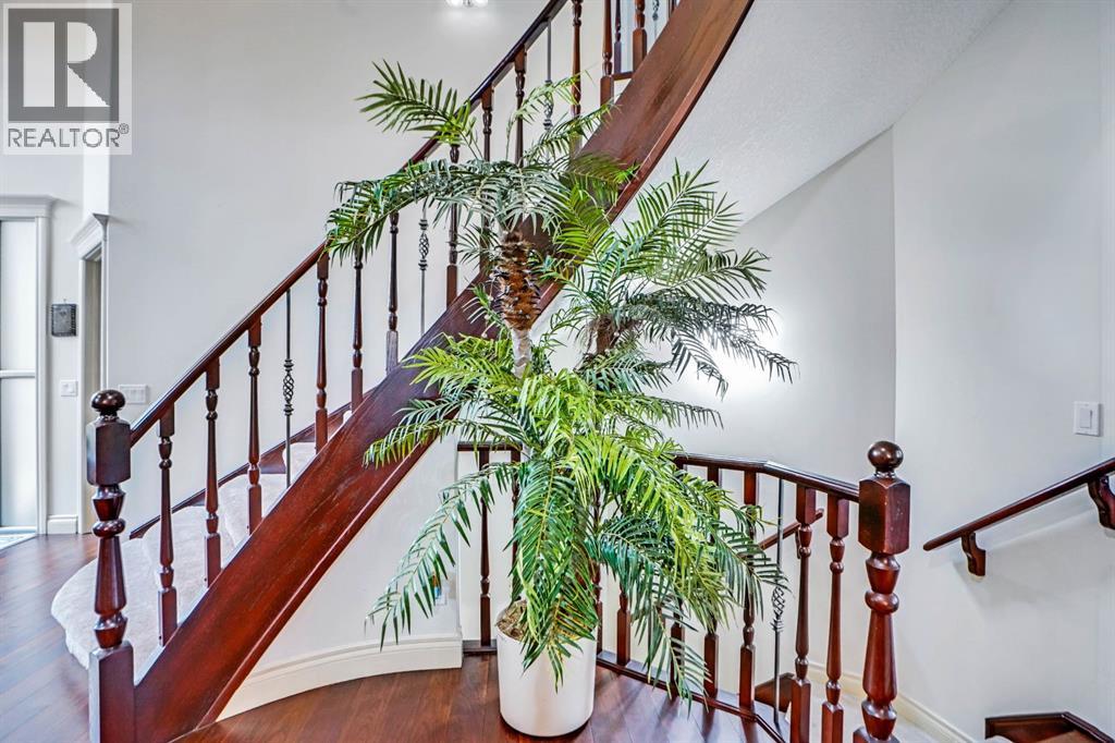 Immerse yourself in refined living in this exquisite custom-built two-story estate by California Homes. Nestled on a spacious pie-shaped lot at the peaceful end of a cul-de-sac, this remarkable home boasts numerous upgrades and multiple outdoor entertainment areas, perfect for relaxation and social gatherings. Upon entering, you’ll be greeted by a grand foyer with soaring 18-foot ceilings and detailed crown moldings, setting the stage for elegance. The gourmet chef’s kitchen, featuring a generous island and double ovens, gas range, seamlessly connects to the expansive family room, complete with custom-built-ins and a warm fireplace. Gleaming upgraded hardwood floors, a formal dining room, and a versatile office/computer room add to the home’s sophisticated charm. This luxury home is equipped with a home sprinkler system, air conditioning system, home water softener system, and automated remote-controlled blinds in the main floor. The oversized double garage and mudrooms combine practicality with style. The upper level boasts four spacious bedrooms, with a walk-in closet. The master suite features a spa-inspired ensuite with dual sinks, a 5-piece bathroom, heated floors, and more. Another 5-piece bathroom is available for the other rooms, and an upper-level laundry room with a sink and extensive cabinetry adds convenience. The fully finished basement is an entertainer’s delight, offering a recreation room, games area, additional fireplace, full wet bar, a fifth bedroom, and a full bath with heated floors. Modern touches such as built-in speakers,fireplaces, and an elegant curved staircase enhance the home’s appeal. Outside, enjoy a private backyard oasis complete with a large deck, patio, and outdoor gas barbecue, perfect for entertaining. The beautifully landscaped yard features mature trees, including organic apple trees. You can enjoy already created garden area to grow vegetables and fruits if you desire. This exceptional home offers a rare opportunity to own a s tylish and functional property in one of Calgary’s most desirable Southwest neighbourhoods. With its close proximity to Fish Creek Park, Golf , top-rated schools, transit, and shopping, it’s a perfect blend of style and functionality. Book your viewing today to experience the elegance and comfort of this remarkable residence! (id:63190)