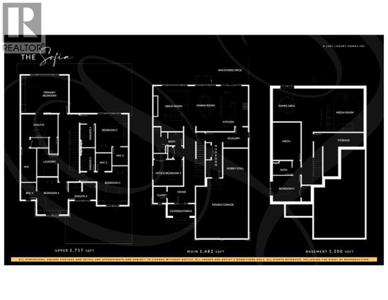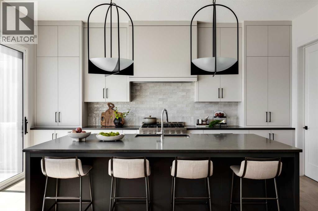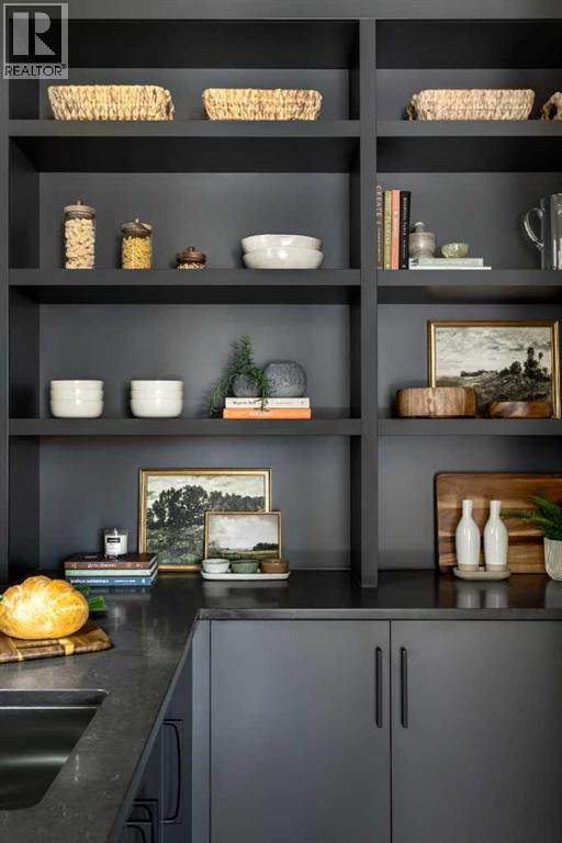 Welcome Home to Lupi Luxury Homes 8 Rockcliff Hill NW, this distinguished residence epitomizes the pinnacle of luxurious living. 4 oversized bedrooms each with their own ensuites and walk-in closets. This lovely home seamlessly integrates with its surroundings through a thoughtfully designed layout, boasting 6 bedrooms and 6 bathrooms. A standout feature is the 3-car garage with ceiling heights to accommodate a car lift. As you step inside, a wealth of high-end amenities unfolds, illuminated by natural light streaming through triple-pane Loe2 windows. The gourmet kitchen, with rich white cabinetry to the 10’ ceiling and darker oversized island, showcases a built-in stainless steel, double fridge / freezer and upgraded gas range, dishwasher, microwave, hood fan, bar fridge, creating a culinary haven for residents and guests. Elevating the living experience, the residence boasts large deck off the professionally landscaped oversized back yard. A captivating stone fireplace becomes a central focus, infusing the space with warmth and inviting ambiance. The master ensuite is a true retreat, featuring a curb less walk in shower, soaker tub and his and hers vanity sinks and a large walk-in closet. Technological sophistication with a security system includes, and various powered window coverings. The home is adorned with exposed aggregate concrete, a high-end double furnace system with two air conditioning units included, ensures year-round comfort. Elegance permeates every corner, from an exquisitebutler's pantry to wide plank hardwood flooring, custom-built lockers. Main floor bedroom or den indulges with bulkhead ceiling detail adding a touch of opulence, while having private access to the 3-piece main floor bathroom. The lower development reveals a 6th bedroom, 6th bathroom and a large rec room and media area. Plenty of storage in utility and storage rooms. An elegant open staircase at the foyer, adorned with oakl spindles and an oak rail, warmly welcomes residents an d guestsinto this exceptional residence. Don't miss the opportunity to make this dream home yours. Schedule a showing today and immerseyourself in the unparalleled experience of refined living at 8 Rockcliff Hill NW (id:63190)