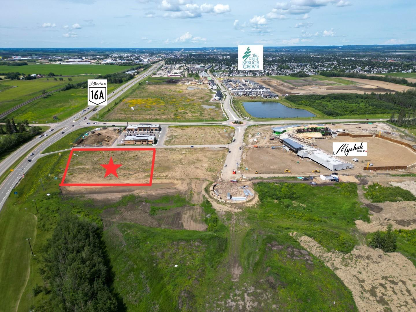 Discover an exciting commercial prospect in Spruce Groves brand new Ballpark District! Located at the crossroads of Highway 16A/Pioneer Road & only 7 minutes to West Edmonton. This 2 acre (+/-) lot has direct highway access & excellent visibility with a substantial traffic flow averaging 25,000 (+/-) vehicles daily. This enviable spot next to the future Myshak Metro Ballpark is set to see many great amenities added nearby with the surrounding residential construction. Zoned for Highway Commercial use with the added advantage of being a corner lot along a roadway allowing for convenient drive-through potential. (id:63190)