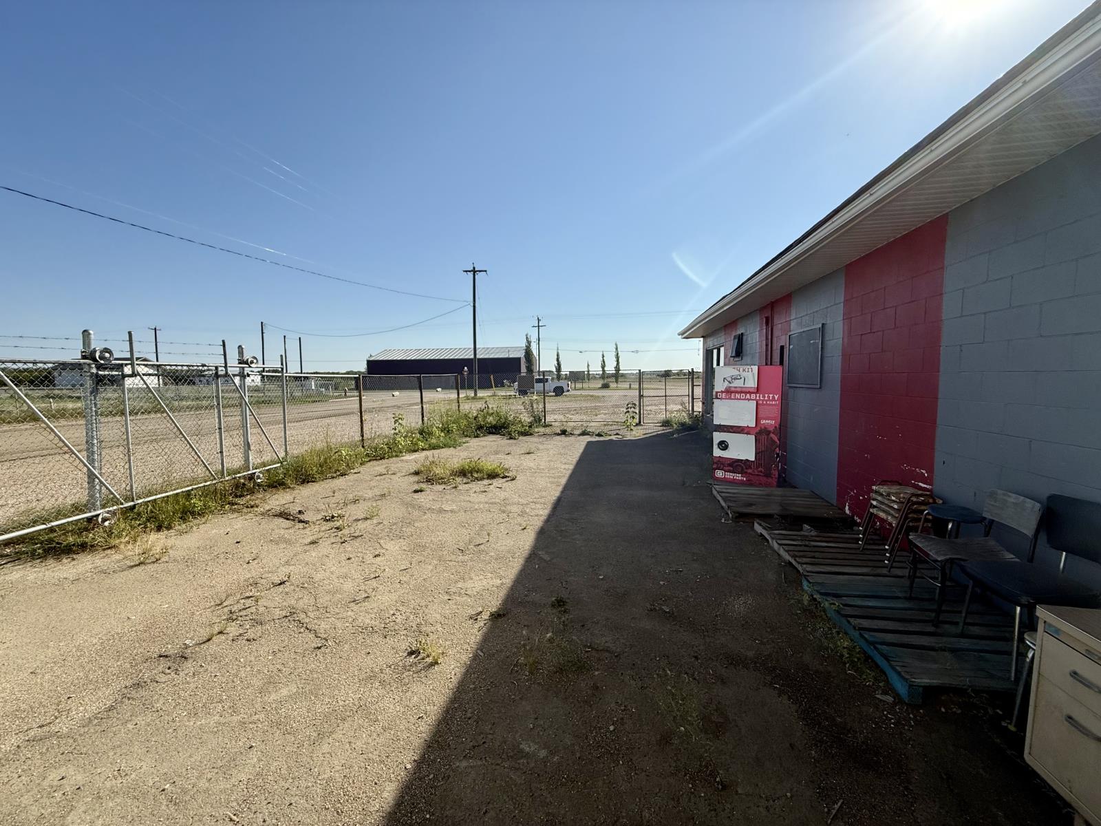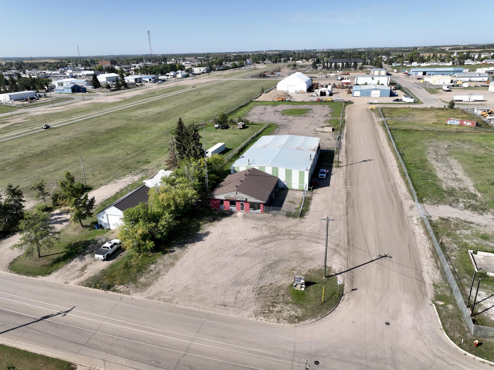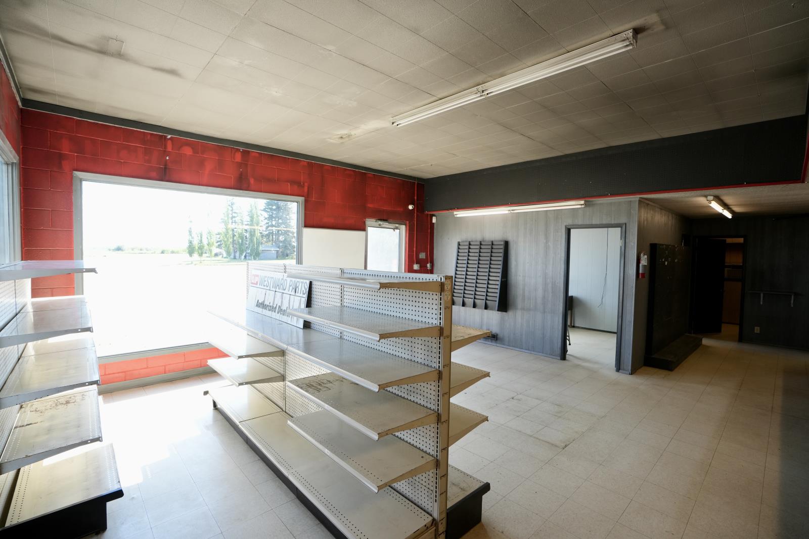 Commercial/Industrial Opportunity! This versatile property spans over 2 acres over two lots, offering ample room to expand & grow your business. The main storefront features a welcoming reception area, multiple offices, a convenient parts counter, storage, and two washrooms. Upstairs, a 600 sq. ft. mezzanine provides additional storage or a staff room. The highlight is the massive 82x70 shop with a 16 ft overhead door, durable concrete floors, and 220 amp power - perfect for heavy-duty operations. A covered outdoor work area expands functionality, while the fully fenced yard at the back is ideal for storage or display. Recent updates include a newer metal roof, and the property is fully serviced with town utilities. Additional lots are available (43688832) to further support future growth. Whether you’re in agriculture, mechanics, or looking to scale an existing operation, this property delivers space, functionality, and unlimited potential. The possibilities for your expanding business are endless! (id:63190)