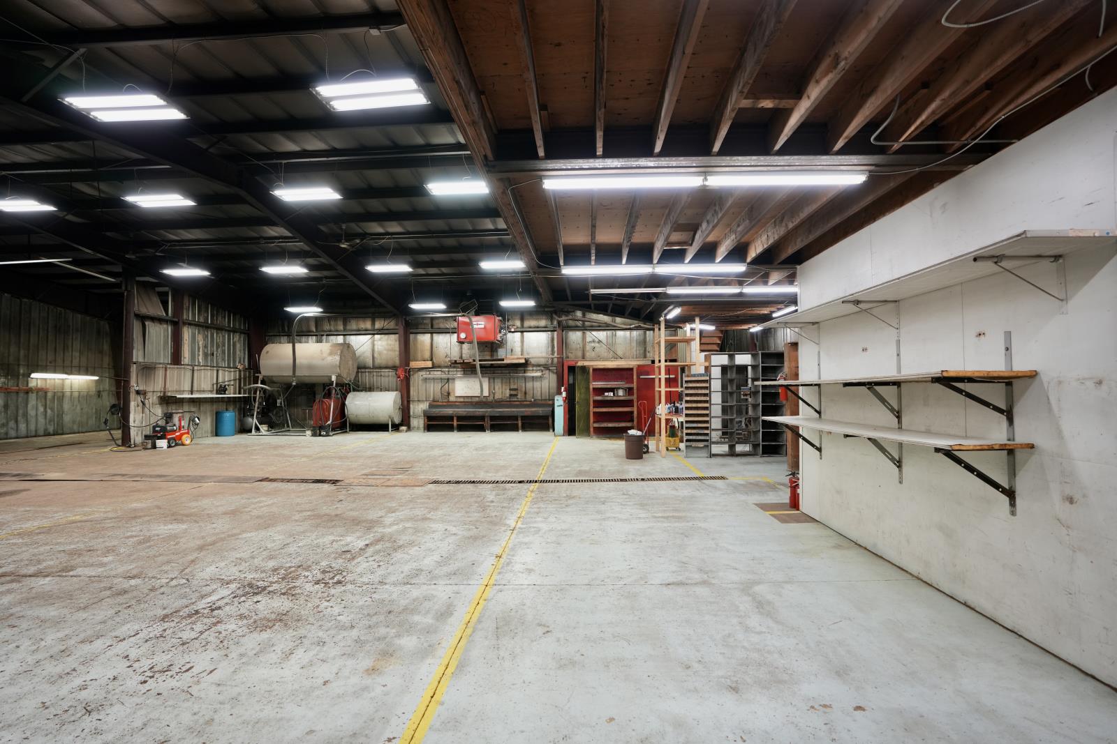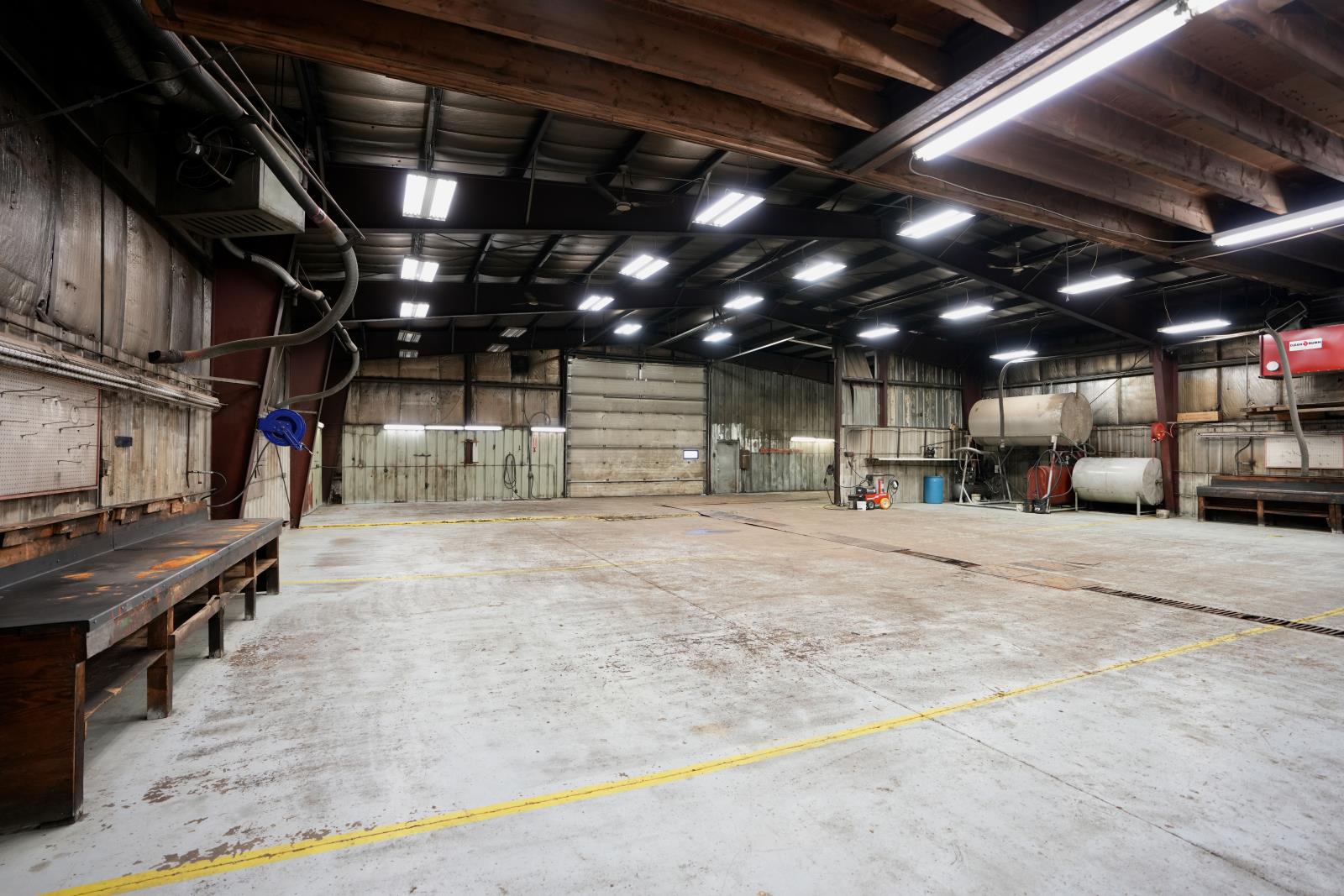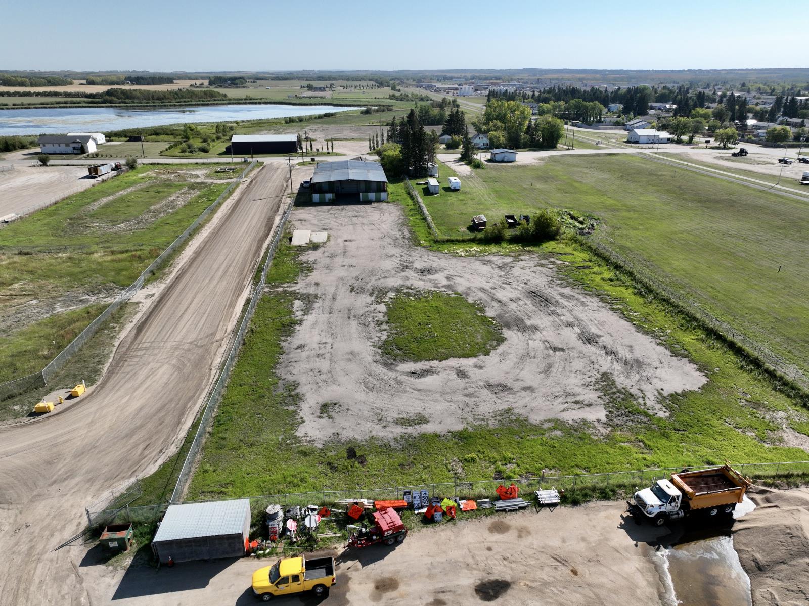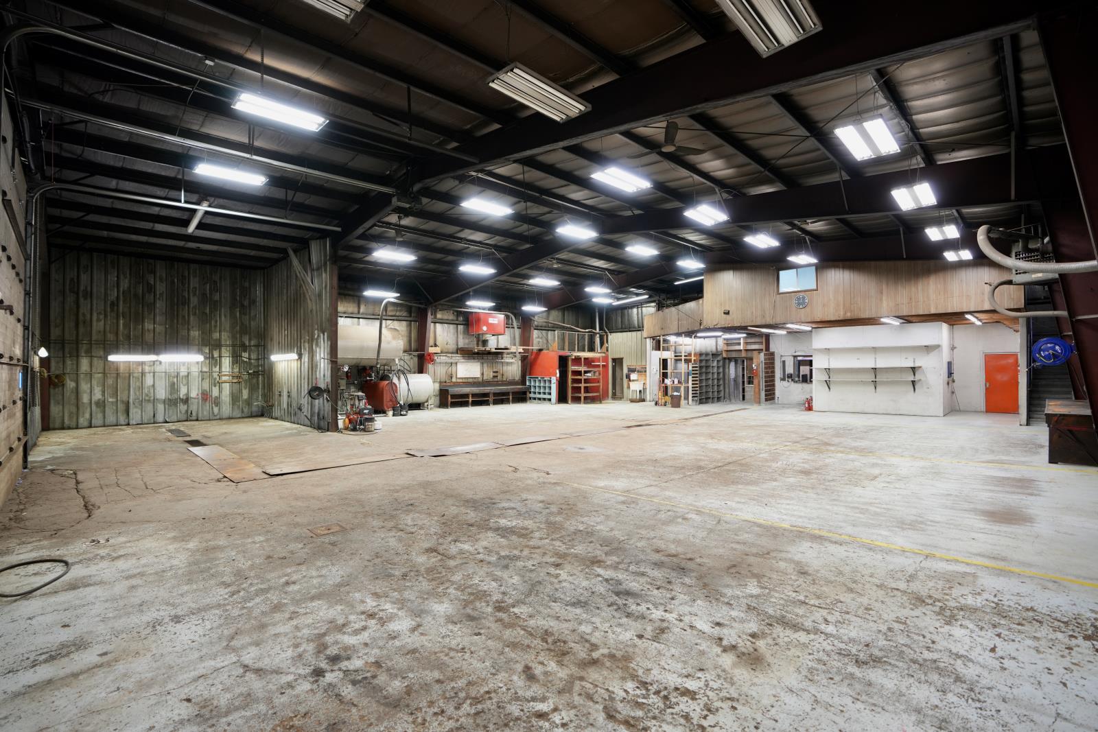 Commercial/Industrial Opportunity! This versatile property spans over 2 acres over two lots, offering ample room to expand & grow your business. The main storefront features a welcoming reception area, multiple offices, a convenient parts counter, storage, and two washrooms. Upstairs, a 600 sq. ft. mezzanine provides additional storage or a staff room. The highlight is the massive 82x70 shop with a 16 ft overhead door, durable concrete floors, and 220 amp power - perfect for heavy-duty operations. A covered outdoor work area expands functionality, while the fully fenced yard at the back is ideal for storage or display. Recent updates include a newer metal roof, and the property is fully serviced with town utilities. Additional lots are available (43688832) to further support future growth. Whether you’re in agriculture, mechanics, or looking to scale an existing operation, this property delivers space, functionality, and unlimited potential. The possibilities for your expanding business are endless! (id:63190)