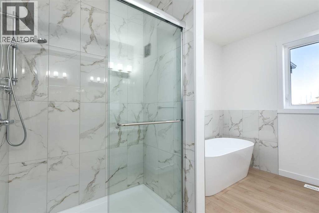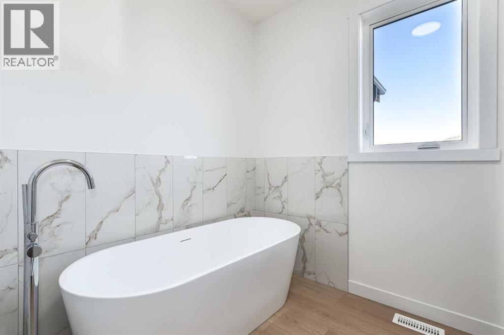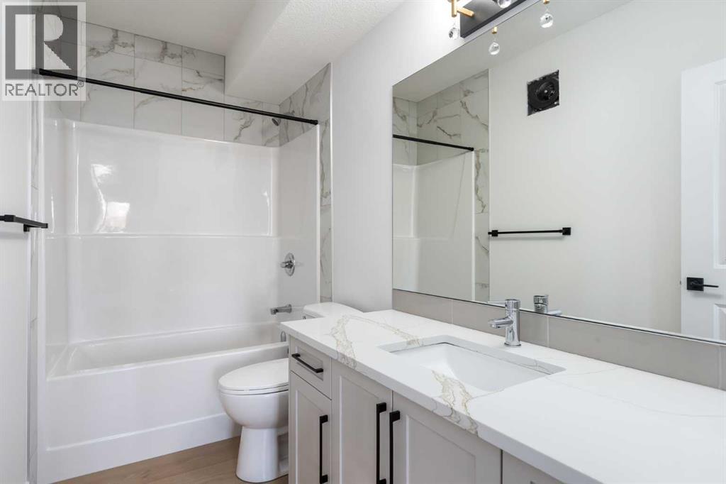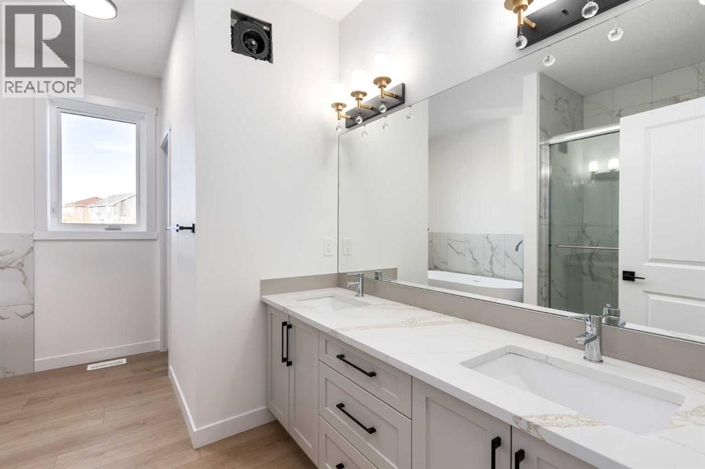 This is a rare family-sized bungalow with four big bedrooms and a triple attached garage. It is a fully finished 1507 sq ft walkout home in a great area overlooking a beautiful waterway and park, and it has premium finishes throughout. The main floor is a modern open plan with a large entry hall, 9’ ceilings, high quality flooring, and a covered 24’ x 10’ deck. The kitchen includes cabinets to the ceiling, quartz counters, under-mount sink, countertop lighting, select tiles, a large walk-in pantry, and all appliances are included. Also on the main floor is the spacious and open living/dining room, the primary bedroom, a laundry room, and a second bedroom or office. Deluxe appointments in the master suite include built in cabinetry in the walk-in closet, a big vanity with double sinks, and a soaker tub plus a 6' shower. The lower level has two more spacious bedrooms and a very big family room with a built-in wet bar. All rooms in this home have lots of natural light, and there are many extras including a 24’ x 10’ patio, two fireplaces, full concrete steps and a Hardie board exterior. Click the multimedia link for a virtual interactive 3D tour, plus floor plans and professional pictures. (id:63190)