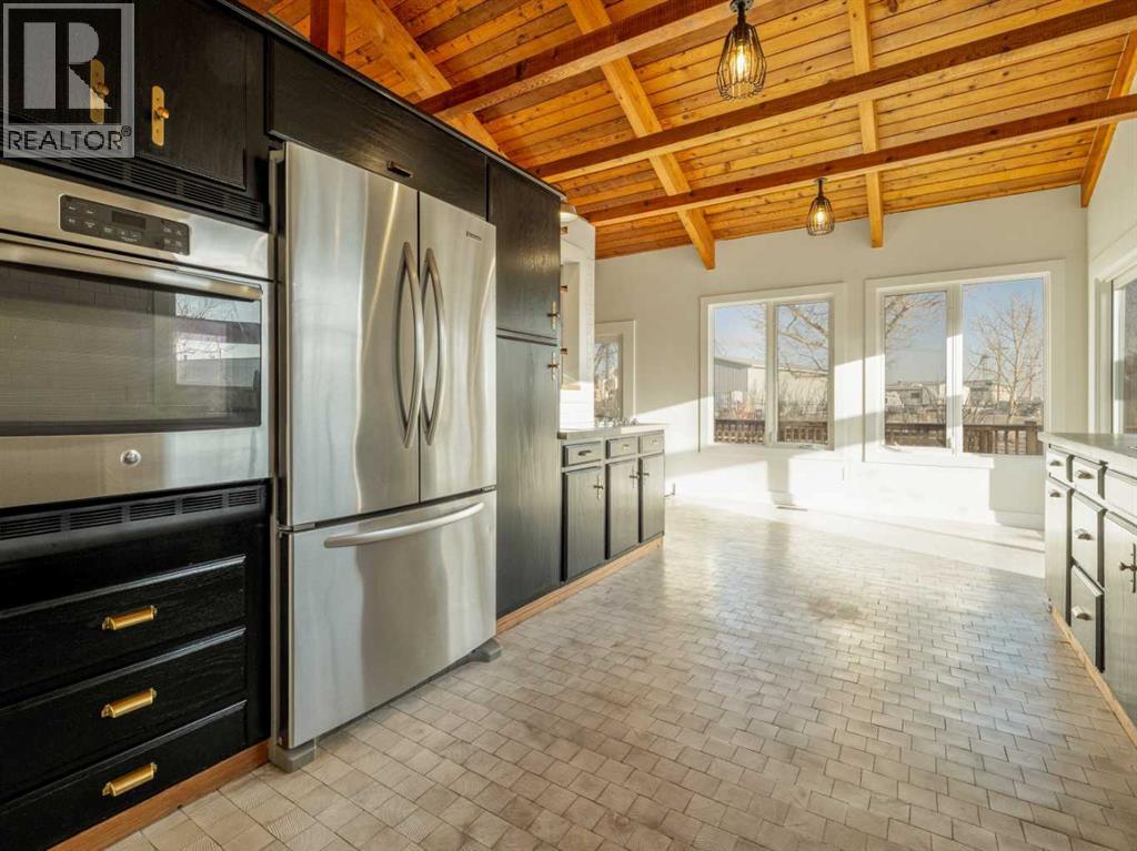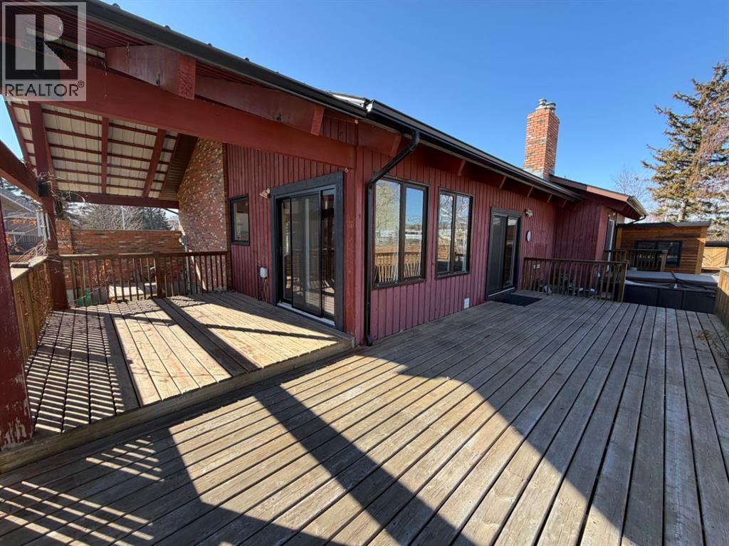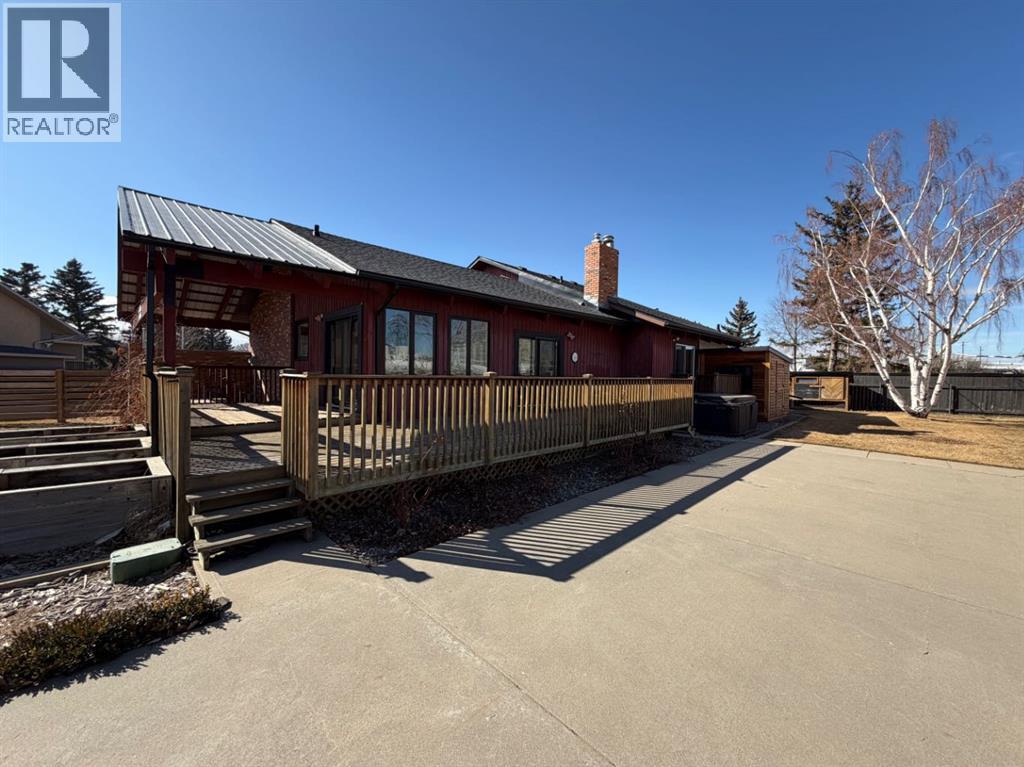 Large bungalow home on a cul-de-sac in Picture Butte with bonus room above garage and loft in primary bedroom. Home is being sold in "as-is, where-is" condition. Basement features a 2 bedroom legal suite and a 1 bedroom illegal suite. Home features vaulted ceilings with exposed beams. Nice floorplan with large living room, dining room, kitchen, breakfast nook, family room with gas fireplace(not currently working), mud room, 3 bedrooms, and 2 bathrooms on main. Primary bedroom also has laundry hookups, a 5 piece ensuite, and a loft with ladder for access. Large wrap around partially covered deck with access from breakfast nook and family room. Basement is developed with two suites, including a 2 bedroom legal suite featuring good size living room with wood fireplace, 3 piece bathroom with laundry, and one of the bedrooms features a walk-in closet. Second suite is a 1 bedroom illegal suite with a 3 piece bathroom, laundry room with some kitchenette features, & a sauna(not sure if working). Yard is fenced and landscaped with a separate dog run, paved basketball court area, and a good sized yard space. There is also a shed. Home is close to park and playground. Double garage for your vehicles and a large amount of parking on the driveway. (id:63190)