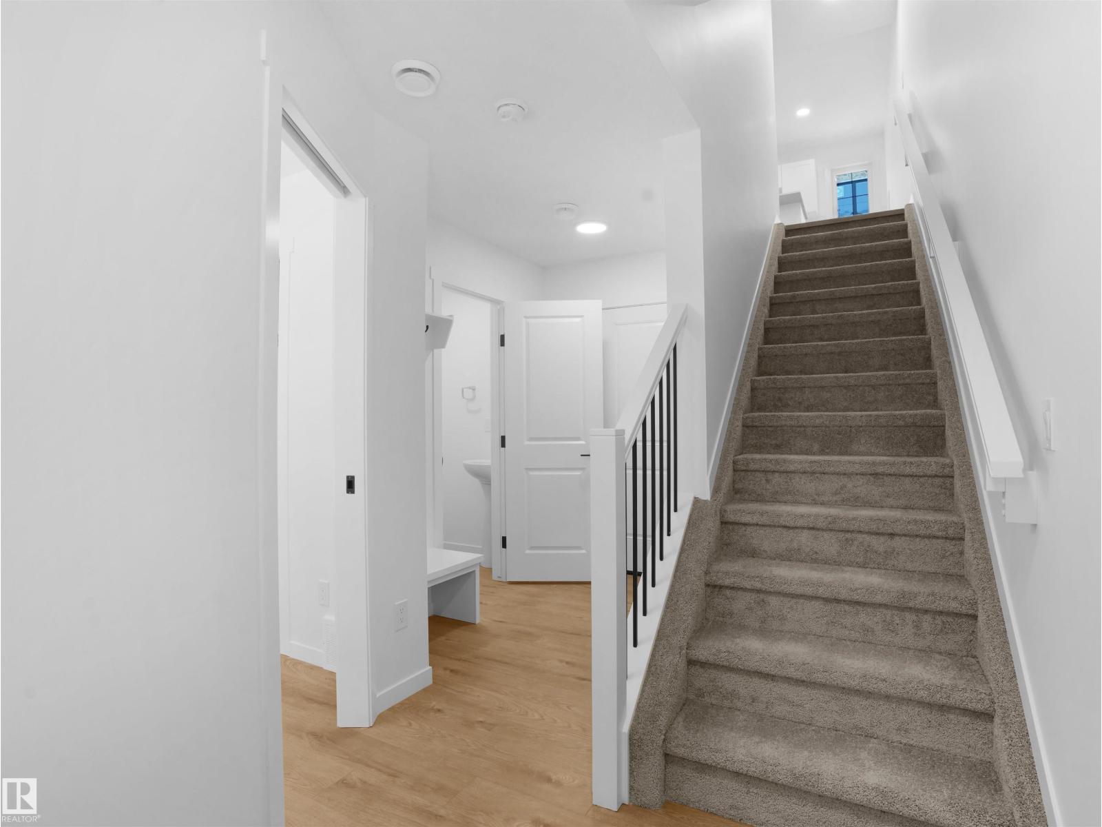 Welcome to this brand new townhouse unit the “Gabriel” Built by StreetSide Developments and is located in one of Edmonton's newest premier communities of Blatchford. With 1098 square Feet, it comes with front yard landscaping and a single over sized attached garage, this opportunity is perfect for a young family or young couple. Your main floor is complete with upgrade luxury Vinyl Plank flooring throughout the great room and the kitchen. The main entrance/ main floor has a good sized Den that can be also used as a bedroom, it also had a 2 piece bathroom. Highlighted in your new kitchen are upgraded cabinets, upgraded counter tops and a tile back splash. The upper level has 2 bedrooms and 2 full bathrooms. Central living. Sustainable living. Urban living. Community living this is what you will find in Blatchford! This home is move in ready! (id:63190)