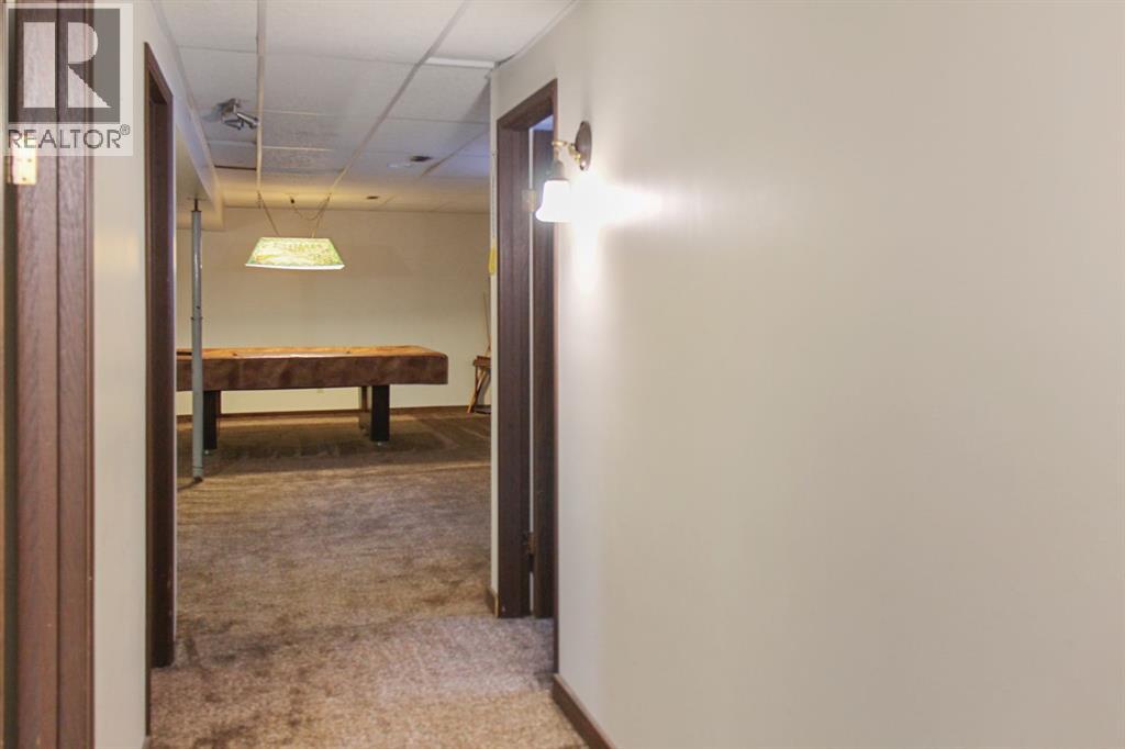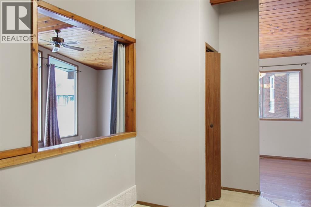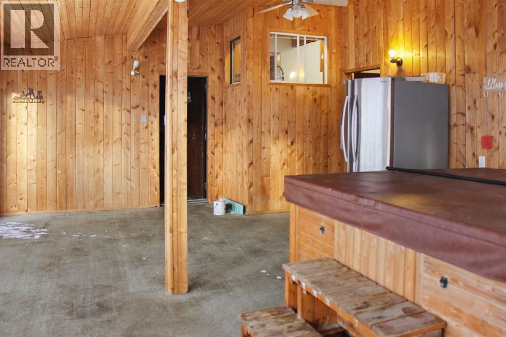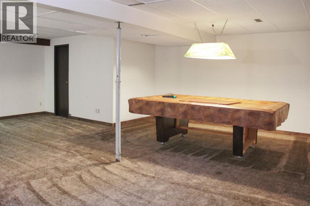 This well-maintained and character-filled home offers 4+1 potential bedrooms and 2.5 bathrooms, with inviting spaces designed for both everyday living and entertaining. Step into the vaulted living room, where large windows facing north flood the space with ample natural light, while exposed wood, striking wooden beams, and a crackling wood-burning fireplace create a warm and cozy atmosphere—perfect for Alberta winters. The living room flows seamlessly into the dining area, conveniently located just off the kitchen. The spacious kitchen features ample cabinetry, exposed wood beams, and a cut-out window to the living room—making serving and hosting effortless. From here, enjoy views of the fully enclosed 3-season sunroom, a versatile space ideal for relaxing, housing a hot tub, or staying sheltered while bringing groceries in from the garage. A gas fireplace keeps this space comfortable and toasty during cooler months. The main floor offers three generously sized bedrooms, including a primary bedroom with its own 2-piece ensuite, along with a 4-piece bathroom featuring a soaker tub. Downstairs, the large recreation room is perfect for gatherings and includes a pool table and custom pool table light, both staying with the property. The basement also features a 3-piece bathroom, laundry room, furnace room, and a cold cellar—ideal for storing canned goods or preserves. Outside, enjoy a good-sized, fully fenced backyard, perfect for entertaining and keeping pets safe. An attached single-car garage provides direct access into the sunroom for added convenience year-round. Quick possession available, making this a fantastic opportunity to move in and enjoy everything this warm and welcoming Forestburg home has to offer. (id:63190)