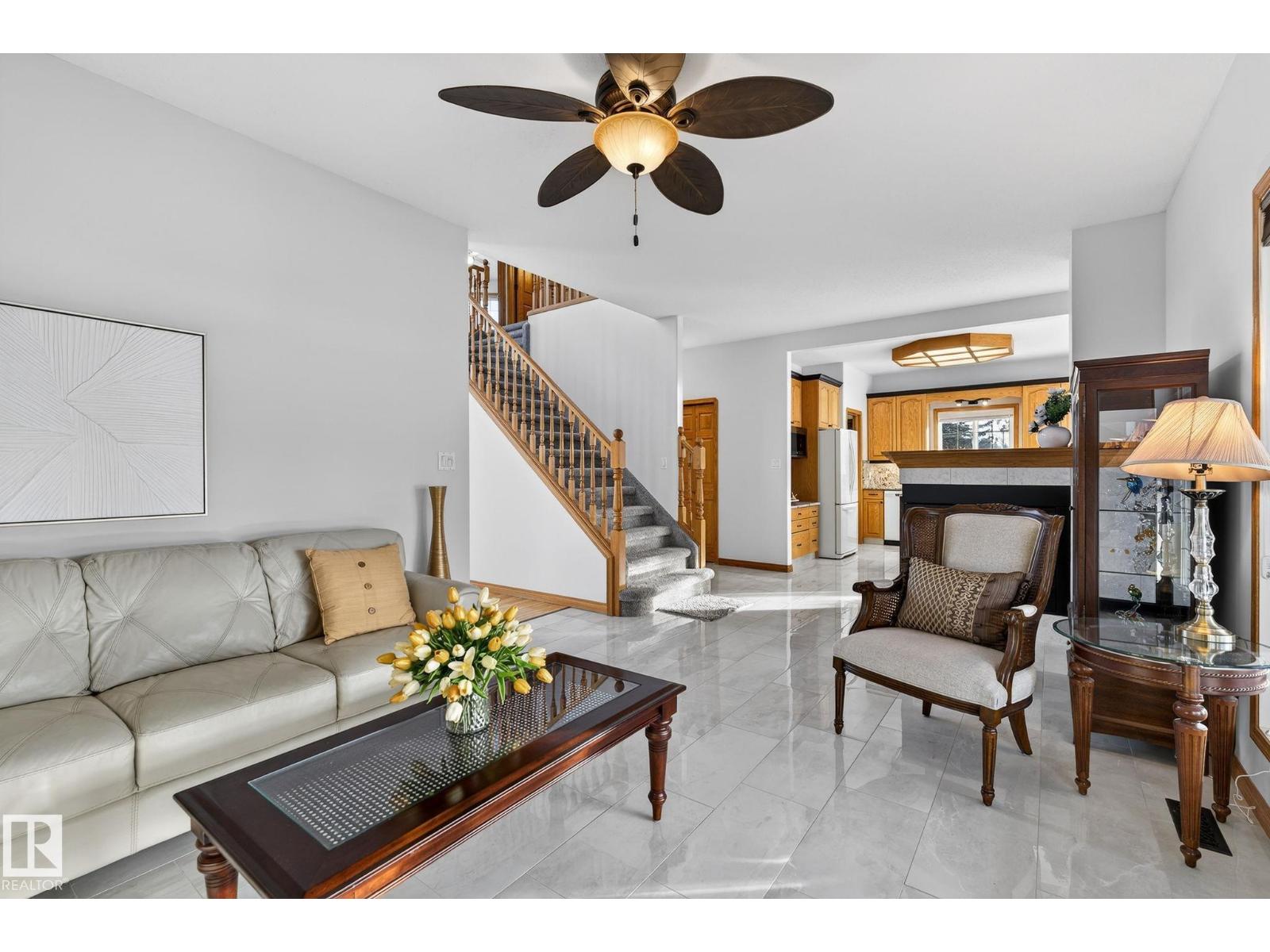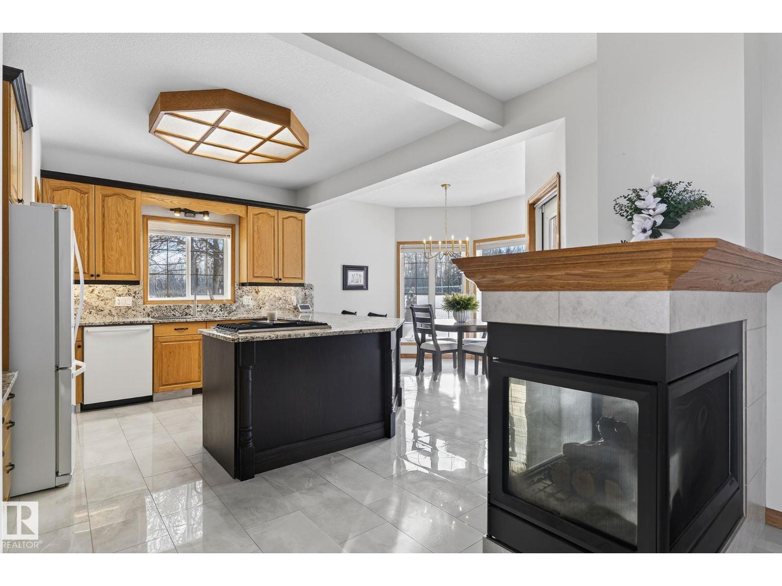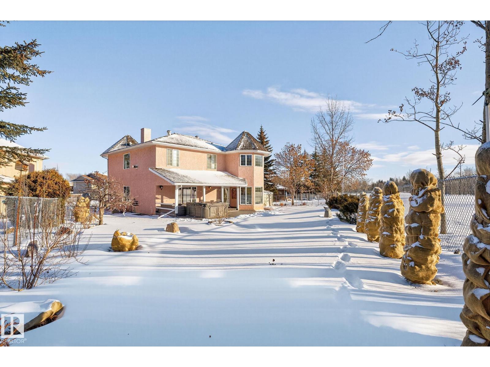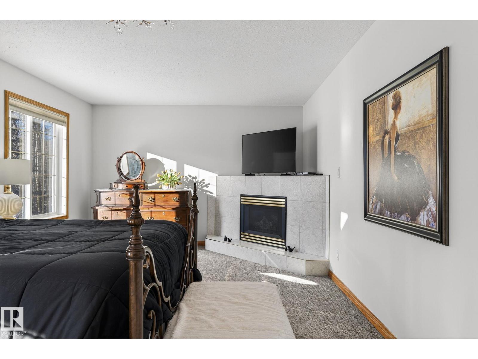 This impressive 2,366 sq. ft. fully finished home offers space, comfort, and premium features throughout. Main floor attributes include soaring 2 storey ceilings, 3 sided gas fireplace & laundry room. Upstairs there are 3 generously sized bedrooms, including a massive primary retreat complete with a gas fireplace and large four-piece ensuite (in floor heat). The fully developed basement is enhanced with in-floor heating for year-round comfort. Recent updates include new gas stove, fresh paint, brand-new carpet and ceramic tile flooring, adding a fresh, modern feel. Central air conditioning and two furnaces ensure efficient climate control on every level. Situated on nearly a quarter-acre lot backing directly onto a golf course, the beautifully landscaped backyard is a private oasis. The heated triple-car garage provides ample room for vehicles and storage. Enjoy outdoor living on the new maintenance-free deck with hot tub included—perfect for relaxing or entertaining while taking in the serene views. (id:63190)
