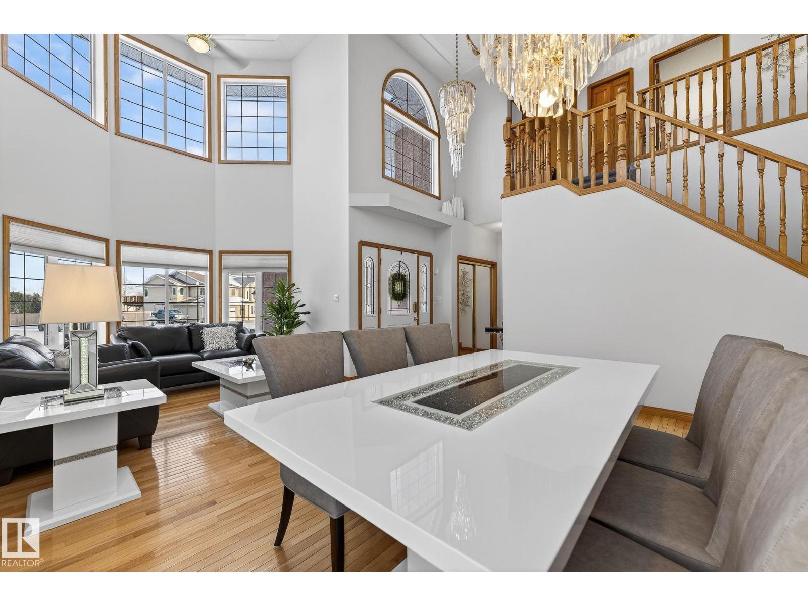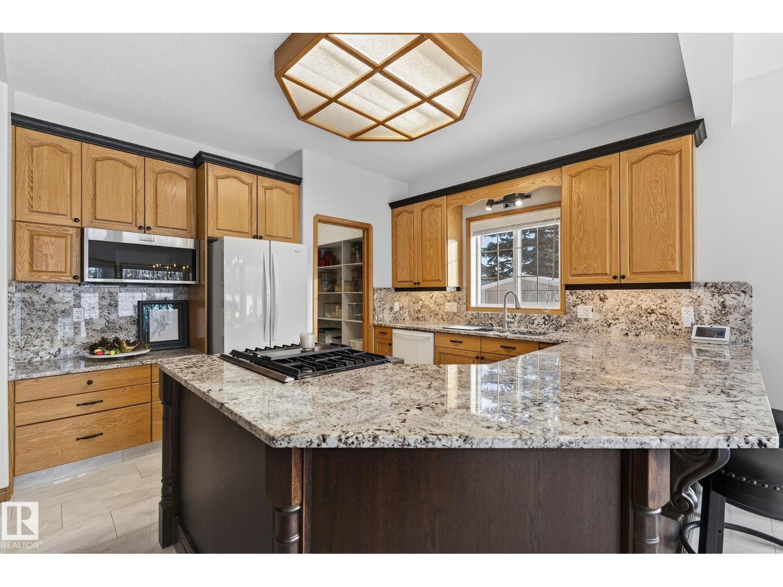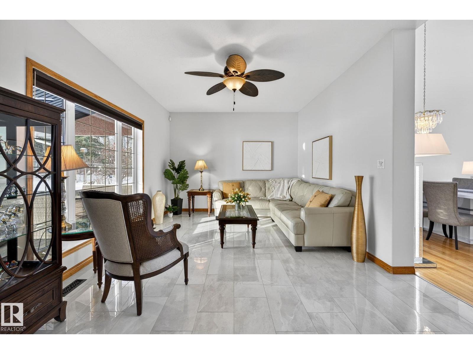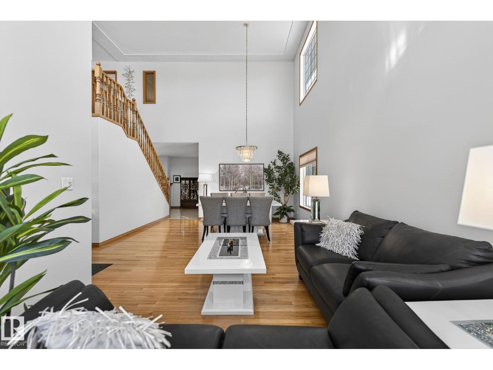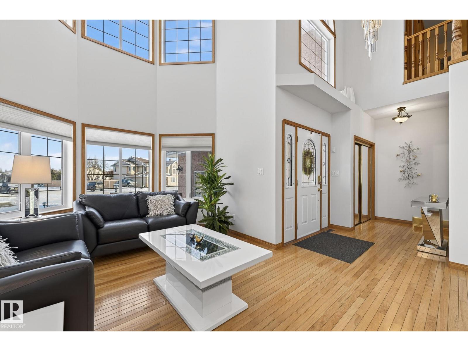 This impressive 2,366 sq. ft. fully finished home offers space, comfort, and premium features throughout. Main floor attributes include soaring 2 storey ceilings, 3 sided gas fireplace & laundry room. Upstairs there are 3 generously sized bedrooms, including a massive primary retreat complete with a gas fireplace and large four-piece ensuite (in floor heat). The fully developed basement is enhanced with in-floor heating for year-round comfort. Recent updates include new gas stove, fresh paint, brand-new carpet and ceramic tile flooring, adding a fresh, modern feel. Central air conditioning and two furnaces ensure efficient climate control on every level. Situated on nearly a quarter-acre lot backing directly onto a golf course, the beautifully landscaped backyard is a private oasis. The heated triple-car garage provides ample room for vehicles and storage. Enjoy outdoor living on the new maintenance-free deck with hot tub included—perfect for relaxing or entertaining while taking in the serene views. (id:63190)