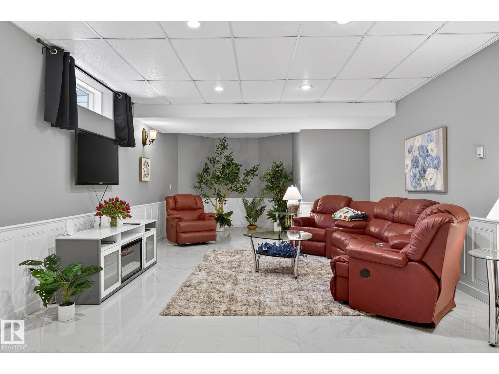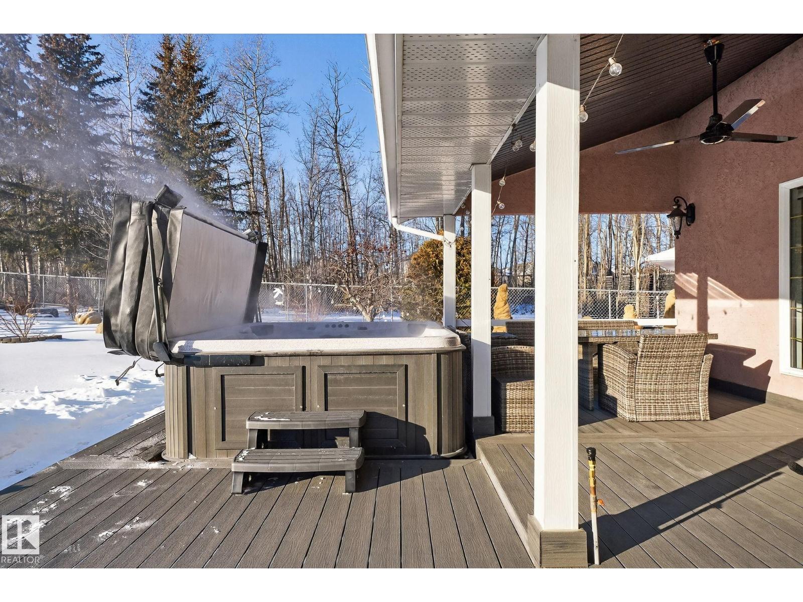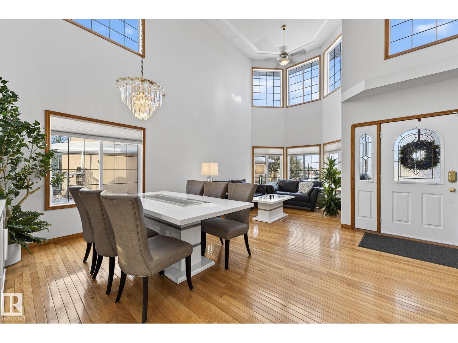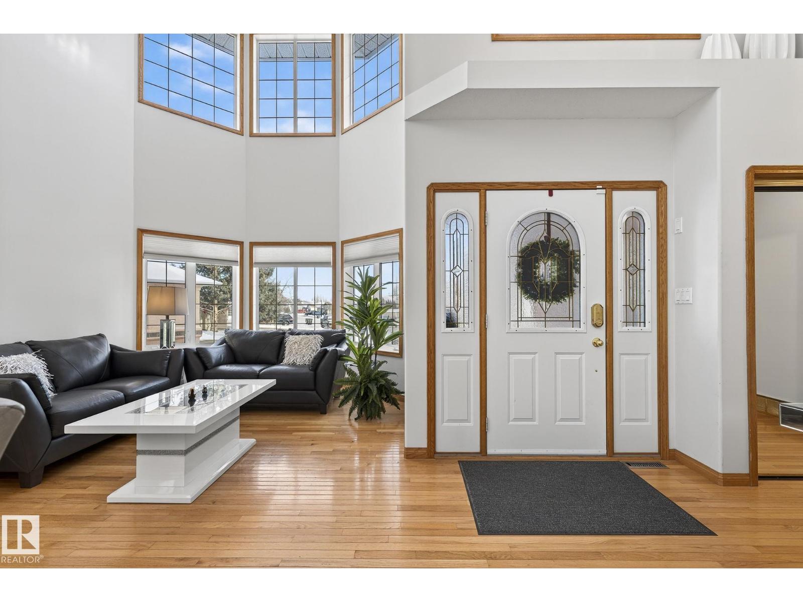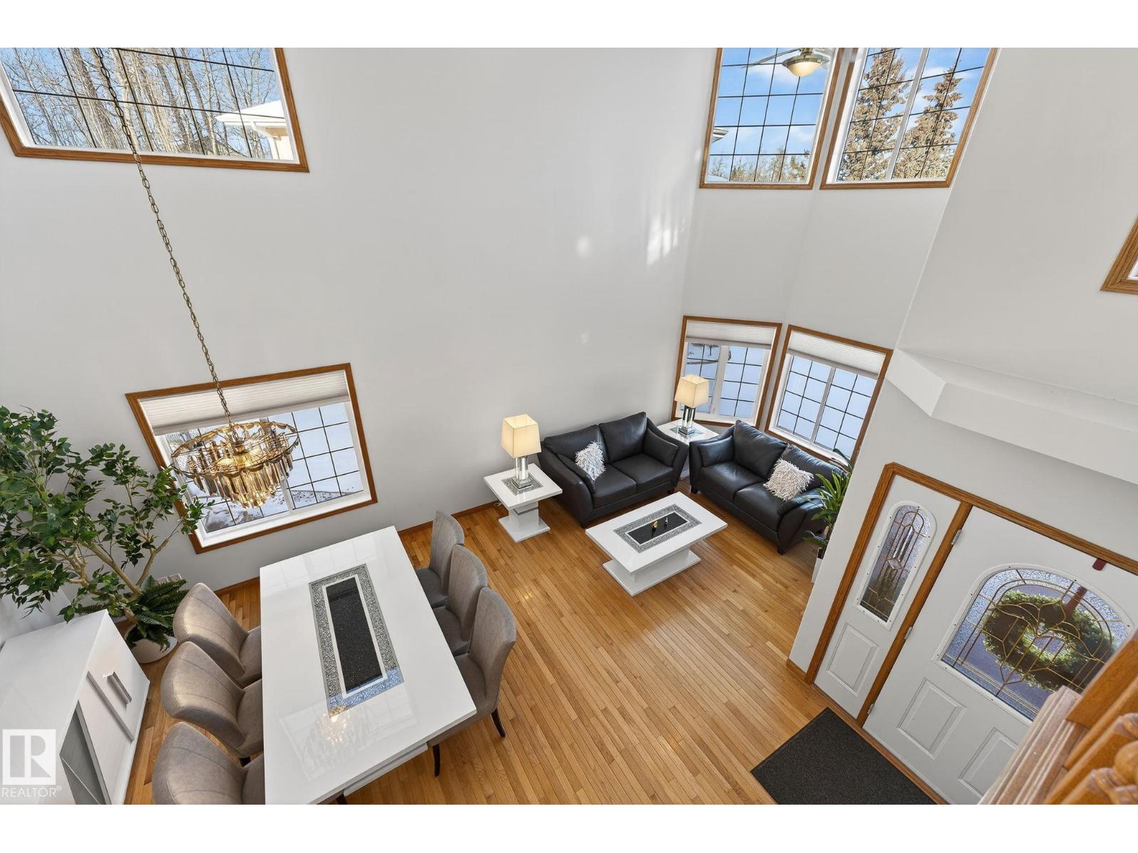 This impressive 2,366 sq. ft. fully finished home offers space, comfort, and premium features throughout. Main floor attributes include soaring 2 storey ceilings, 3 sided gas fireplace & laundry room. Upstairs there are 3 generously sized bedrooms, including a massive primary retreat complete with a gas fireplace and large four-piece ensuite (in floor heat). The fully developed basement is enhanced with in-floor heating for year-round comfort. Recent updates include new gas stove, fresh paint, brand-new carpet and ceramic tile flooring, adding a fresh, modern feel. Central air conditioning and two furnaces ensure efficient climate control on every level. Situated on nearly a quarter-acre lot backing directly onto a golf course, the beautifully landscaped backyard is a private oasis. The heated triple-car garage provides ample room for vehicles and storage. Enjoy outdoor living on the new maintenance-free deck with hot tub included—perfect for relaxing or entertaining while taking in the serene views. (id:63190)