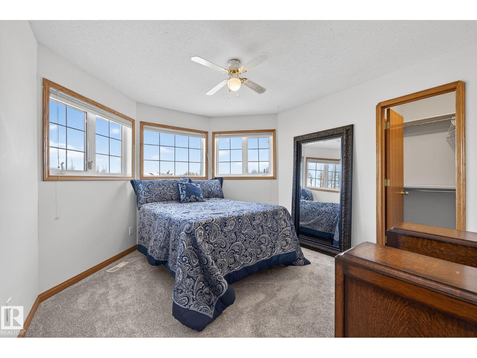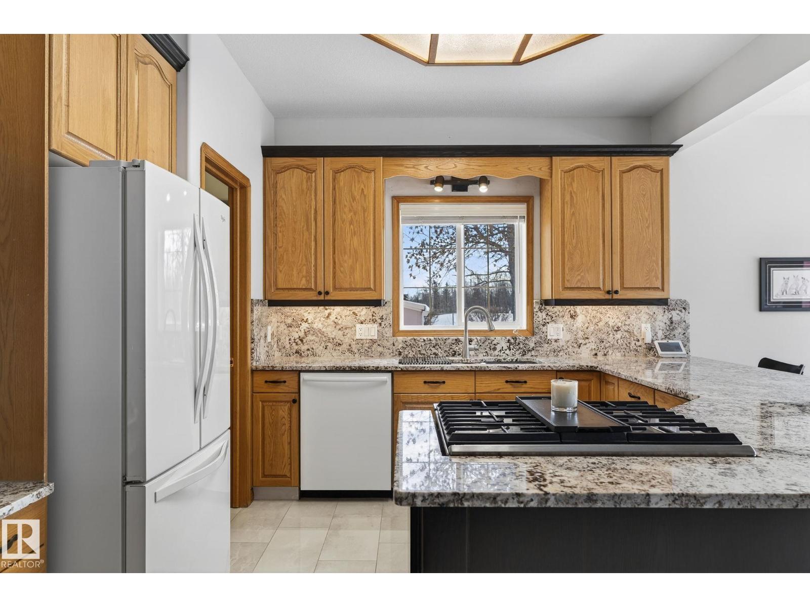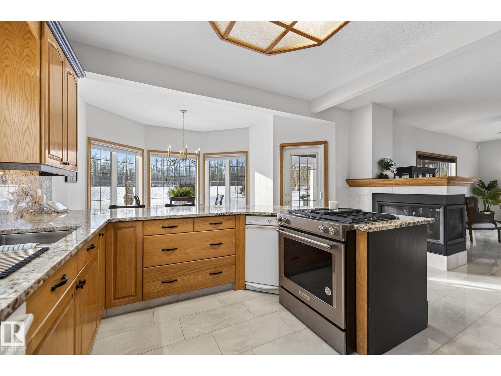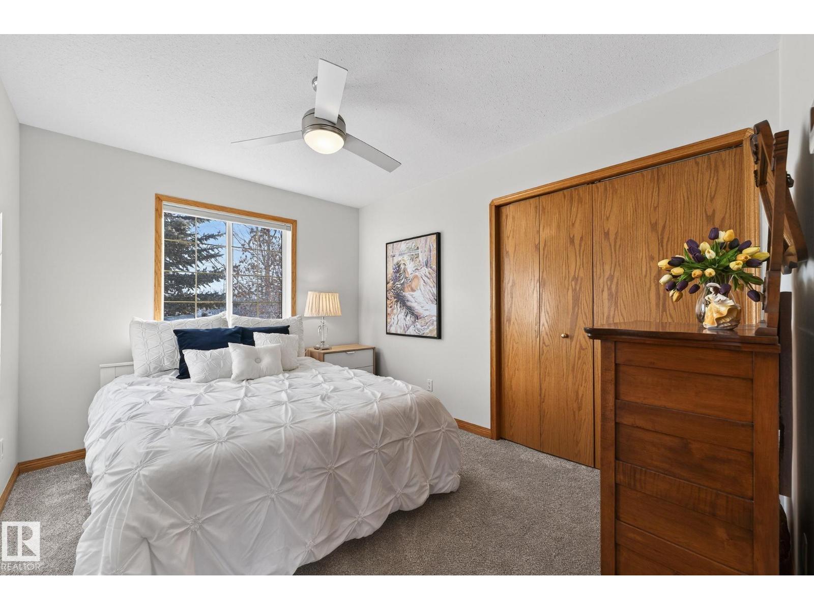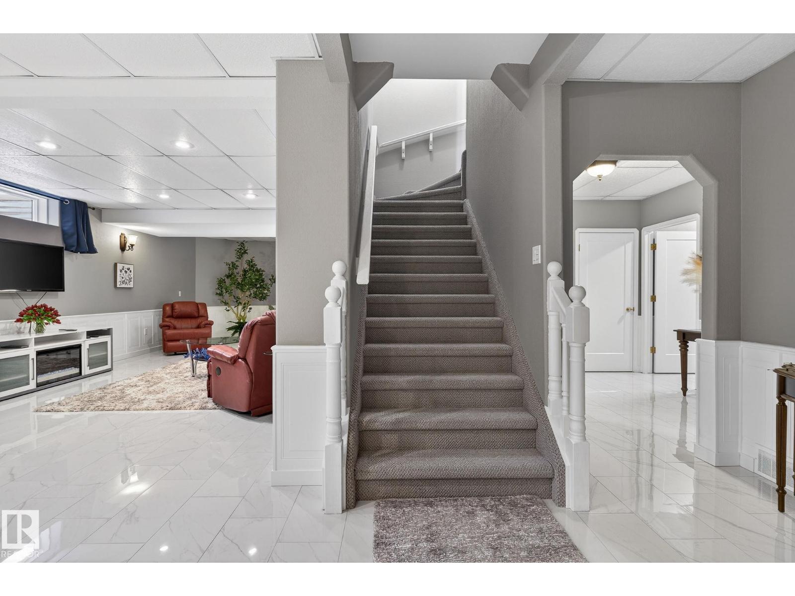 This impressive 2,366 sq. ft. fully finished home offers space, comfort, and premium features throughout. Main floor attributes include soaring 2 storey ceilings, 3 sided gas fireplace & laundry room. Upstairs there are 3 generously sized bedrooms, including a massive primary retreat complete with a gas fireplace and large four-piece ensuite (in floor heat). The fully developed basement is enhanced with in-floor heating for year-round comfort. Recent updates include new gas stove, fresh paint, brand-new carpet and ceramic tile flooring, adding a fresh, modern feel. Central air conditioning and two furnaces ensure efficient climate control on every level. Situated on nearly a quarter-acre lot backing directly onto a golf course, the beautifully landscaped backyard is a private oasis. The heated triple-car garage provides ample room for vehicles and storage. Enjoy outdoor living on the new maintenance-free deck with hot tub included—perfect for relaxing or entertaining while taking in the serene views. (id:63190)