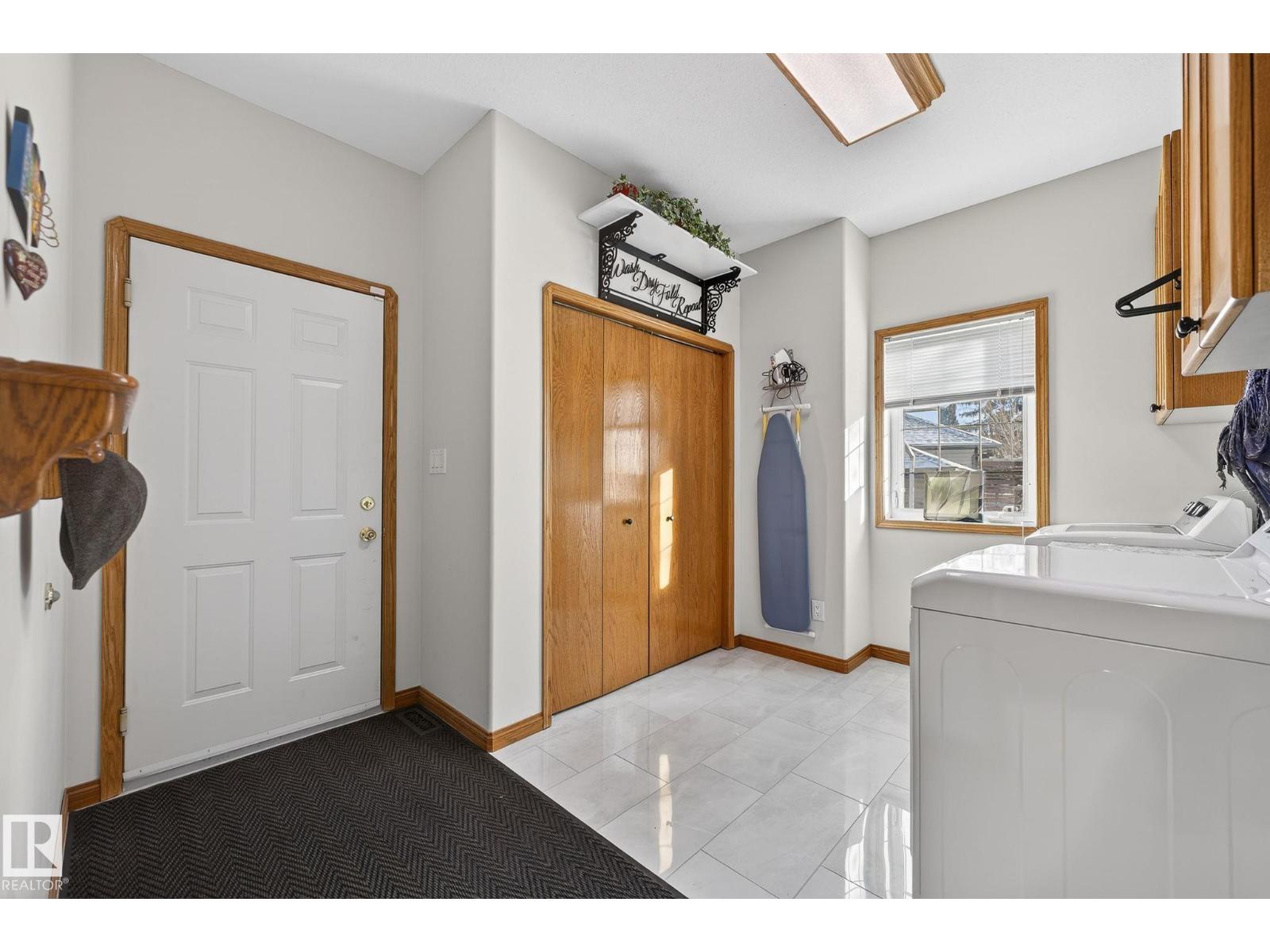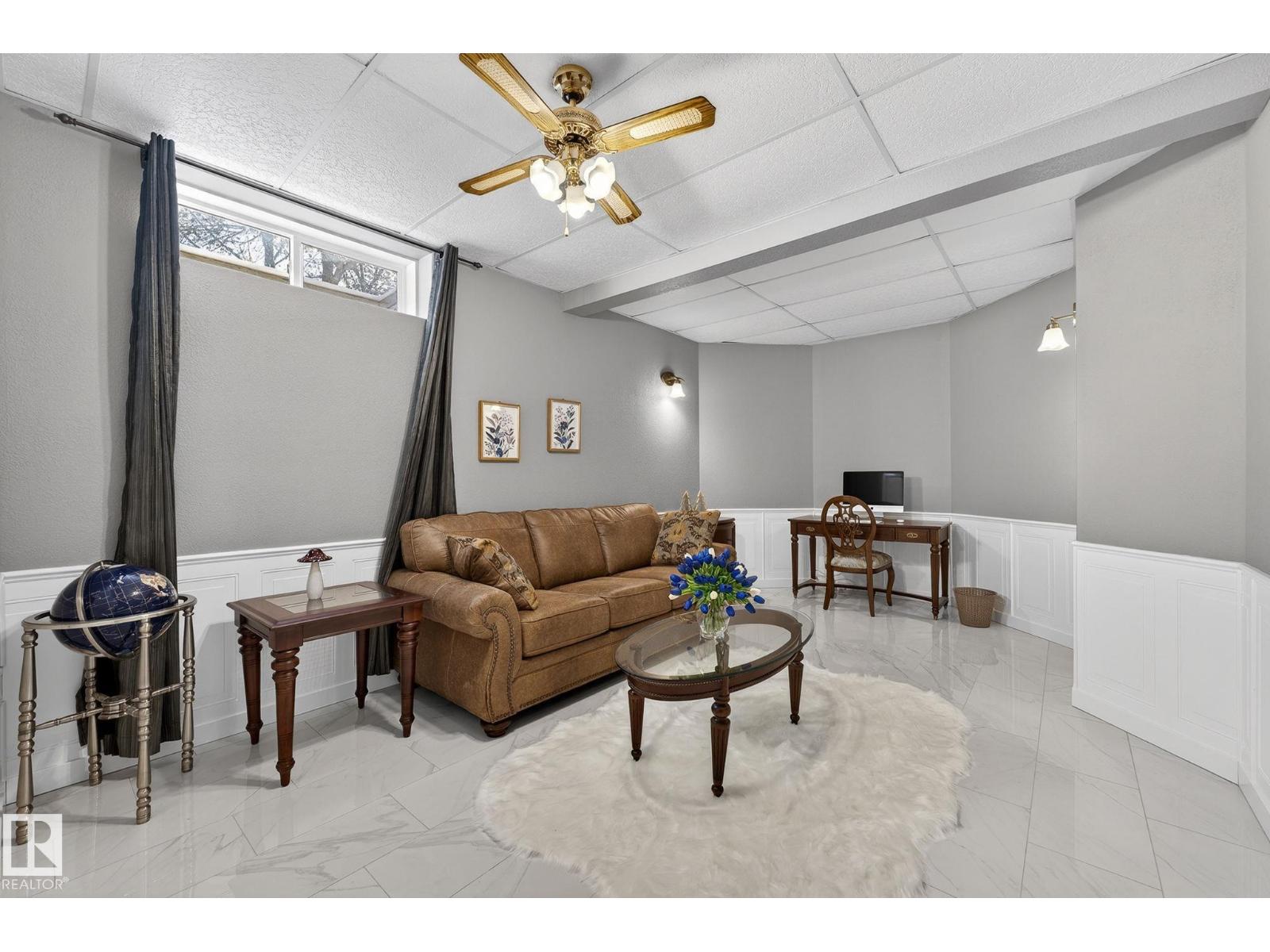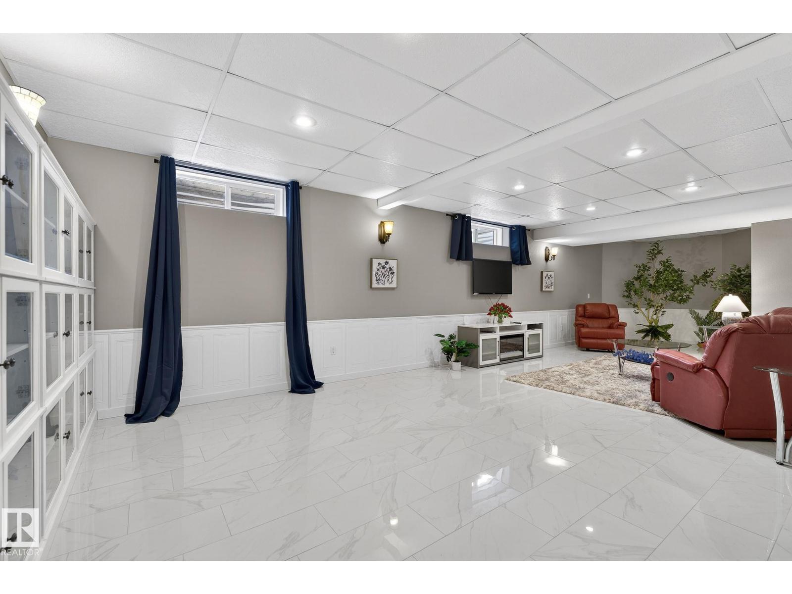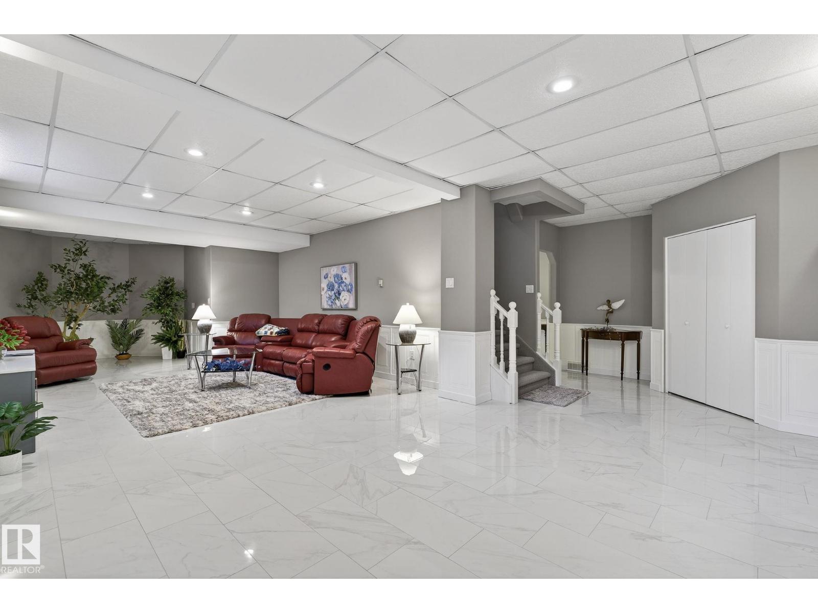 This impressive 2,366 sq. ft. fully finished home offers space, comfort, and premium features throughout. Main floor attributes include soaring 2 storey ceilings, 3 sided gas fireplace & laundry room. Upstairs there are 3 generously sized bedrooms, including a massive primary retreat complete with a gas fireplace and large four-piece ensuite (in floor heat). The fully developed basement is enhanced with in-floor heating for year-round comfort. Recent updates include new gas stove, fresh paint, brand-new carpet and ceramic tile flooring, adding a fresh, modern feel. Central air conditioning and two furnaces ensure efficient climate control on every level. Situated on nearly a quarter-acre lot backing directly onto a golf course, the beautifully landscaped backyard is a private oasis. The heated triple-car garage provides ample room for vehicles and storage. Enjoy outdoor living on the new maintenance-free deck with hot tub included—perfect for relaxing or entertaining while taking in the serene views. (id:63190)