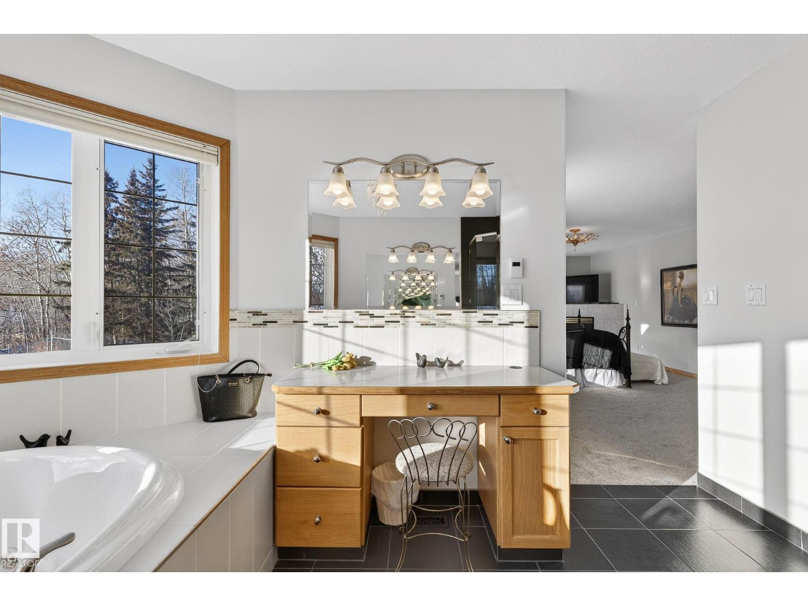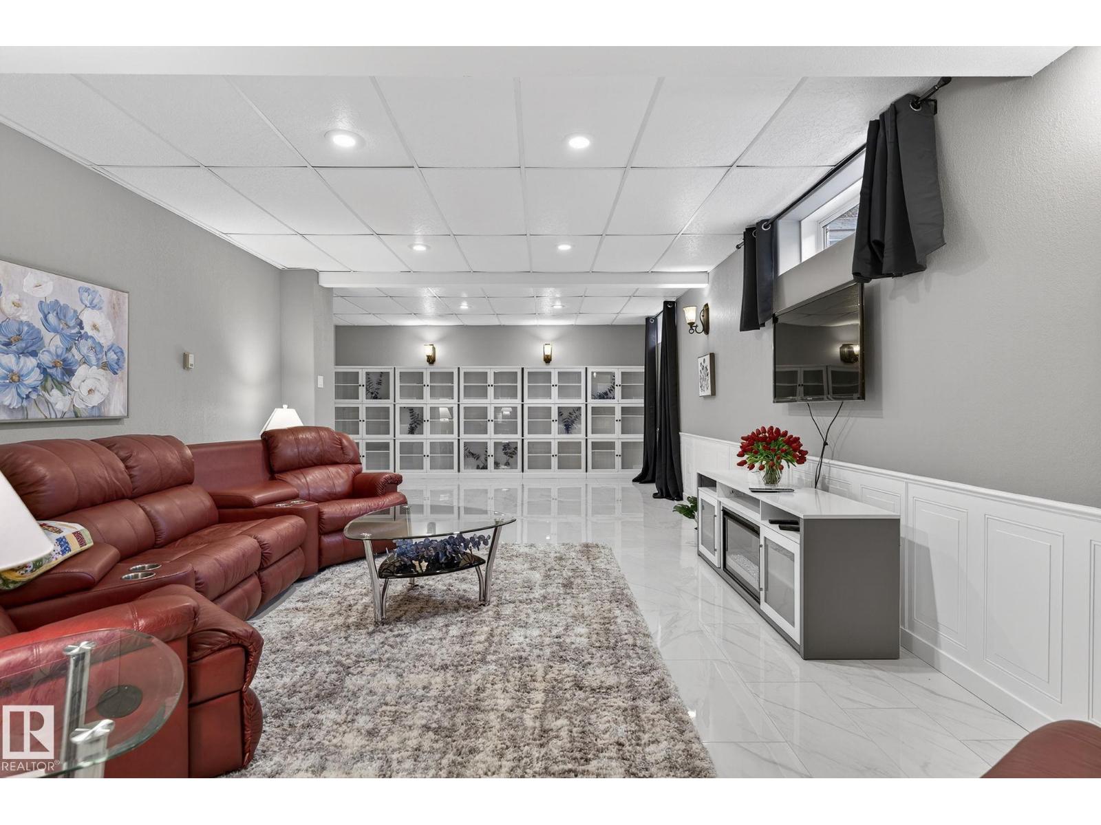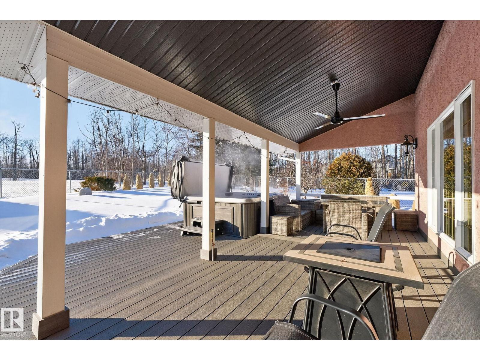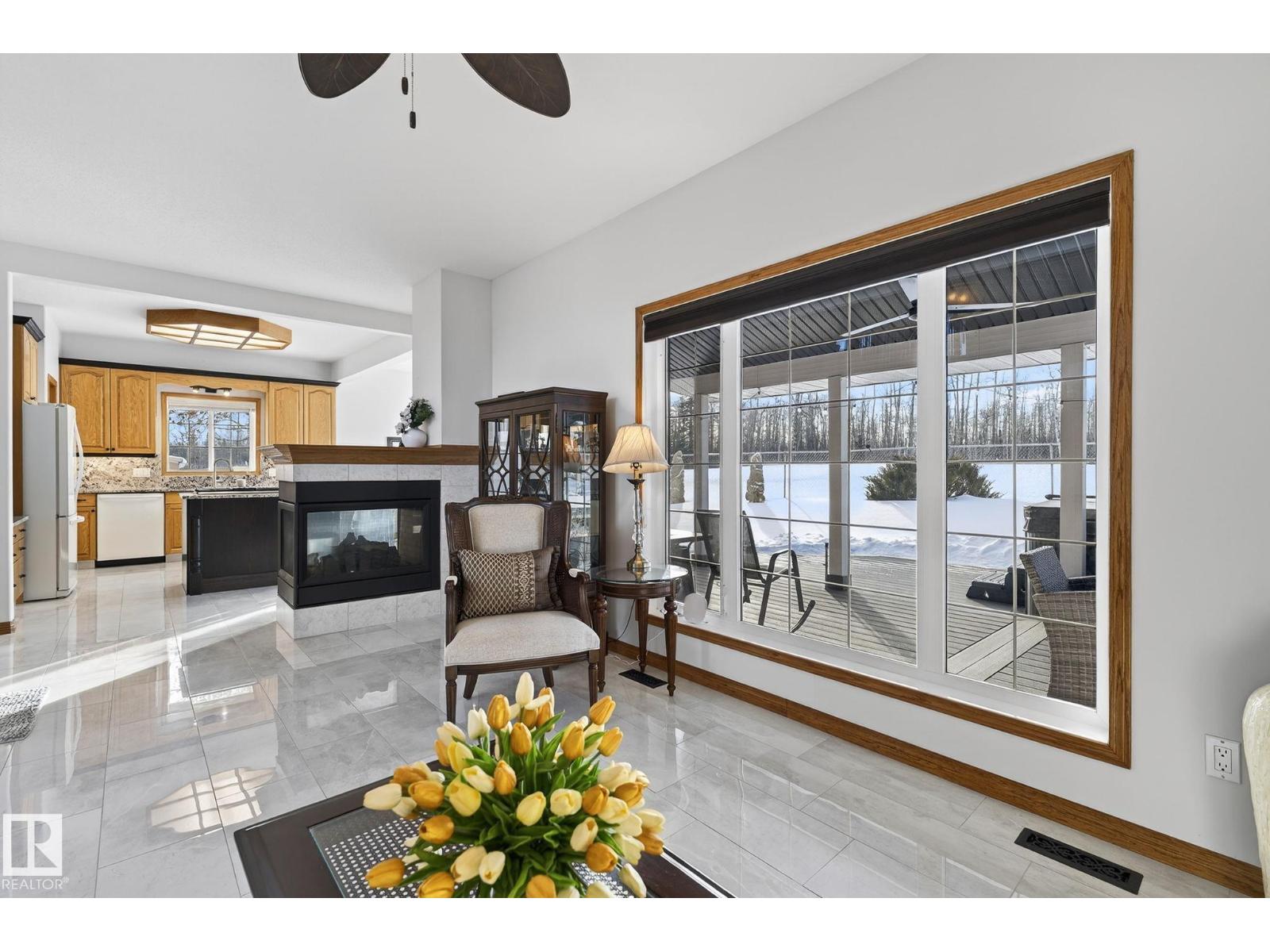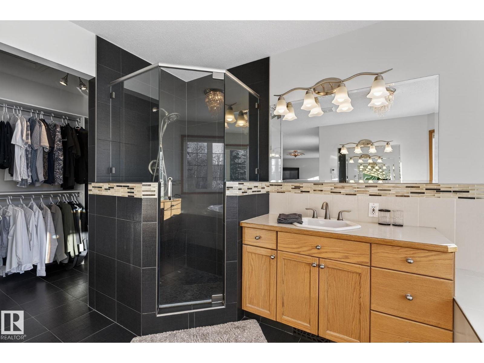 This impressive 2,366 sq. ft. fully finished home offers space, comfort, and premium features throughout. Main floor attributes include soaring 2 storey ceilings, 3 sided gas fireplace & laundry room. Upstairs there are 3 generously sized bedrooms, including a massive primary retreat complete with a gas fireplace and large four-piece ensuite (in floor heat). The fully developed basement is enhanced with in-floor heating for year-round comfort. Recent updates include new gas stove, fresh paint, brand-new carpet and ceramic tile flooring, adding a fresh, modern feel. Central air conditioning and two furnaces ensure efficient climate control on every level. Situated on nearly a quarter-acre lot backing directly onto a golf course, the beautifully landscaped backyard is a private oasis. The heated triple-car garage provides ample room for vehicles and storage. Enjoy outdoor living on the new maintenance-free deck with hot tub included—perfect for relaxing or entertaining while taking in the serene views. (id:63190)