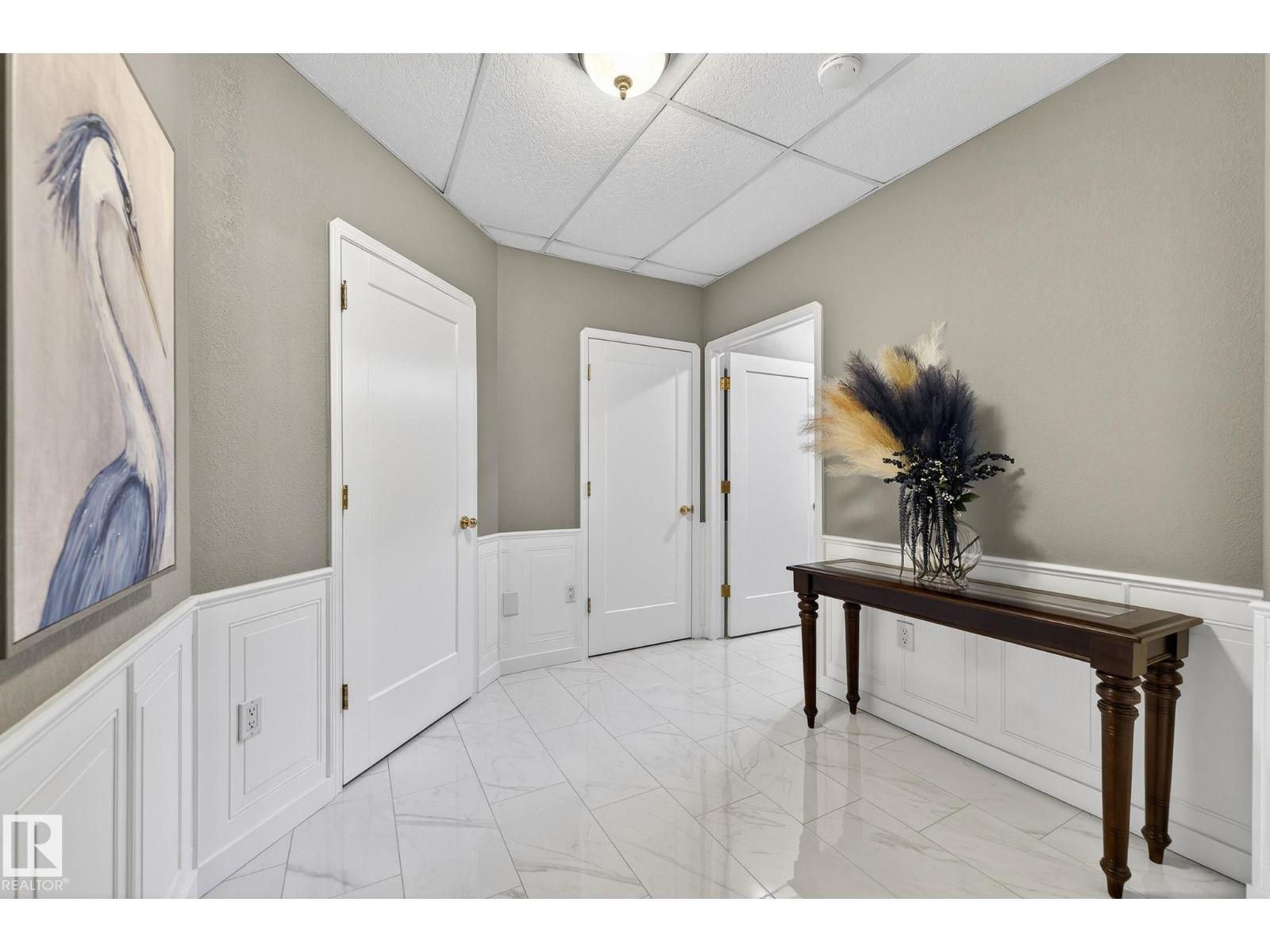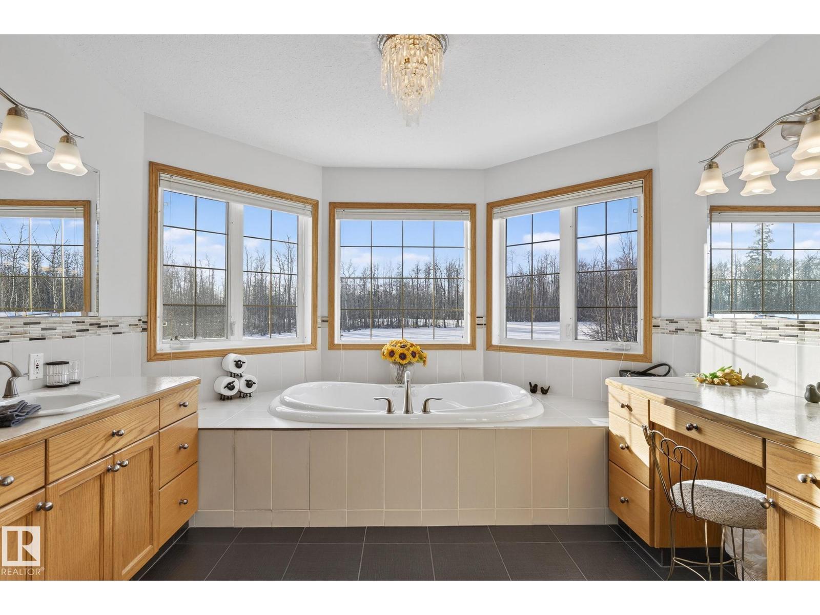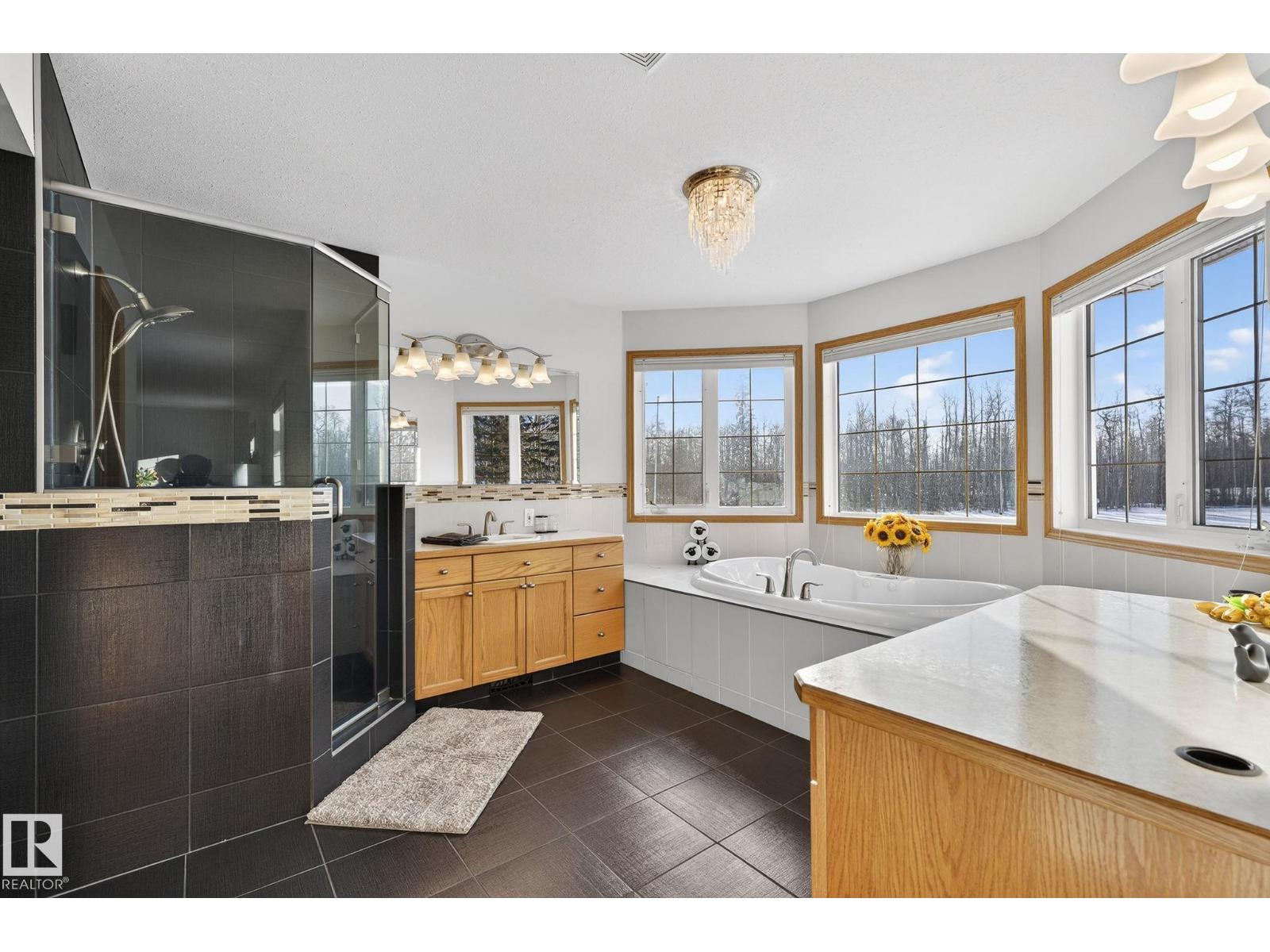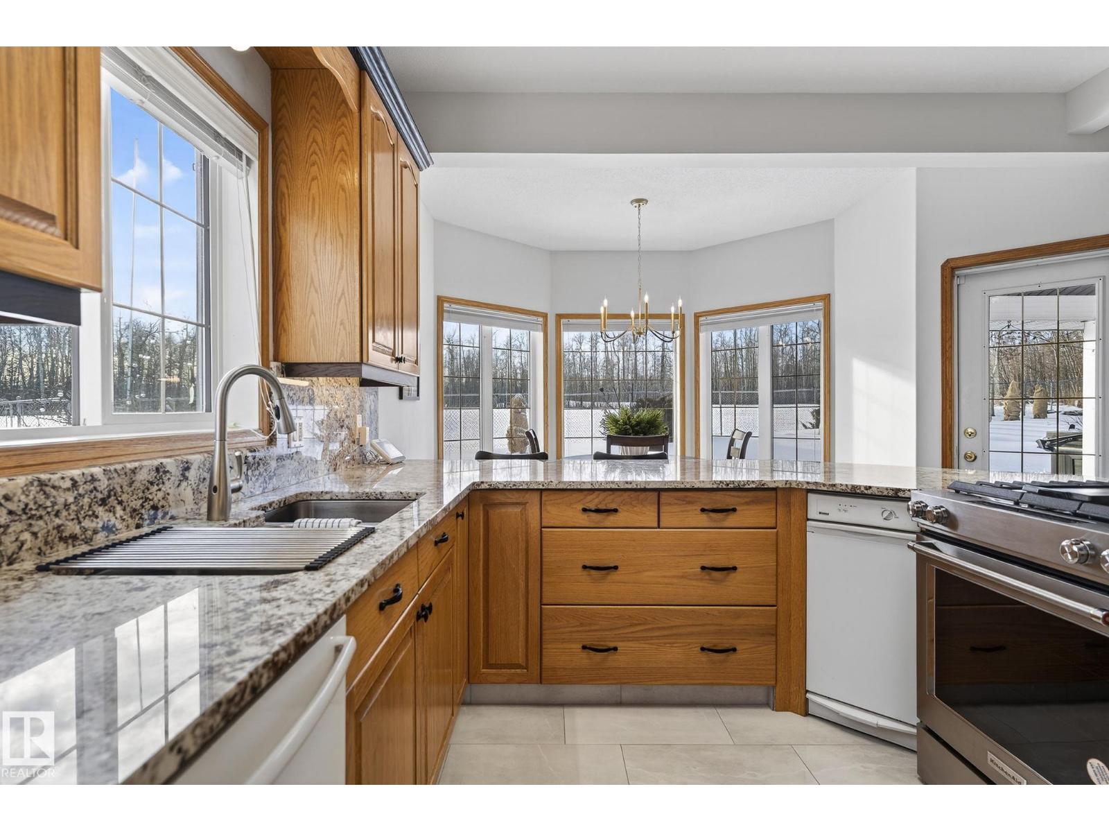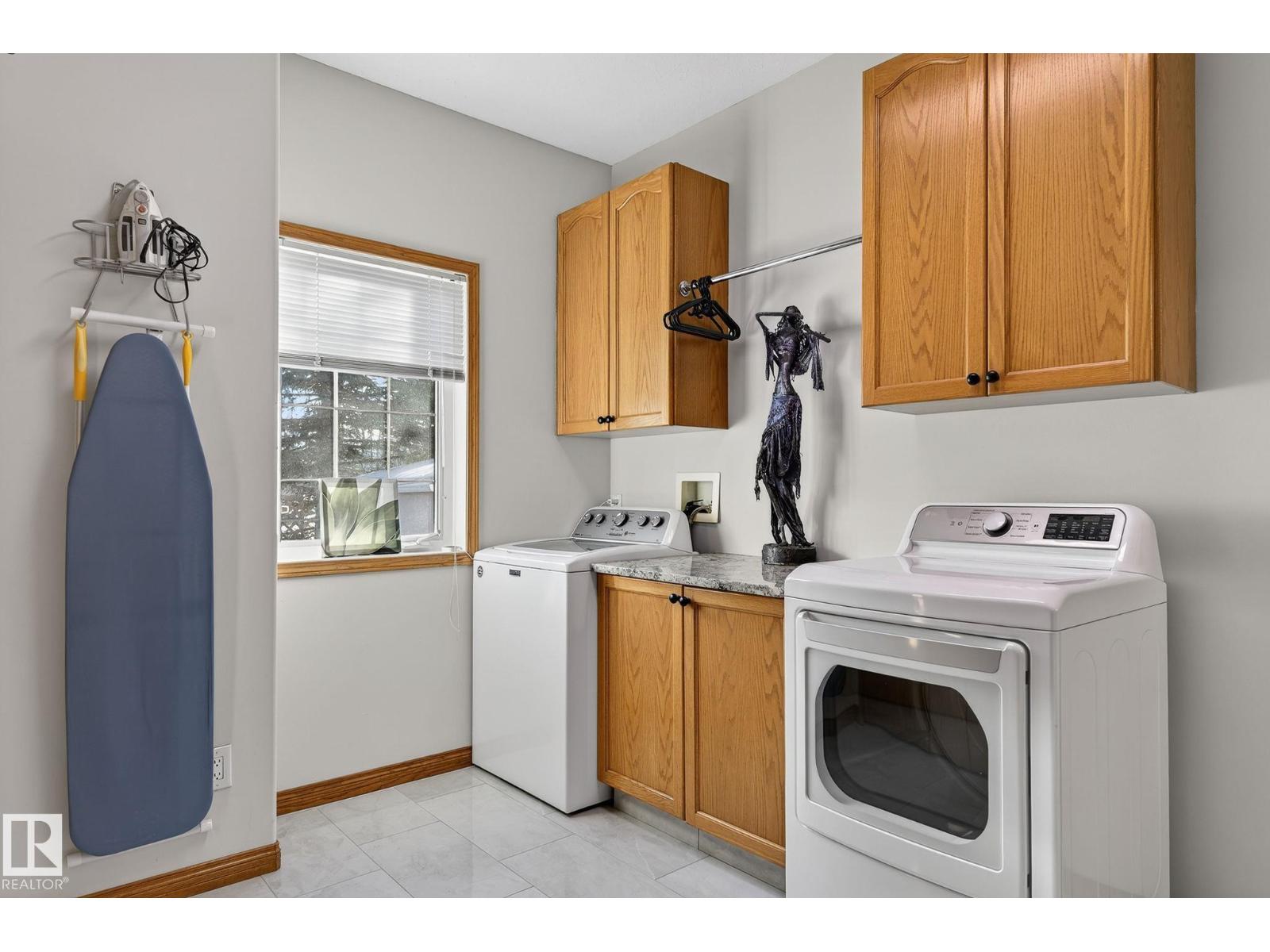 This impressive 2,366 sq. ft. fully finished home offers space, comfort, and premium features throughout. Main floor attributes include soaring 2 storey ceilings, 3 sided gas fireplace & laundry room. Upstairs there are 3 generously sized bedrooms, including a massive primary retreat complete with a gas fireplace and large four-piece ensuite (in floor heat). The fully developed basement is enhanced with in-floor heating for year-round comfort. Recent updates include new gas stove, fresh paint, brand-new carpet and ceramic tile flooring, adding a fresh, modern feel. Central air conditioning and two furnaces ensure efficient climate control on every level. Situated on nearly a quarter-acre lot backing directly onto a golf course, the beautifully landscaped backyard is a private oasis. The heated triple-car garage provides ample room for vehicles and storage. Enjoy outdoor living on the new maintenance-free deck with hot tub included—perfect for relaxing or entertaining while taking in the serene views. (id:63190)