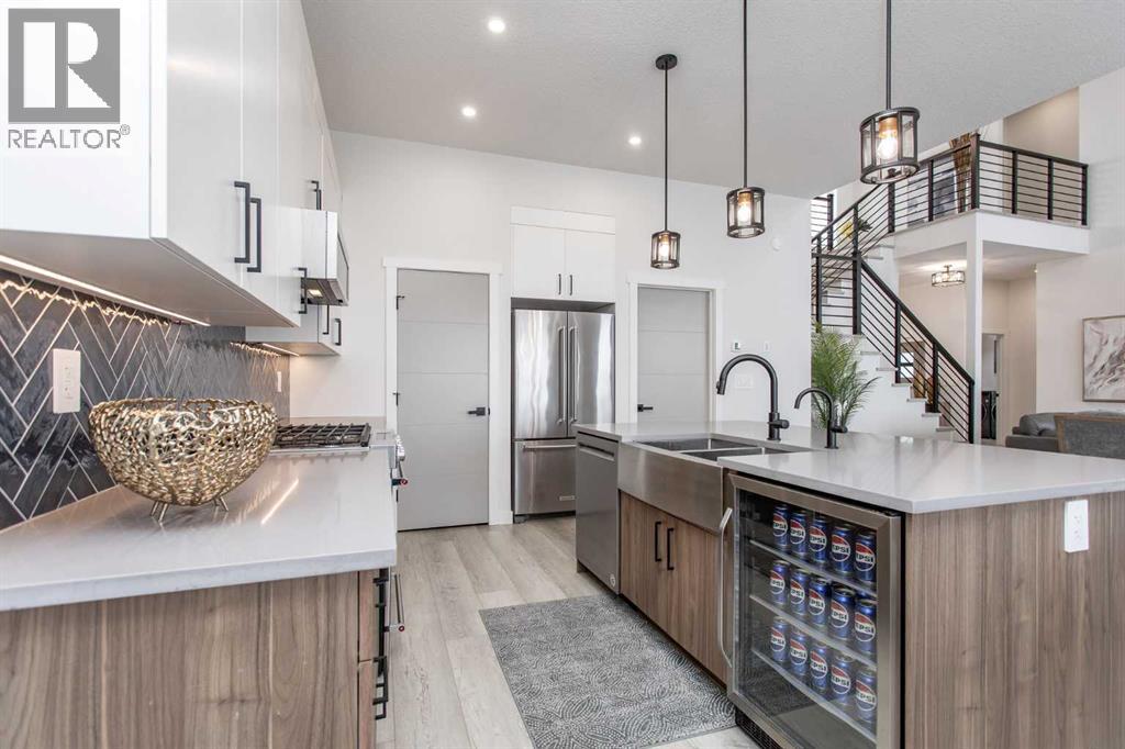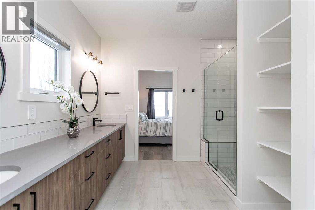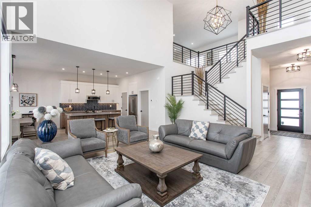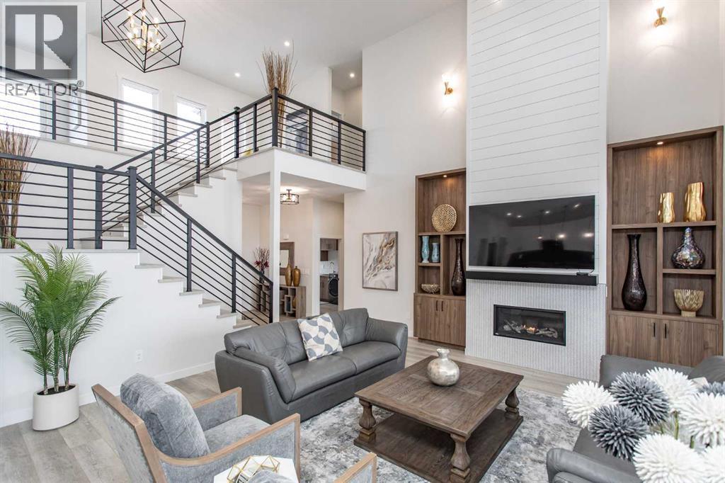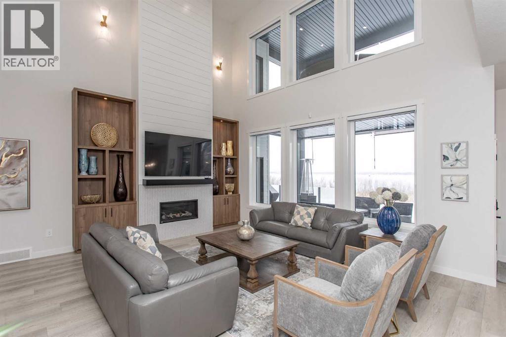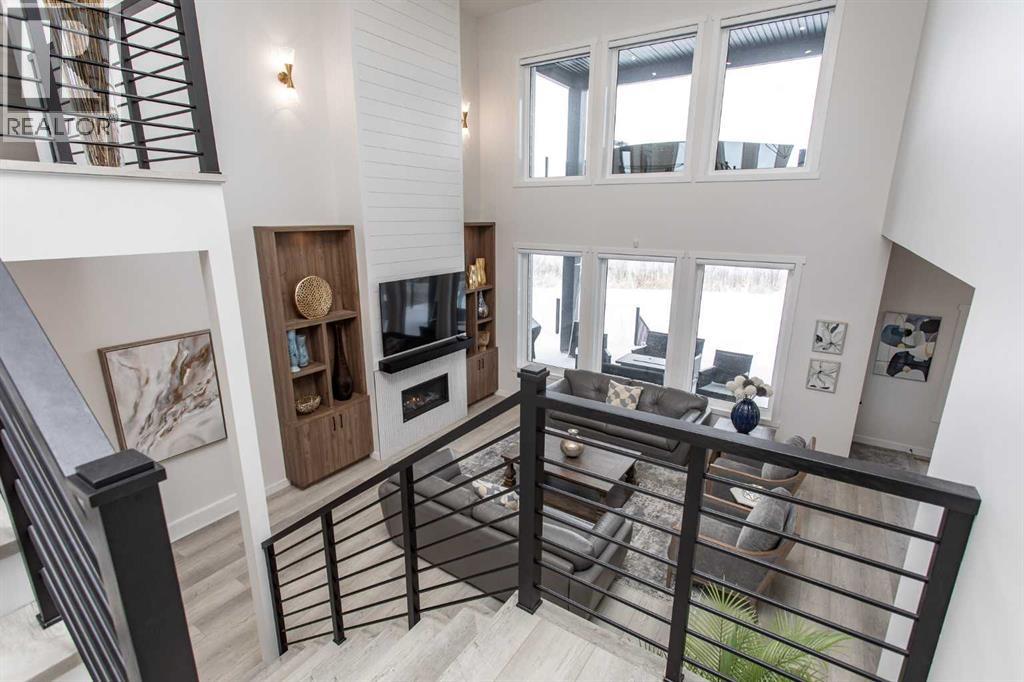 This beautiful LAKEFRONT HOME will leave you breathless! A STUNNING TWO STORY with meticulous details and modern design. Plenty of space for the entire family with 4 bedrooms and 3.5 bathrooms. Just seconds from the town of Sylvan Lake on the sunny-side shores of the sought after summer village of Jarvis Bay. Twin Rose Estates is a new development offering a tranquil setting of sandy shoreline and relaxing sunsets. This beautiful custom build rests beside a natural reserve for added peace and privacy. The crisp white hardy board brings the curb appeal to new heights, along with the extensive landscaping. The double attached garage is fully finished, heated and offers plenty of indoor parking. The grand entrance gives your guests their first glimpse of the gorgeous views. Luxury vinyl plank flooring leads you throughout the entire home. A wall of windows offers an airy feel and loads of natural light. This open floor plan lends itself to entertaining with elegance and functionality. The living room showcases a gorgeous gas fireplace flanked by beautiful built-in shelving. The modern kitchen features two tone custom cabinetry draped in exquisite quartz countertops. The stainless steel appliances include a gas stove and beverage fridge. Dining will be a delight surrounded with the serene setting. Step thru the garden door to gain access to the expansive lower deck, bordered with seamless glass railings. This area is perfect for gathering, partially covered seating with cozy overhead heaters, along with an inviting sunken hot tub! The wide staircase welcomes you down to the large backyard and sandy lakefront. Your grass will stay green and healthy with the help of the underground sprinkler system, fed endlessly by your personal well. A short stroll leads you to the shared dock and your BOAT SLIP! This main floor also features the spacious primary suite, your personal retreat, with private entry from the deck. The spa-like ensuite boasts a gorgeous glass shower, double v anities, generous walk-in closet and easy access to the large laundry room. The staircase to the second level makes a statement and is highlighted with a fantastic light fixture. This spacious second floor features a cozy family room with access to the upper front patio, a perfect location for your morning coffee with amazing views. A second primary bedroom boasts a 4-piece ensuite, walk-in closet and access to the upper deck. Two generous bedrooms come complete with a Jack-n-Jill bathroom and walk-in closets. The west bedroom also has access to the back patio. Additional upgrades include Reverse Osmosis System, an on-demand boiler, security system, and custom electric window treatments. Lakefront Living is a life style like no other. Treat yourself and tour this pristine property today! (id:63190)