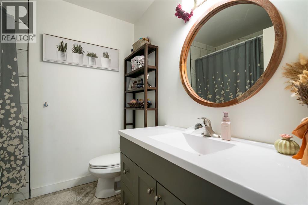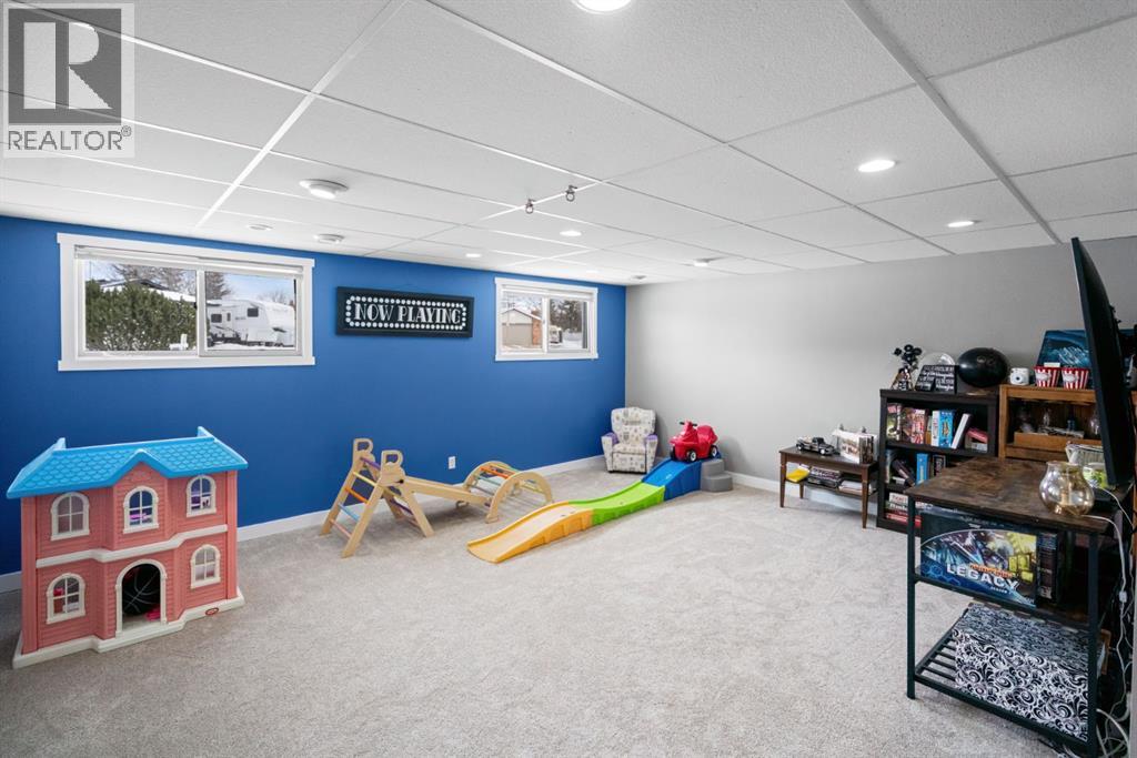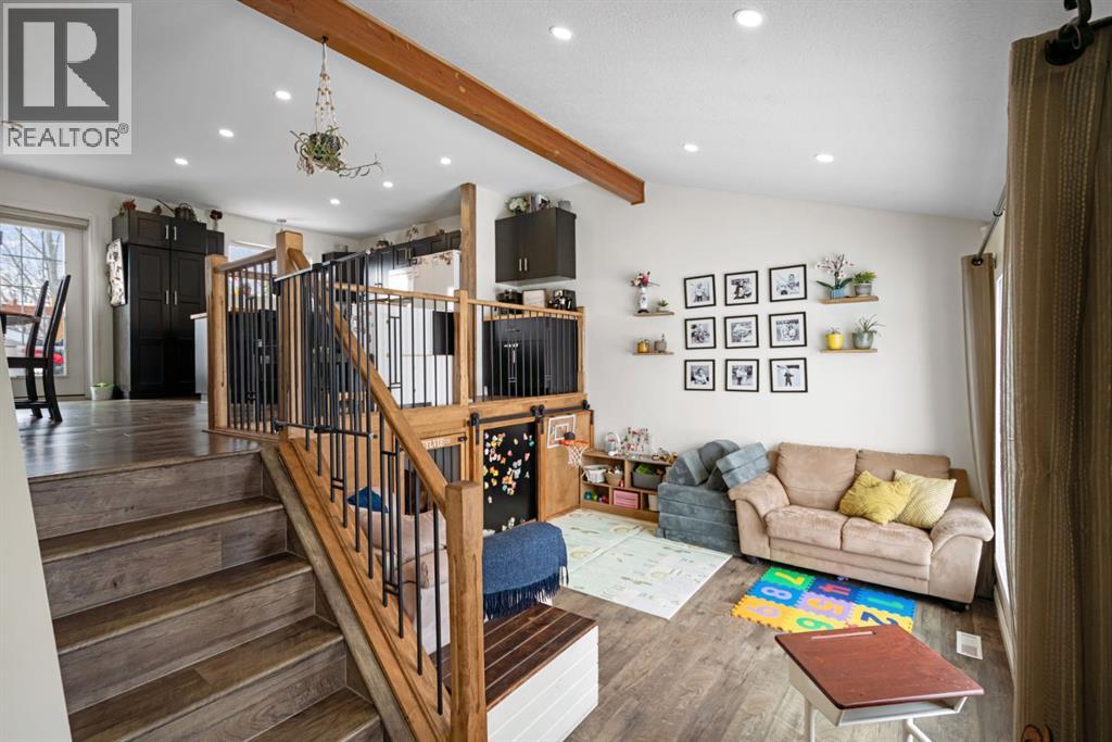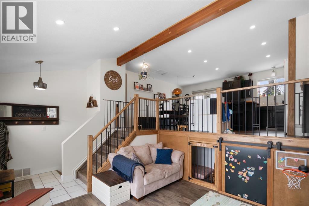 Situated on a large corner lot in the desirable community of Duggan Park, this well- maintained bi-level offers space, functionality, and numerous updates throughout. Enjoy the convenience of a double car garage and fully fenced yard featuring fire pit and large tiered deck, perfect for entertaining or relaxing outdoors. Ideally located within walking distance to parks and shopping.The interior boasts high ceilings, a new front window, and stunning front door that fills the home with natural light. The newly expanded kitchen is the heart of the home, compete with a pantry, Island, built-in bench seating, and barn door accents. A creative, gated dog bed area and toy nook is perfect for young kids and pets but could also easily be converted to storage space. The main floor offers 3 bedrooms including a primary with a 2 piece ensuite, plus an additional 4 piece bathroom. Downstairs features a spacious playroom or rec room- featuring BRAND NEW carpet, paint, baseboards!! You can still smell the new! It also has an additional bedroom, 3 piece bathroom, and a convenient built in desk area. A huge utility room includes laundry, a sink, and access to a crawl space with ample storage. Additional upgrades include a brand new furnace and roof, making this home move-in ready and ideal for families looking for comfort, space, and fantastic location. (id:63190)