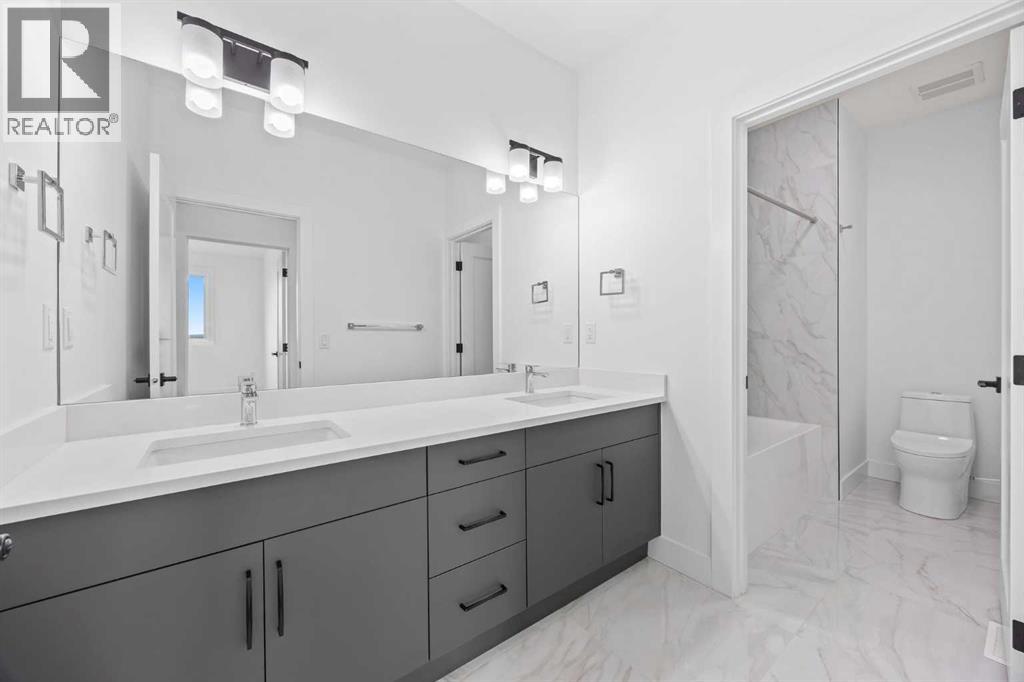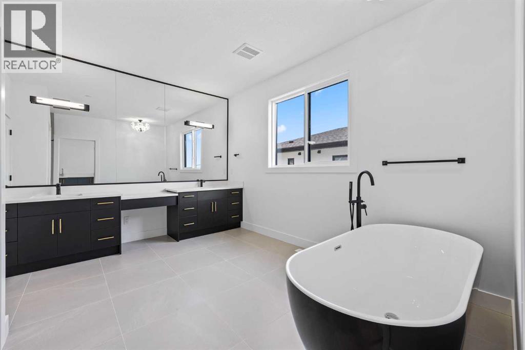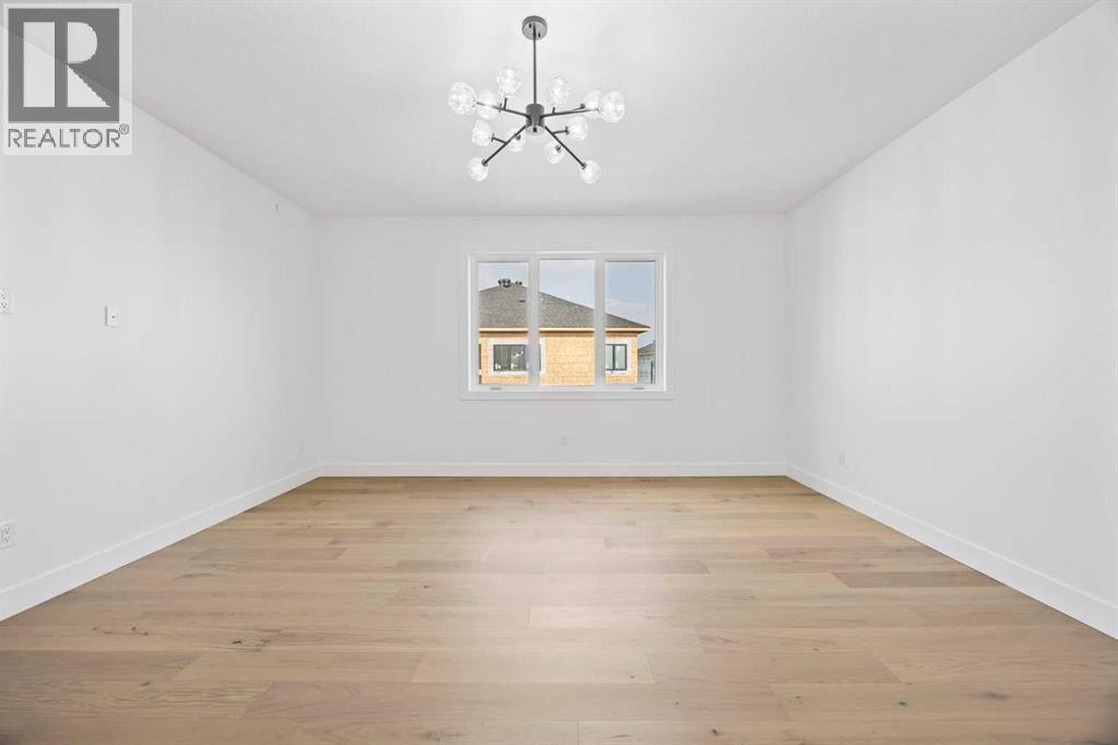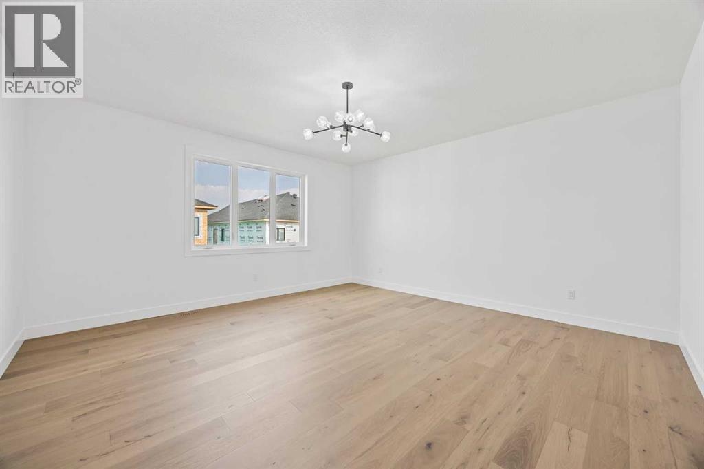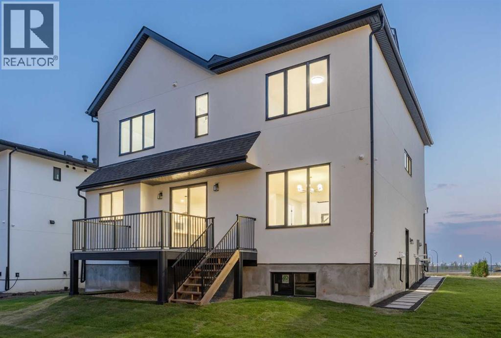 Welcome to the brand new development of Knightsbridge in Cambridge Park. Minutes away from access to Stoney Trail and East Hills shopping centre. The EDEN is a stunning estate home designed to blend luxury and practicality. Set on a generous 6027 sq ft lot, this home provides an expansive backyard and a side-drive triple car garage. These are not your typical cookie cutter homes. With 3,502 sq ft of living space, this custom-built masterpiece features 5 spacious bedrooms and 4.5 beautifully designed bathrooms, offering ample room for family and guests. This home is loaded with upgrades including: Main floor full ensuite bath as well as an added powder room, Jack and Jill ensuites for added convenience, High ceilings & a Spice kitchen to enhance your culinary experiences. Inside, the main floor exudes elegance with rich hardwood flooring and 9 ft ceilings with 8 ft doors, and striking black-framed windows that invite natural light. The gourmet kitchen is a chef’s dream, complete with an oversized island, a secondary spice kitchen, sleek stainless steel appliances. An open concept formal dining and living area set the stage for gatherings. The main floor also includes a flex room as well as a 4 pc ensuite bathroom. The primary suite on the upper floors is a true sanctuary with a freestanding tub and a custom-built closet. The home’s thoughtful design continues with 3 more generous sized bedrooms on the second floor, a bonus room for entertaining, a Jack & Jill ensuite bathroom for convenience, as well as a second floor laundry room. . Step outside to enjoy a completed rear deck with steps leading to a private outdoor oasis. This home also offers a triple attached garage allowing plenty of space for extra parking. This community is within minutes to Calgary, Chestermere, and East Hills, 18 minutes to Downtown Calgary, and provides quick access to Stoney Trail, Highway 1, and McKnight Blvd making it easy to get anywhere in and around the city. Located near shopping cen tres, public and private schools, Khalsa school's, parks, and many other amenities, while still offering quiet country-living with wide open green spaces, walking paths, and playgrounds. (id:63190)