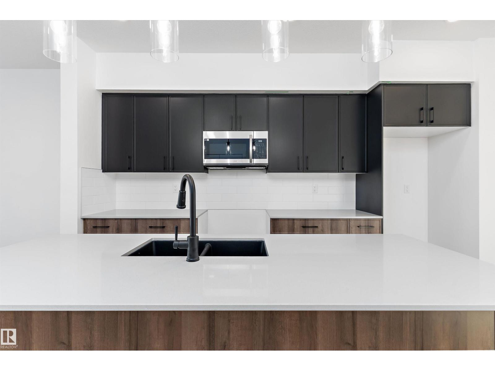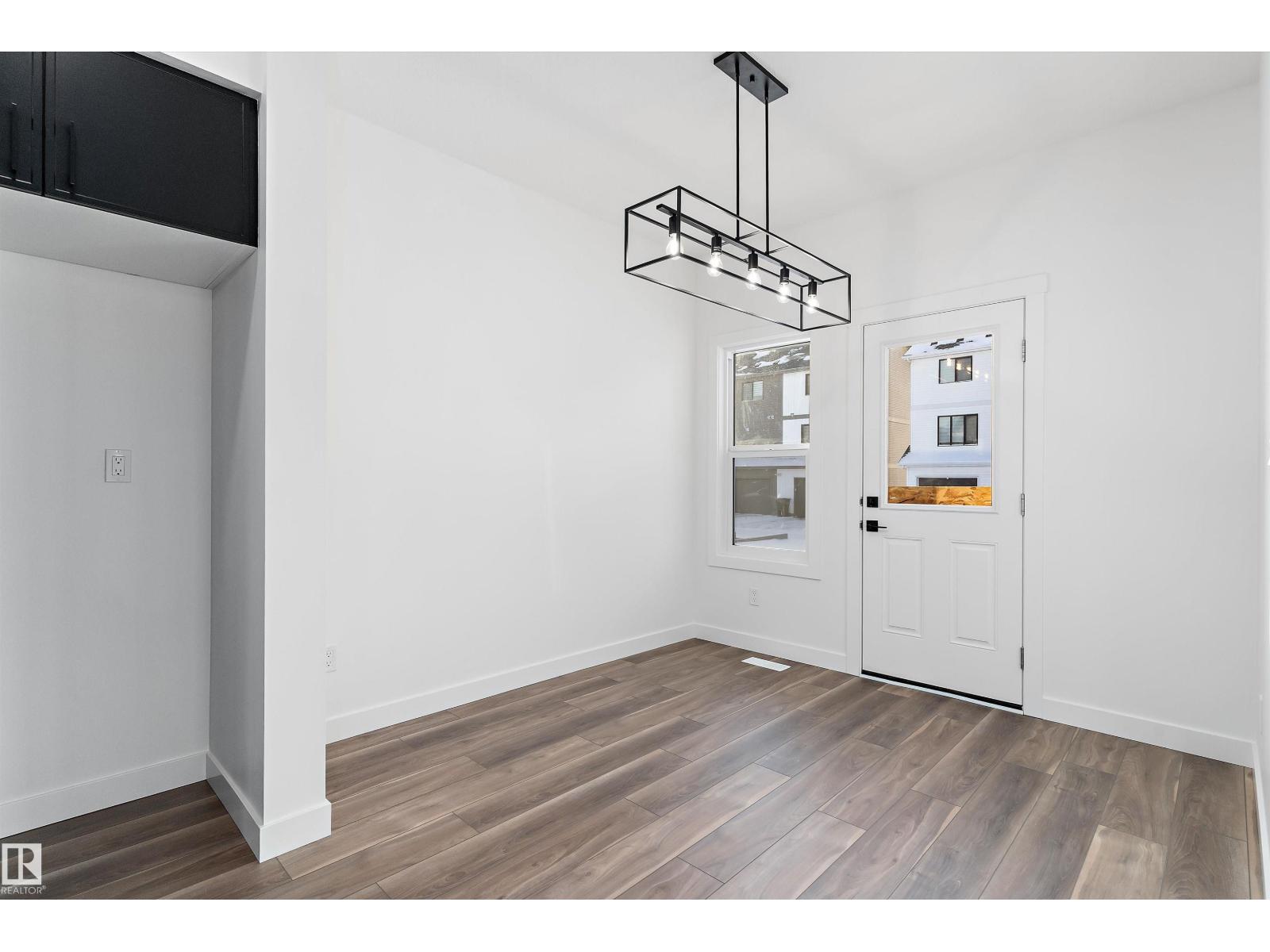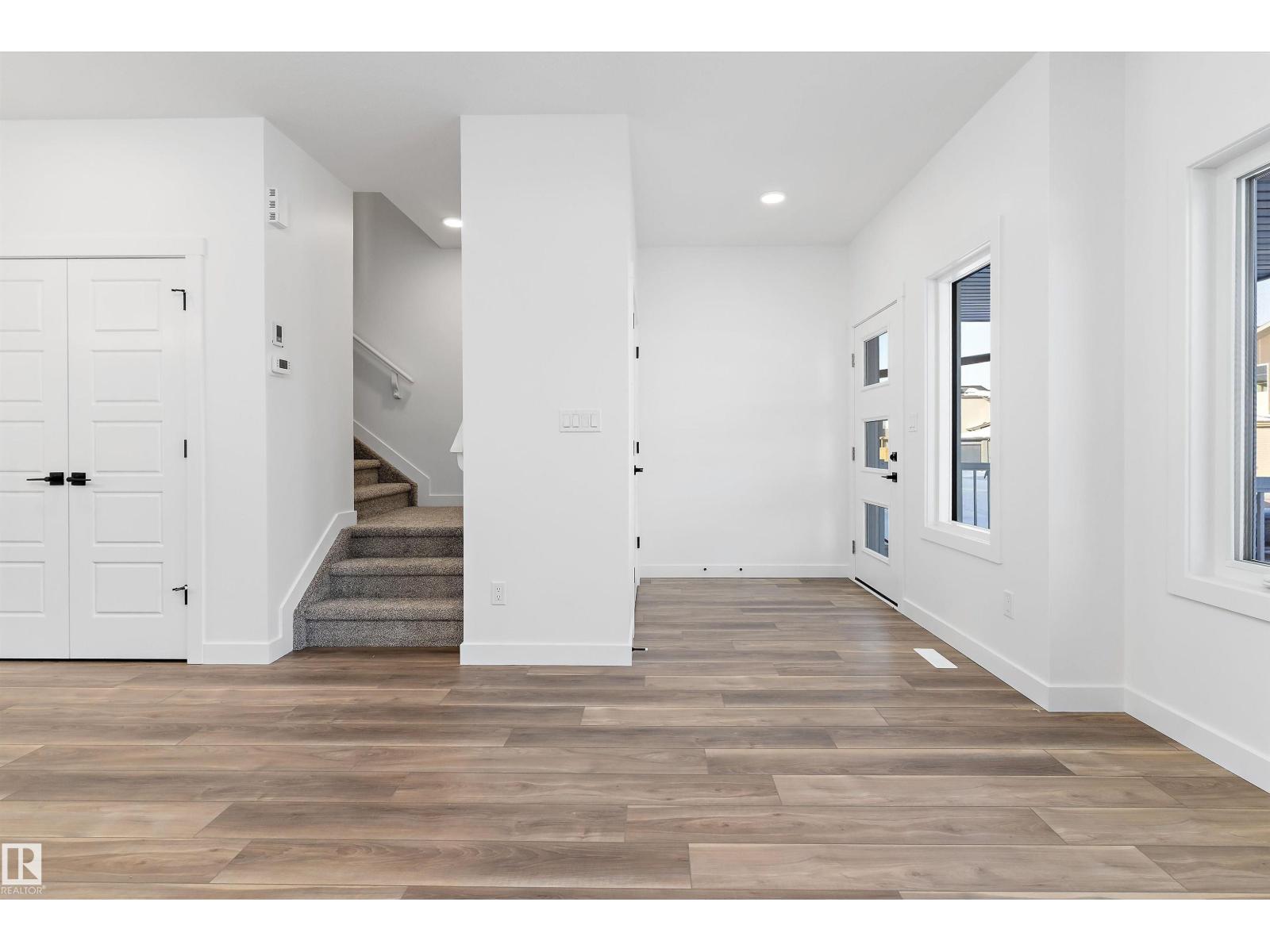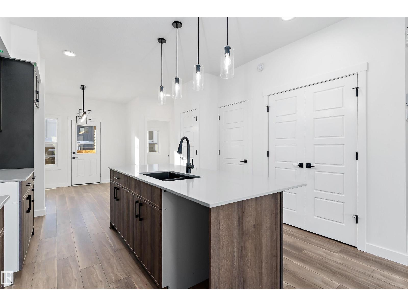 Discover the Sylvan by Sterling Homes, a well-crafted home designed for comfort and functionality. The main floor features luxury vinyl plank flooring and a welcoming foyer with coat storage leading to a bright great room. The kitchen offers quartz countertops, an island with flush eating ledge, Silgranit undermount sink, pendant lighting, over-the-range microwave, soft-close cabinetry with upgraded door profiles, and a pantry tucked near the stairs. At the rear, the sunlit nook overlooks the backyard and sits beside a main-floor bedroom and 3-piece bath with stand-up shower, with a garden door to the outdoors. Upstairs includes a primary suite with walk-in closet and 4-piece ensuite with tub/shower combo, two additional bedrooms, a full bath, and a laundry closet. 9’ ceilings on main and basement levels, a separate side entrance, black plumbing and lighting fixtures, basement rough-in plumbing, and a parking pad with option for a detached double garage complete this home. (id:63190)
