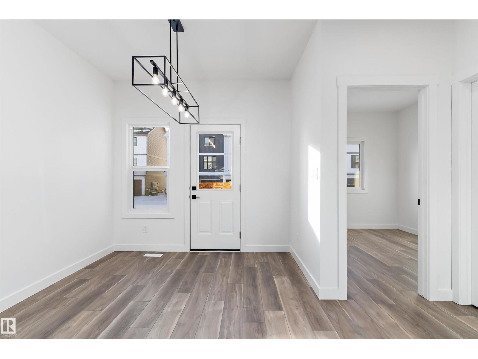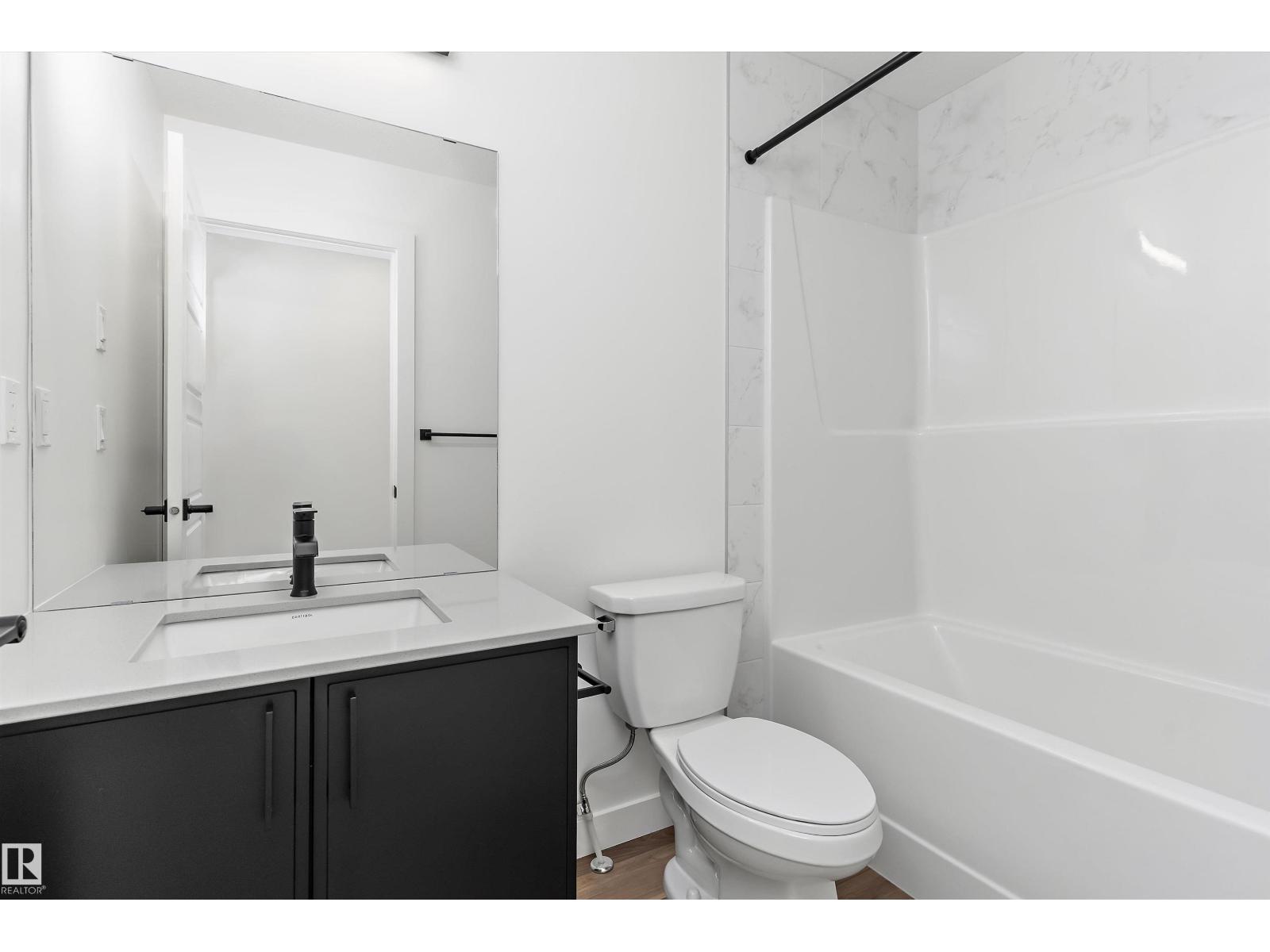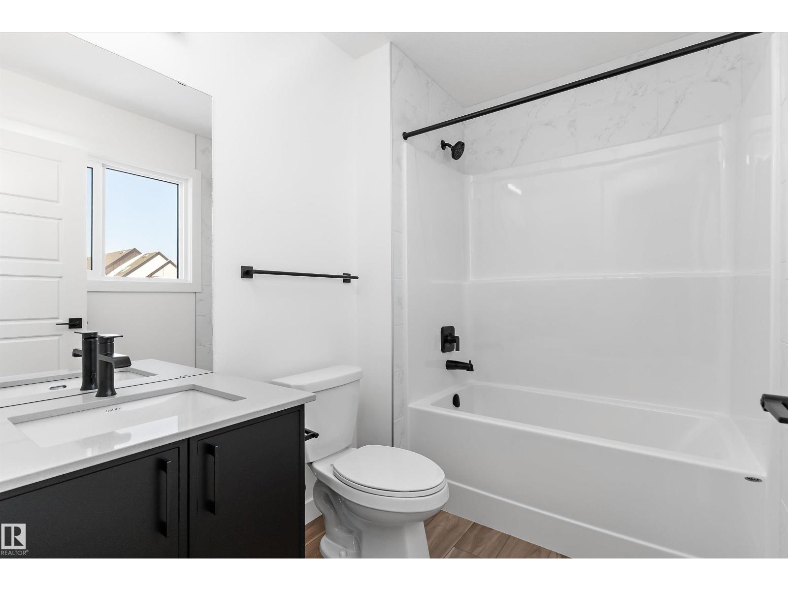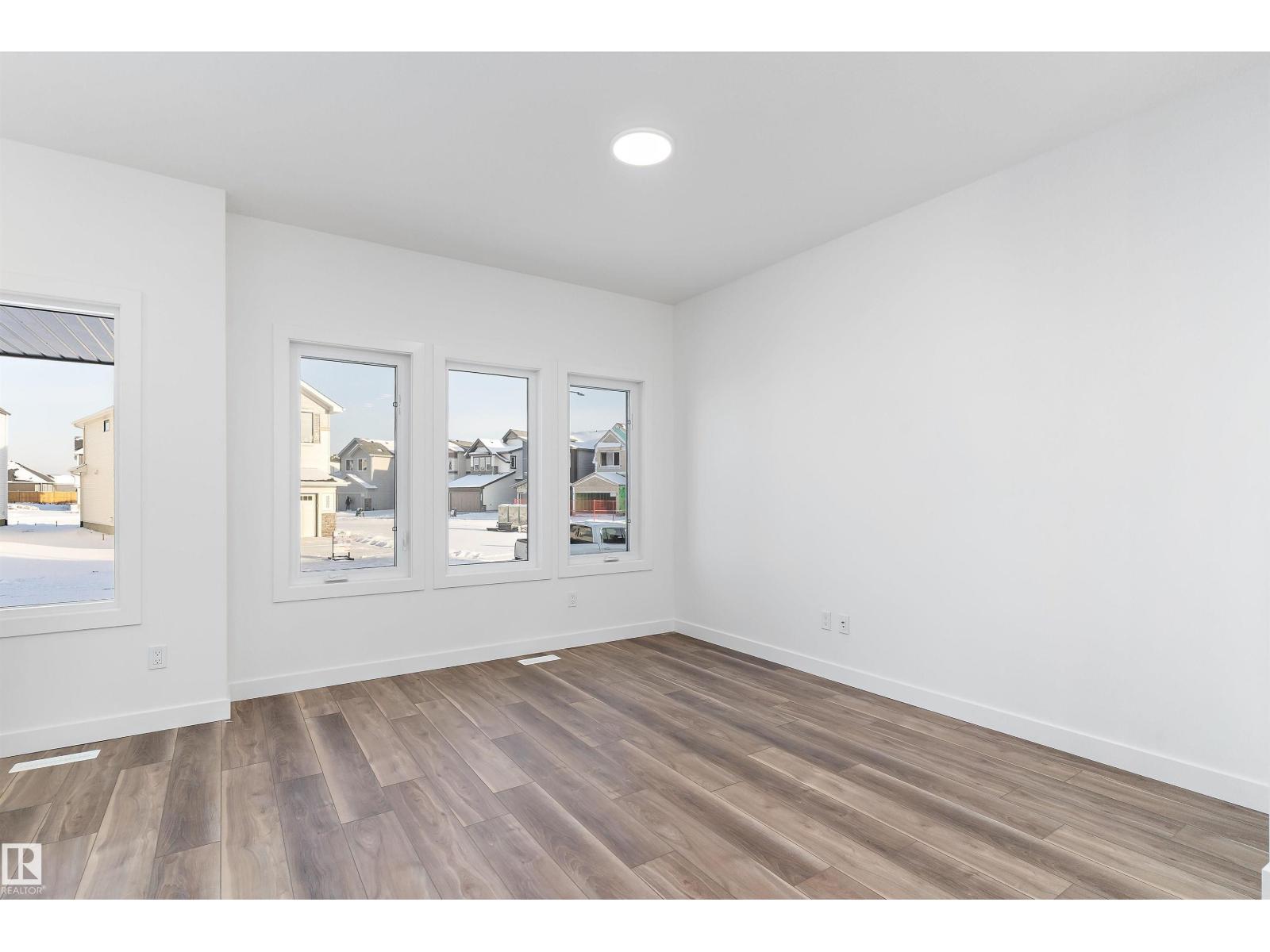 Discover the Sylvan by Sterling Homes, a well-crafted home designed for comfort and functionality. The main floor features luxury vinyl plank flooring and a welcoming foyer with coat storage leading to a bright great room. The kitchen offers quartz countertops, an island with flush eating ledge, Silgranit undermount sink, pendant lighting, over-the-range microwave, soft-close cabinetry with upgraded door profiles, and a pantry tucked near the stairs. At the rear, the sunlit nook overlooks the backyard and sits beside a main-floor bedroom and 3-piece bath with stand-up shower, with a garden door to the outdoors. Upstairs includes a primary suite with walk-in closet and 4-piece ensuite with tub/shower combo, two additional bedrooms, a full bath, and a laundry closet. 9’ ceilings on main and basement levels, a separate side entrance, black plumbing and lighting fixtures, basement rough-in plumbing, and a parking pad with option for a detached double garage complete this home. (id:63190)
