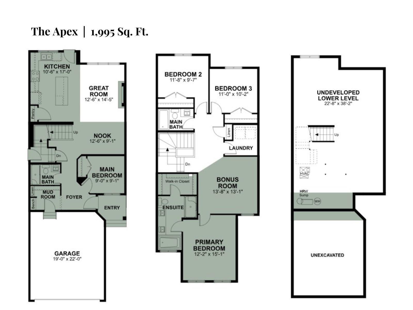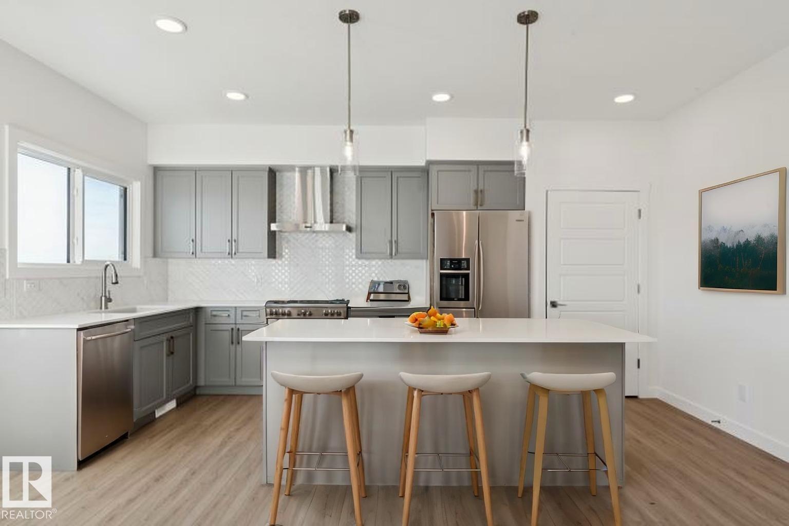 Designed for elevated family living, The Apex offers style, space, and smart functionality. This four-bedroom home features a double attached garage with floor drain, 9’ main-floor ceilings, luxury vinyl plank flooring, and a separate side entrance. The main level includes a full 3-piece bath and bedroom—perfect for guests or multi-generational living plus a mudroom with garage access. The open-concept kitchen, nook, and great room are ideal for entertaining, showcasing quartz countertops, a large island with eating ledge, upgraded soft-close cabinetry, built-in microwave, Silgranit sink, chimney-style hood fan, full-height backsplash, and pantry. Large windows and an electric fireplace brighten the space. Upstairs features a primary retreat with 5-piece ensuite and walk-in closet, bonus room, two additional bedrooms, full bath, and laundry. Includes brushed nickel fixtures, upgraded railings, basement rough-ins, and Sterling Signature Specifications. (id:63190)
