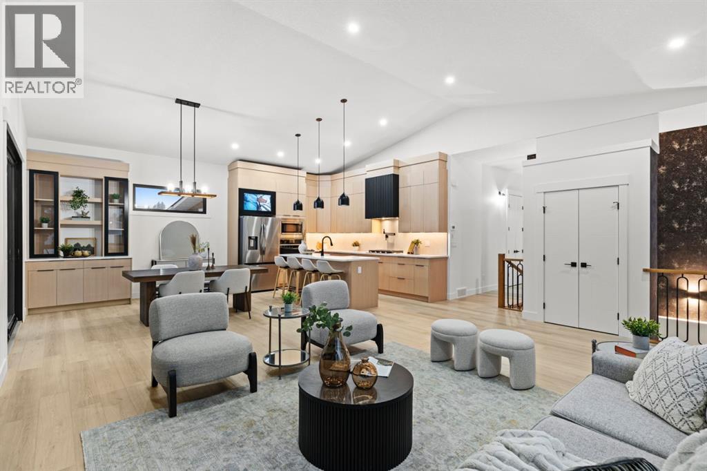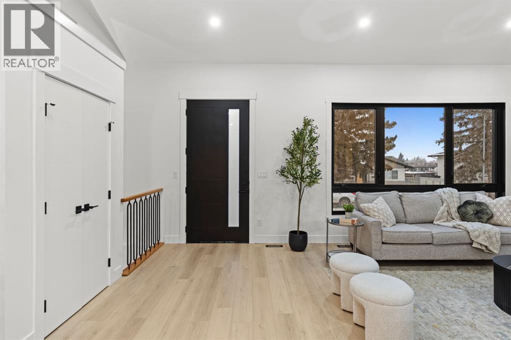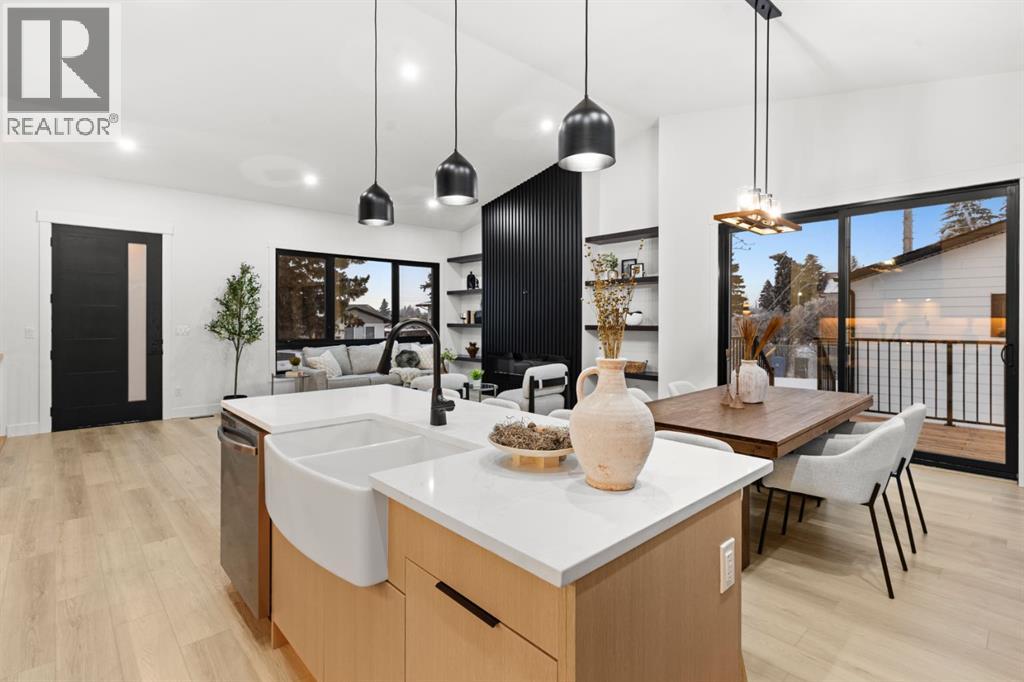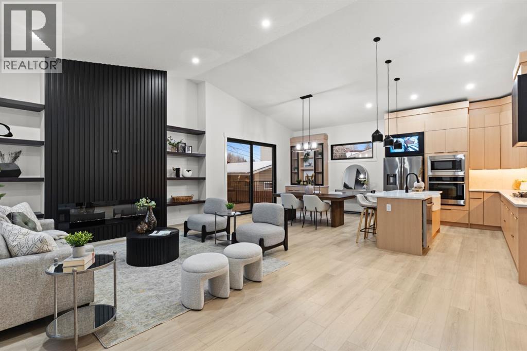 Welcome to Luxury Living in This Fully Reimagined Glamorgan ResidenceThis exceptional home has undergone a comprehensive, down-to-the-studs renovation, thoughtfully designed to deliver both sophistication and functionality. From the moment you enter, you are greeted by striking 14-foot vaulted ceilings that anchor an airy, open-concept floor plan and create an immediate sense of scale and elegance.The chef-inspired kitchen is a true centrepiece, featuring custom white oak cabinetry, a classic farmhouse sink, and seamless integration with the living and dining spaces—ideal for both everyday living and entertaining. The living area is warmed by a fireplace with bespoke millwork, adding architectural depth and refined character.The remainder of the main floor offers 10-foot ceilings and an abundance of natural light streaming through brand-new black-frame vinyl windows. A dedicated main-floor office with a custom glass door and oversized window provides an ideal space for remote work or a private study. The primary retreat is equally impressive, complete with a walk-in closet and a luxurious five-piece ensuite. An additional bedroom and a well-appointed three-piece bathroom complete the main level.The fully developed basement expands the living space with a generous secondary family room, laundry area, three-piece bathroom, and two additional bedrooms, offering flexibility for families, guests, or multi-generational living.This home has been meticulously planned and executed, featuring top-tier finishes throughout, a hardwired four-camera security system, and a doorbell camera with long-term recording capability for added peace of mind.Outdoors, the property continues to impress with a brand-new double-detached garage, new fencing, freshly laid sod, and all-new sandblasted concrete walkways surrounding the home and extending from the garage, creating a private, cohesive, and meticulously finished backyard retreat.A rare opportunity to own a fully renovate d luxury home in the established and sought-after community of Glamorgan. (id:63190)
