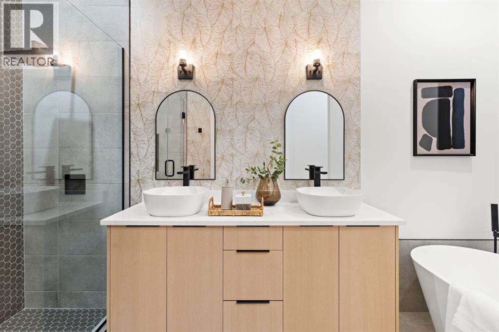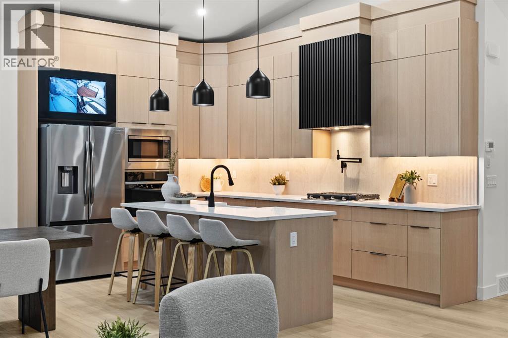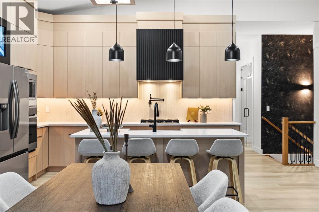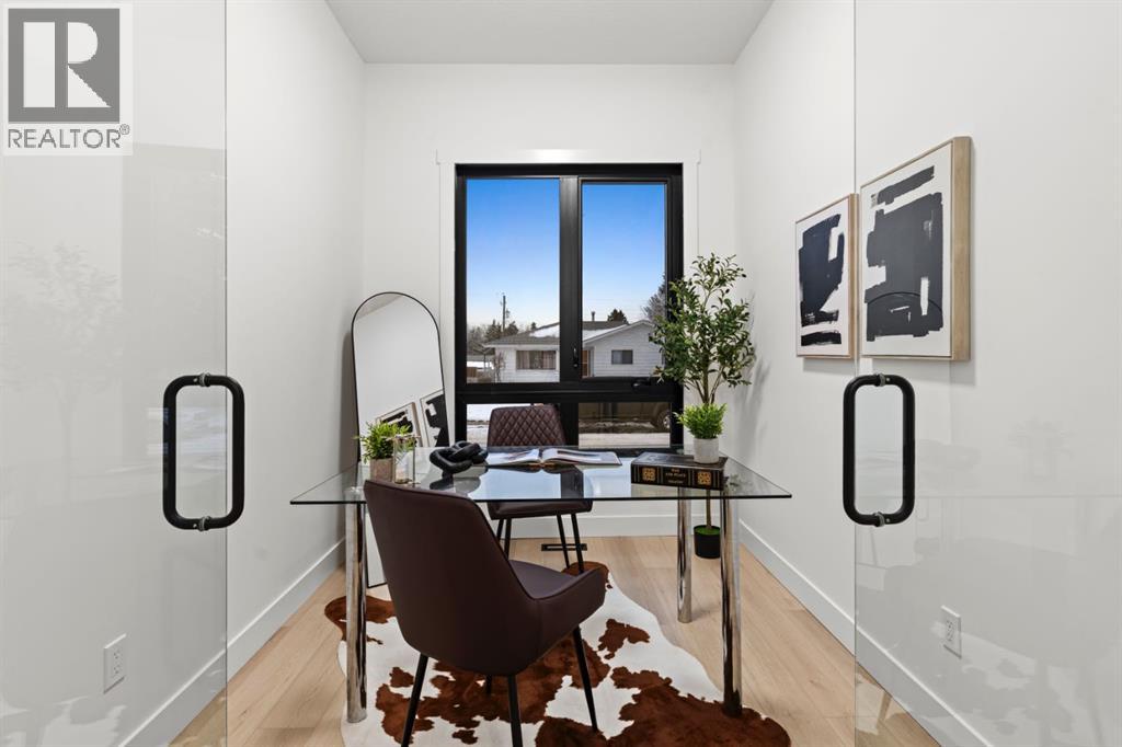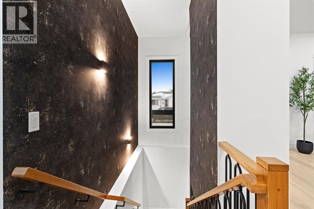 Welcome to Luxury Living in This Fully Reimagined Glamorgan ResidenceThis exceptional home has undergone a comprehensive, down-to-the-studs renovation, thoughtfully designed to deliver both sophistication and functionality. From the moment you enter, you are greeted by striking 14-foot vaulted ceilings that anchor an airy, open-concept floor plan and create an immediate sense of scale and elegance.The chef-inspired kitchen is a true centrepiece, featuring custom white oak cabinetry, a classic farmhouse sink, and seamless integration with the living and dining spaces—ideal for both everyday living and entertaining. The living area is warmed by a fireplace with bespoke millwork, adding architectural depth and refined character.The remainder of the main floor offers 10-foot ceilings and an abundance of natural light streaming through brand-new black-frame vinyl windows. A dedicated main-floor office with a custom glass door and oversized window provides an ideal space for remote work or a private study. The primary retreat is equally impressive, complete with a walk-in closet and a luxurious five-piece ensuite. An additional bedroom and a well-appointed three-piece bathroom complete the main level.The fully developed basement expands the living space with a generous secondary family room, laundry area, three-piece bathroom, and two additional bedrooms, offering flexibility for families, guests, or multi-generational living.This home has been meticulously planned and executed, featuring top-tier finishes throughout, a hardwired four-camera security system, and a doorbell camera with long-term recording capability for added peace of mind.Outdoors, the property continues to impress with a brand-new double-detached garage, new fencing, freshly laid sod, and all-new sandblasted concrete walkways surrounding the home and extending from the garage, creating a private, cohesive, and meticulously finished backyard retreat.A rare opportunity to own a fully renovate d luxury home in the established and sought-after community of Glamorgan. (id:63190)