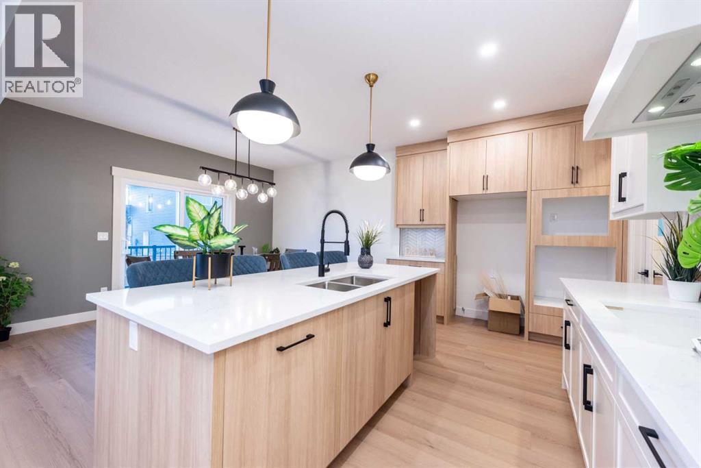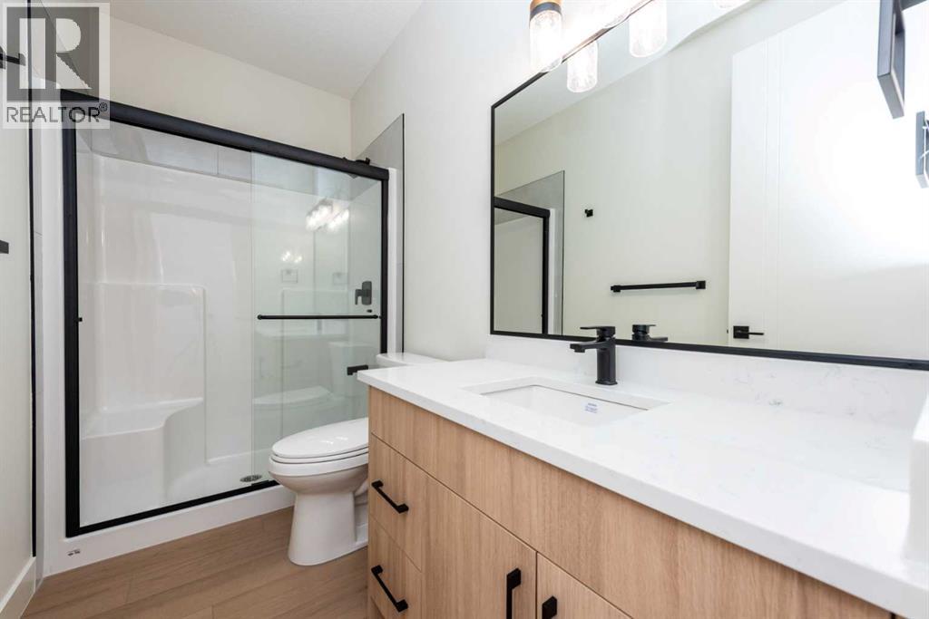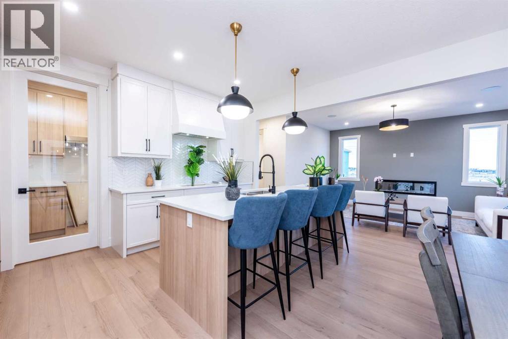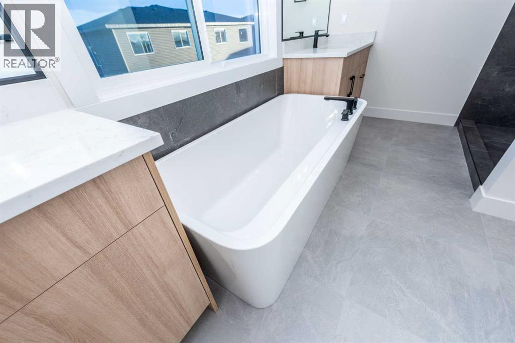 Welcome to this stunning and thoughtfully designed home, located in the highly sought-after Waterford community of Chestermere. Situated on a wide corner lot, this residence offers over 2,600 sq ft of beautifully appointed living space, perfect for growing families or multi-generational living. Step through the grand entry into a bright and spacious main floor that features a full bedroom and 3-piece bathroom ideal for guests or extended family. The heart of the home is the open-concept kitchen, complemented by a large, fully enclosed spice kitchen with direct access from both the mudroom and main kitchen, providing the ultimate convenience for culinary enthusiasts. Upstairs, you’ll find four well-sized bedrooms, including a luxurious primary suite with a spa-inspired ensuite and walk-in closet, as well as a second master suite with its own private ensuite. A large bonus room and an upstairs laundry room add practicality and comfort to this upper level. The unfinished basement offers exceptional potential, with a separate side entrance that allows for the development of a legal basement suite or custom space tailored to your needs. Located just minutes from schools, parks, shopping, and all amenities, this is an incredible opportunity to own a versatile and spacious home in one of Chestermere’s fastest-growing neighbourhoods. (id:63190)