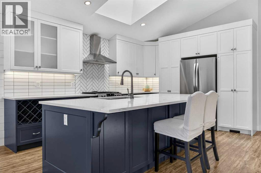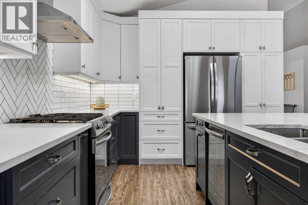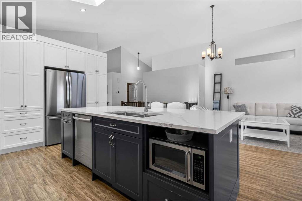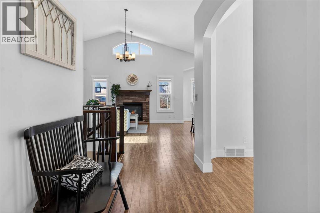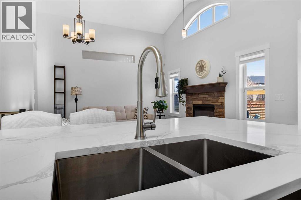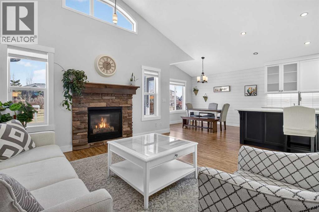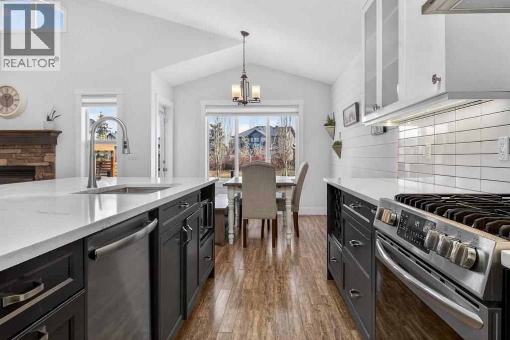 Welcome to Boulder Creek Estates in Langdon, where small-town charm meets refined bungalow living. This immaculate, fully finished 4 bedroom, 3 bath, 1800 sq ft bungalow offers over 3,000 sq ft of beautifully designed living space with vaulted ceilings, a triple car garage, and central air conditioning. A formal dining room and large den offer versatility for entertaining, working from home, or quiet relaxation. The chef-inspired kitchen features granite countertops, stainless steel appliances, a gas stove, skylight, and ample cabinetry, flowing into a warm living room with a gas fireplace. The spacious primary suite includes a stylish barn door and a luxurious 5 pc ensuite. The fully developed lower level adds a large recreation room with a second gas fireplace, two additional bedrooms, generous storage, and the convenience of two laundry rooms. Situated on a private reverse pie lot backing onto green space, the landscaped backyard with underground sprinklers creates a peaceful outdoor retreat. Boulder Creek Estates is a vibrant community with nearby amenities including Boulder Creek Golf Course, the Langdon Fieldhouse, skatepark, playgrounds, schools, and local shops and restaurants, scenic walking paths, and convenient access to major commuting routes.Thoughtfully upgraded and meticulously maintained, this exceptional home offers space, comfort, and elegance just minutes from Calgary. (id:63190)