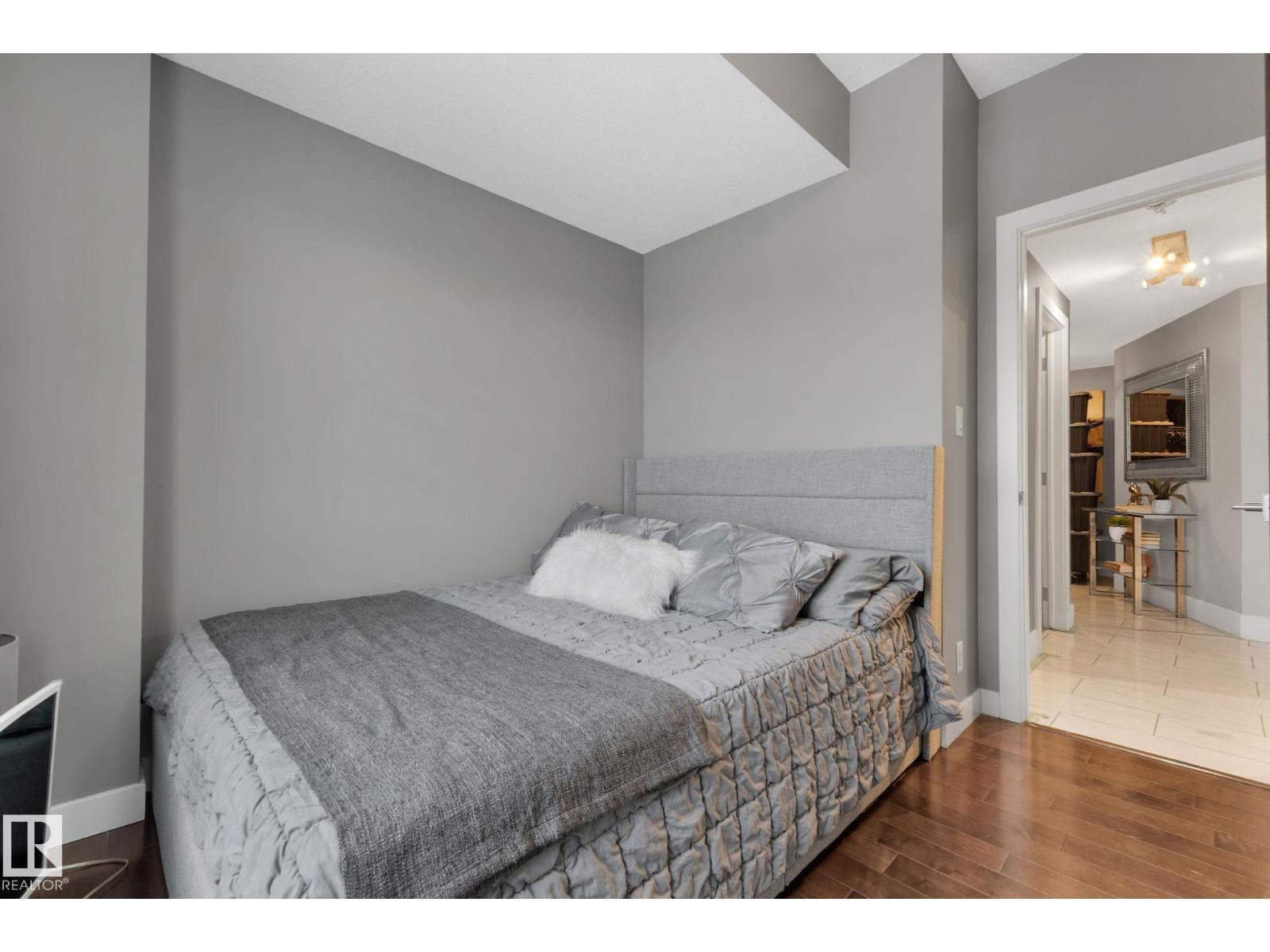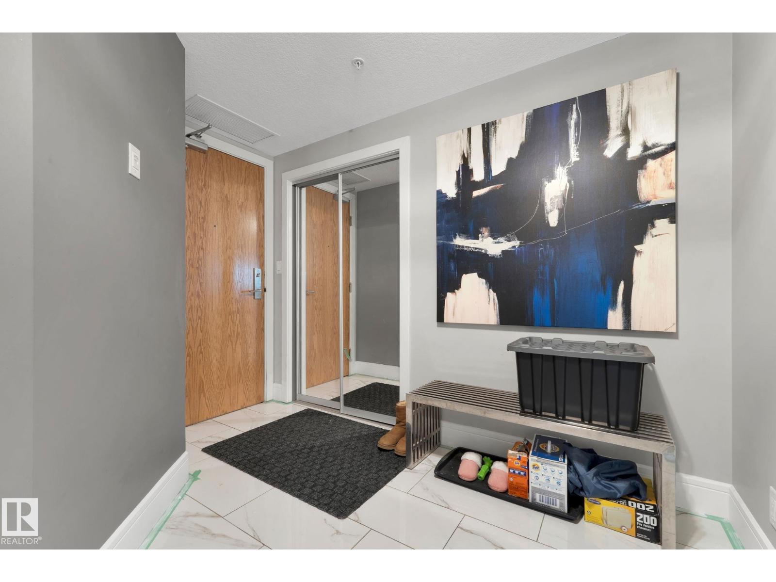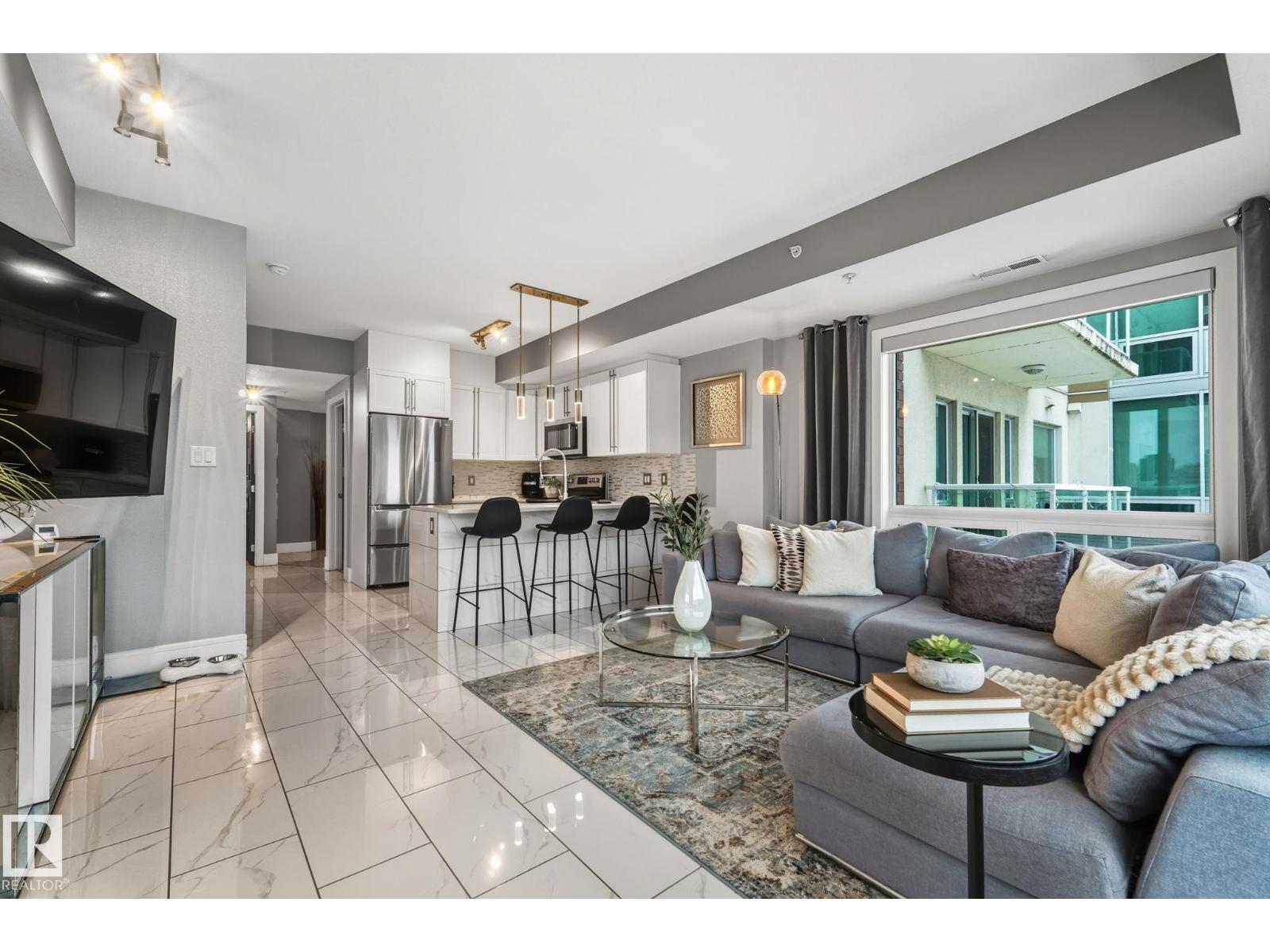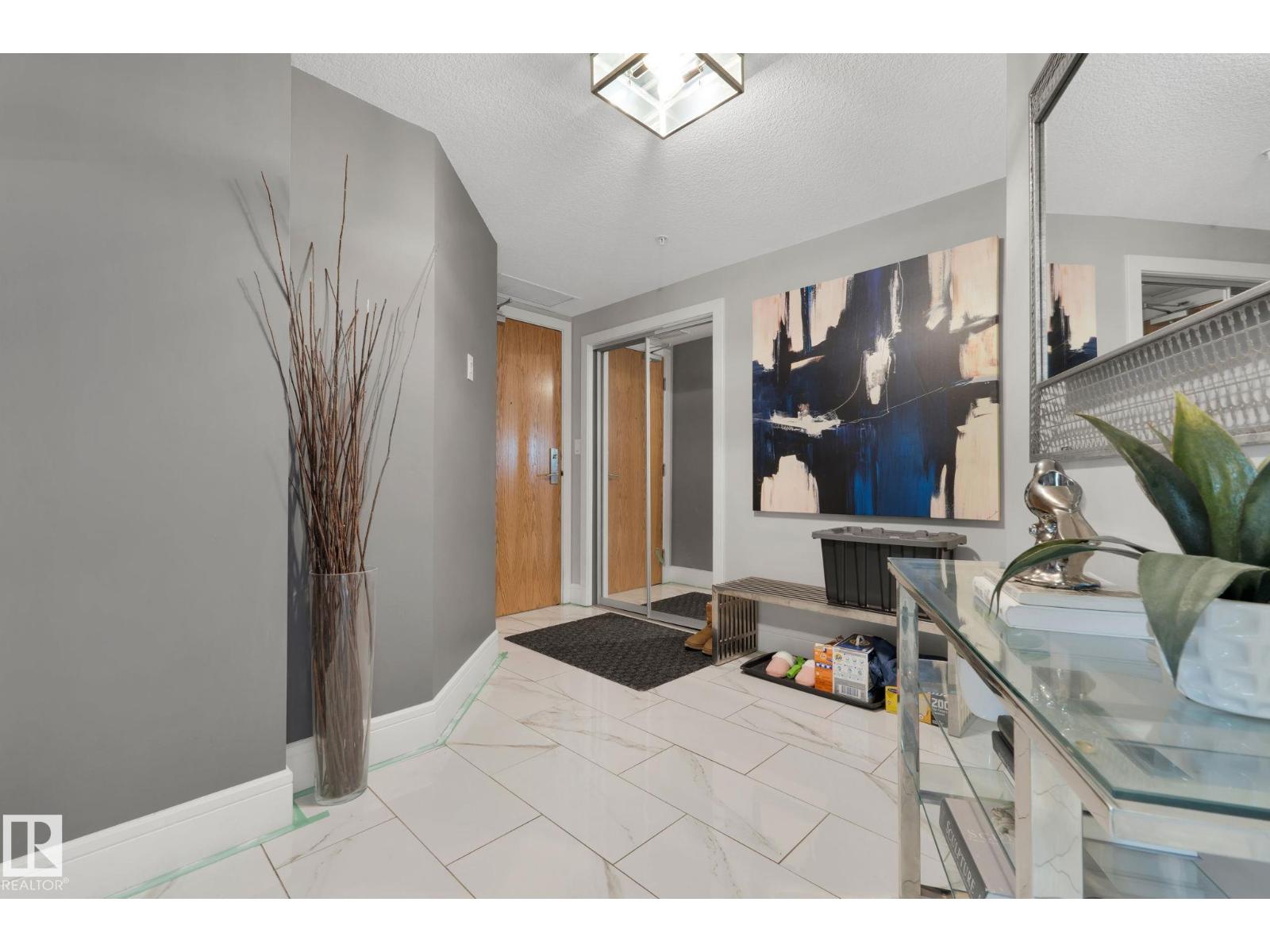 RENOVATED, MODERN condo on the 9 th floor w/ AMAZING VIEWS of Downtown North, East & West. A GENEROUS entryway welcomes you into a CHIC palette w/ 12x24 TILED floors, high profile trim, & UPDATED light & plumbing fixtures. Convenient in suite LAUNDRY room with UPGRADED front load washer/dryer. 2 bedrooms & 2 bathrooms, w/ HARDWOOD floors in each make for an ideal roommate or a work from home scenario. Cook in U-SHAPED, BRIGHT WHITE kitchen featuring STAINLESS appliances, QUARTZ countertops & custom tiled backsplash. The OPEN living room, has LARGE WINDOWS allowing NATURAL LIGHT to flood in. The living area opens onto the COVERED BALCONY w/ a NATURAL GAS hose bib, perfect for a evening BBQs and entertaining. RELAX in the Primary suite w/ a 3 piece ENSUITE w/ GLASS SHOWER. RARE! 2 side by side HEATED, UNDERGROUND parking stalls to keep your cars cozy! A quick LRT trip to the U of A! Located within WALKING distance to restaurants, shopping, parks and trails in the River Valley! (id:63190)