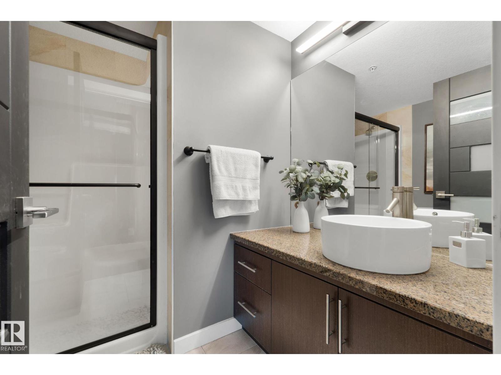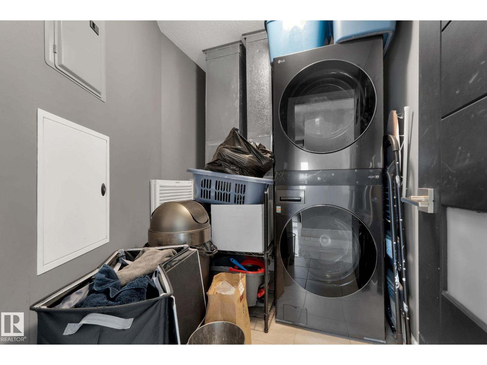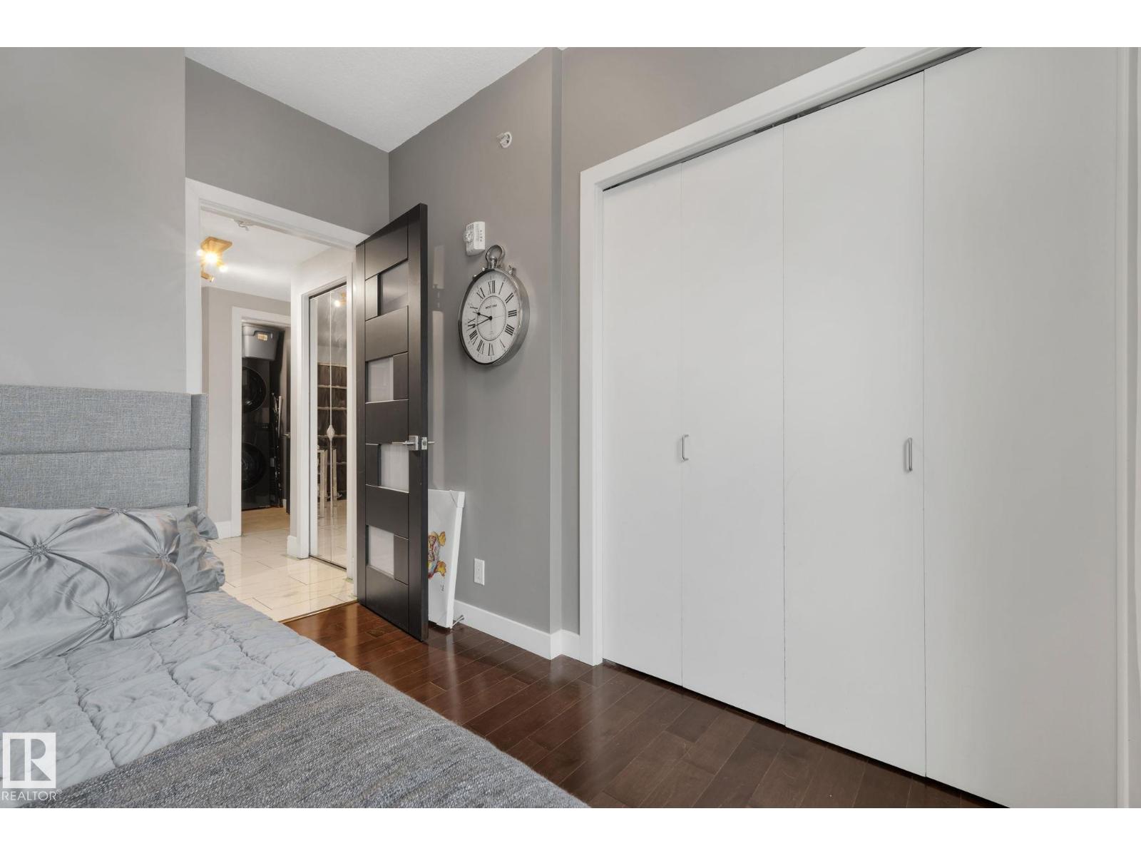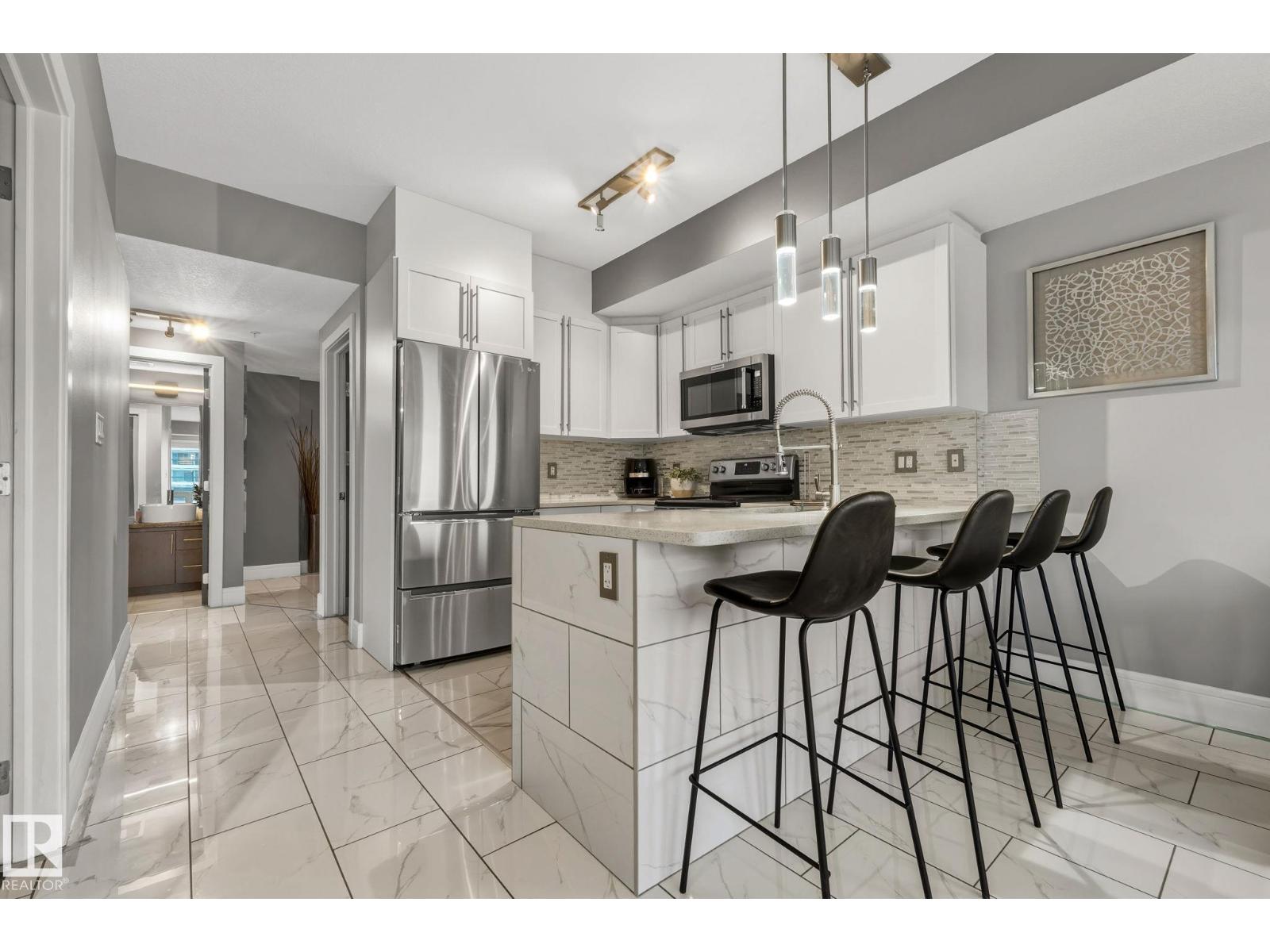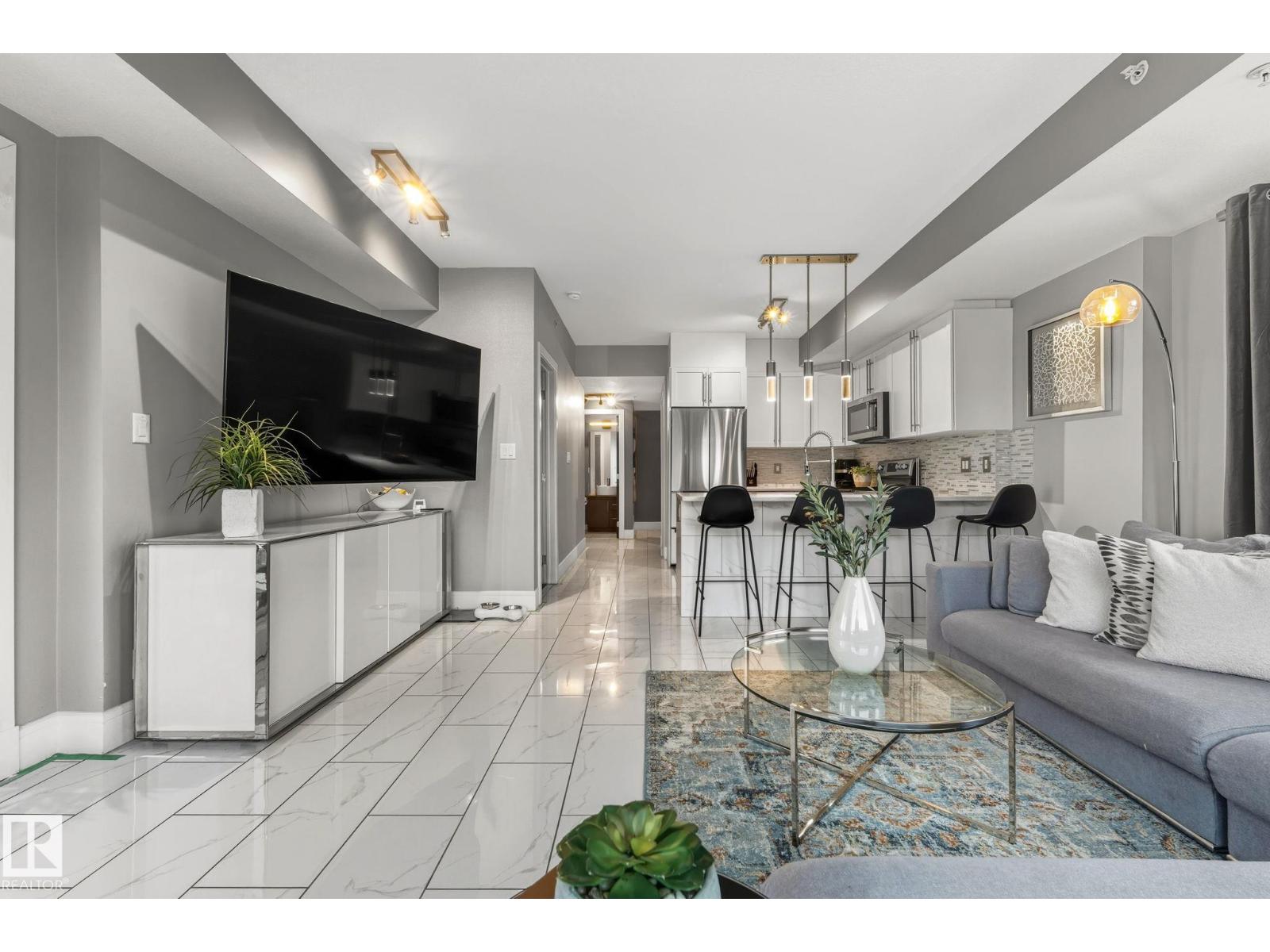 RENOVATED, MODERN condo on the 9 th floor w/ AMAZING VIEWS of Downtown North, East & West. A GENEROUS entryway welcomes you into a CHIC palette w/ 12x24 TILED floors, high profile trim, & UPDATED light & plumbing fixtures. Convenient in suite LAUNDRY room with UPGRADED front load washer/dryer. 2 bedrooms & 2 bathrooms, w/ HARDWOOD floors in each make for an ideal roommate or a work from home scenario. Cook in U-SHAPED, BRIGHT WHITE kitchen featuring STAINLESS appliances, QUARTZ countertops & custom tiled backsplash. The OPEN living room, has LARGE WINDOWS allowing NATURAL LIGHT to flood in. The living area opens onto the COVERED BALCONY w/ a NATURAL GAS hose bib, perfect for a evening BBQs and entertaining. RELAX in the Primary suite w/ a 3 piece ENSUITE w/ GLASS SHOWER. RARE! 2 side by side HEATED, UNDERGROUND parking stalls to keep your cars cozy! A quick LRT trip to the U of A! Located within WALKING distance to restaurants, shopping, parks and trails in the River Valley! (id:63190)
