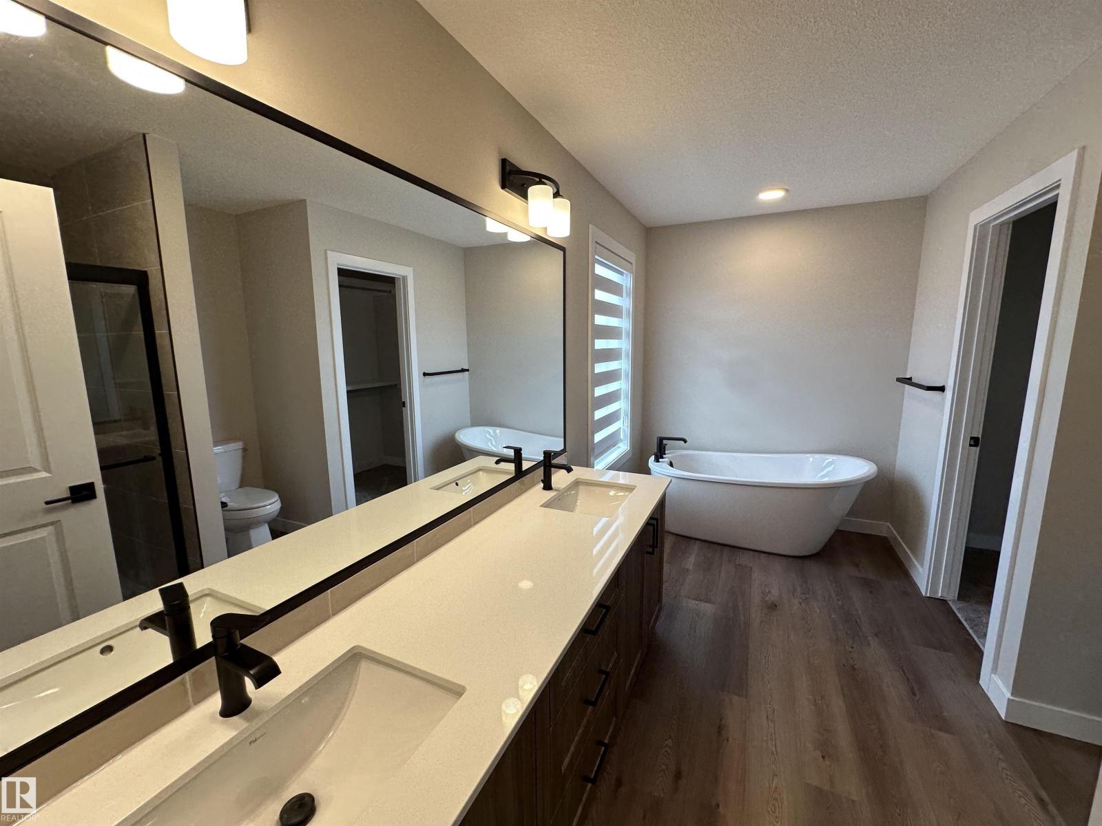IMMEDIATE POSSESSION! This newly built 2-storey home by Alquinn Homes offers a modern open-concept layout with excellent natural light throughout. The kitchen features a spacious island with breakfast bar, ample cabinetry, and a walkthrough pantry that connects to the mudroom with direct access to the garage. The main floor living area includes an electric fireplace for added comfort. Upstairs, a large bonus room, two bedrooms, a 4-piece bath, and a dedicated laundry space with folding counter provide practical everyday function. The primary suite offers two walk-in closets and a 5-piece ensuite with dual sinks, soaker tub, and separate shower. All window coverings included! (id:63190)