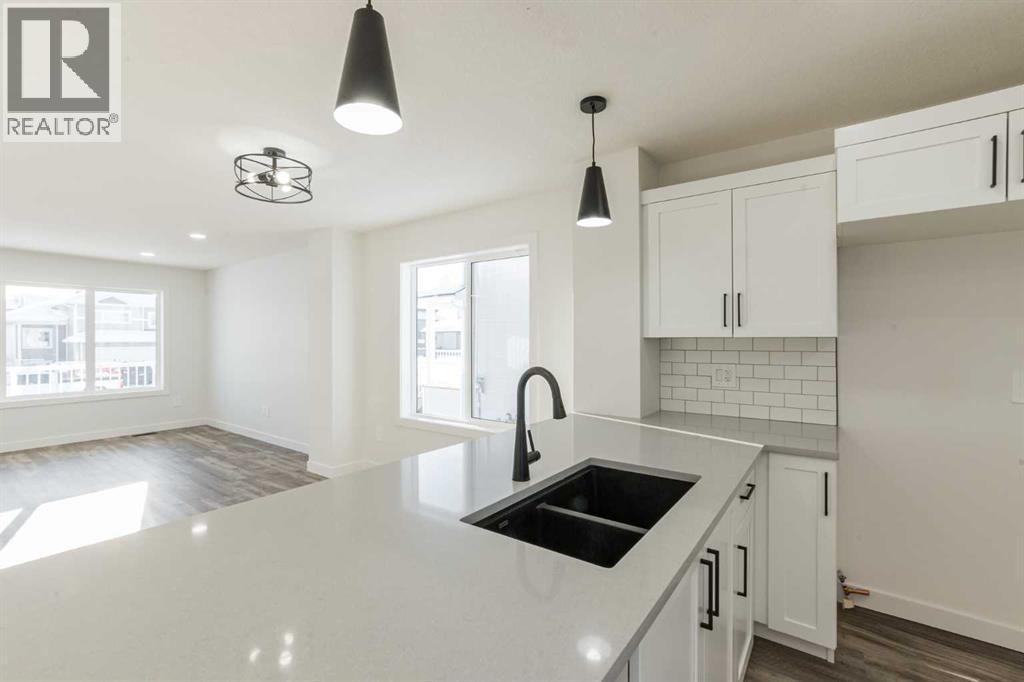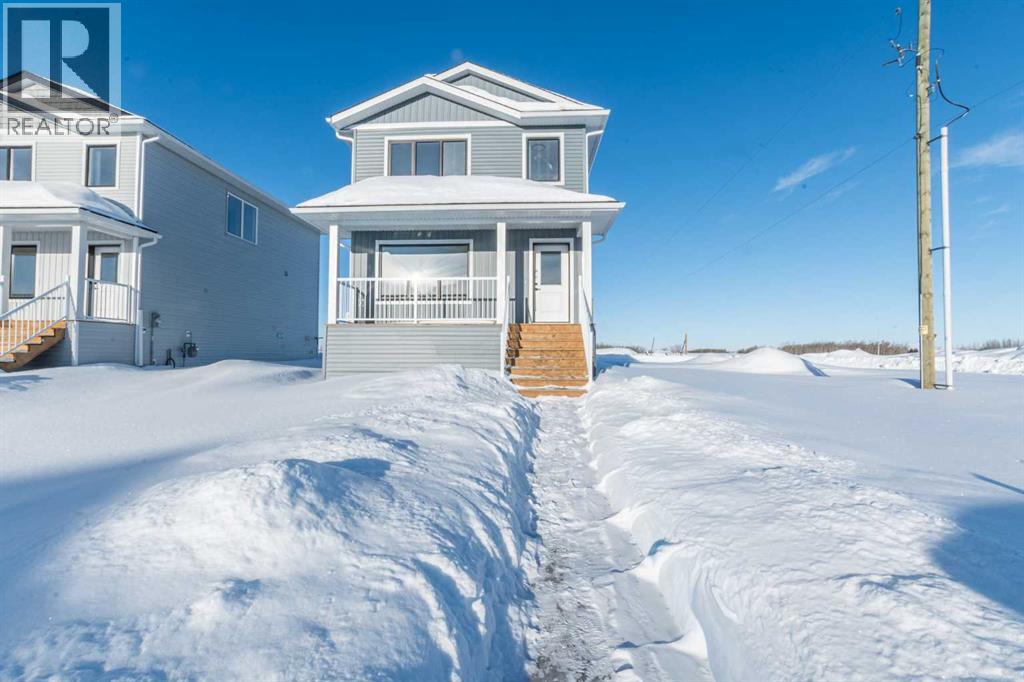 Welcome to the "Hawthorne" Job #677, a beautifully designed home offering an open floor plan with modern finishes throughout. The charming front veranda welcomes you into the front entry and the open concept living, dining and kitchen. The kitchen is the heart of this home boasting quartz countertops, a corner pantry, and a convenient eating bar—perfect for casual dining or entertaining guests. A half bath off the back entry adds everyday functionality. Upstairs, the spacious primary suite offers a private retreat with a walk-in closet and full ensuite. Two additional bedrooms and a full bathroom complete the second level. The basement is a blank canvas with endless potential—create a rec room, family room, or add an extra bedroom and bathroom to suit your needs. Located in one of Grande Prairie's most desirable neighbourhoods; Signature Falls with nearby walking trails, children's parks & green spaces and K-8 school. This home has back alley access to 20'x26' rear concrete parking pad. Ready for immediate possession! (id:63190)