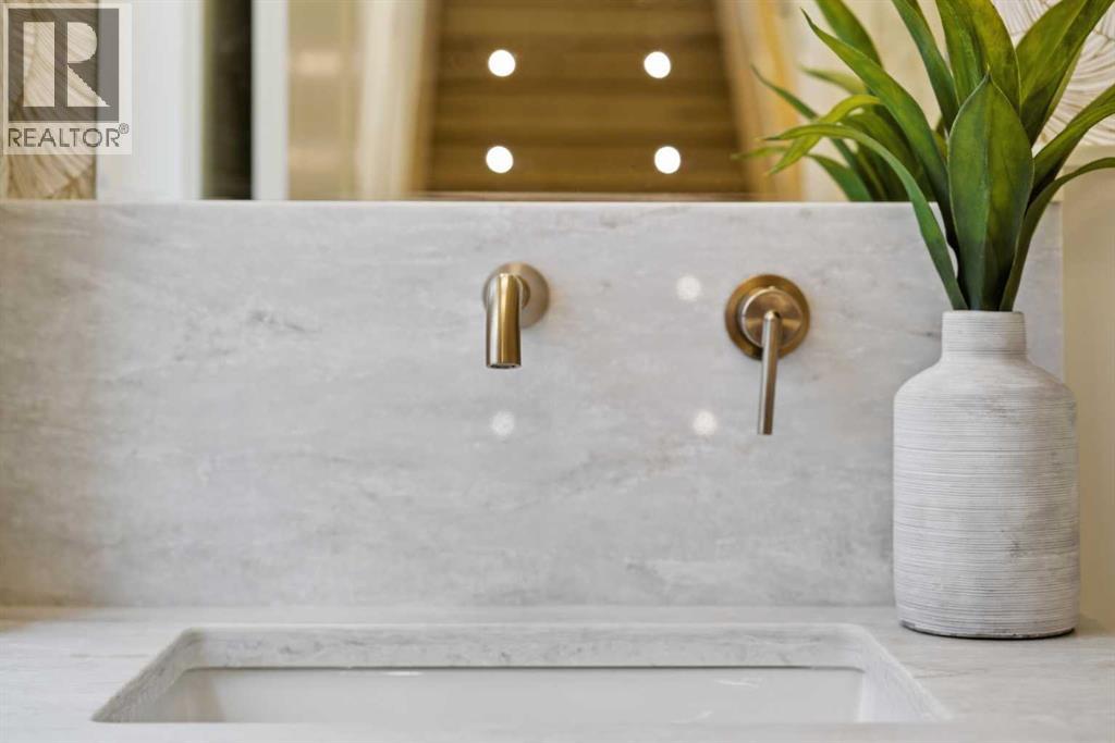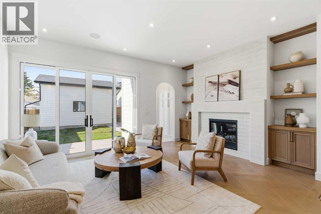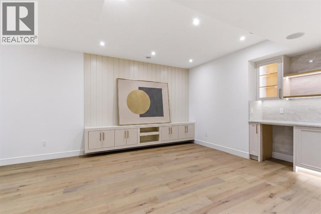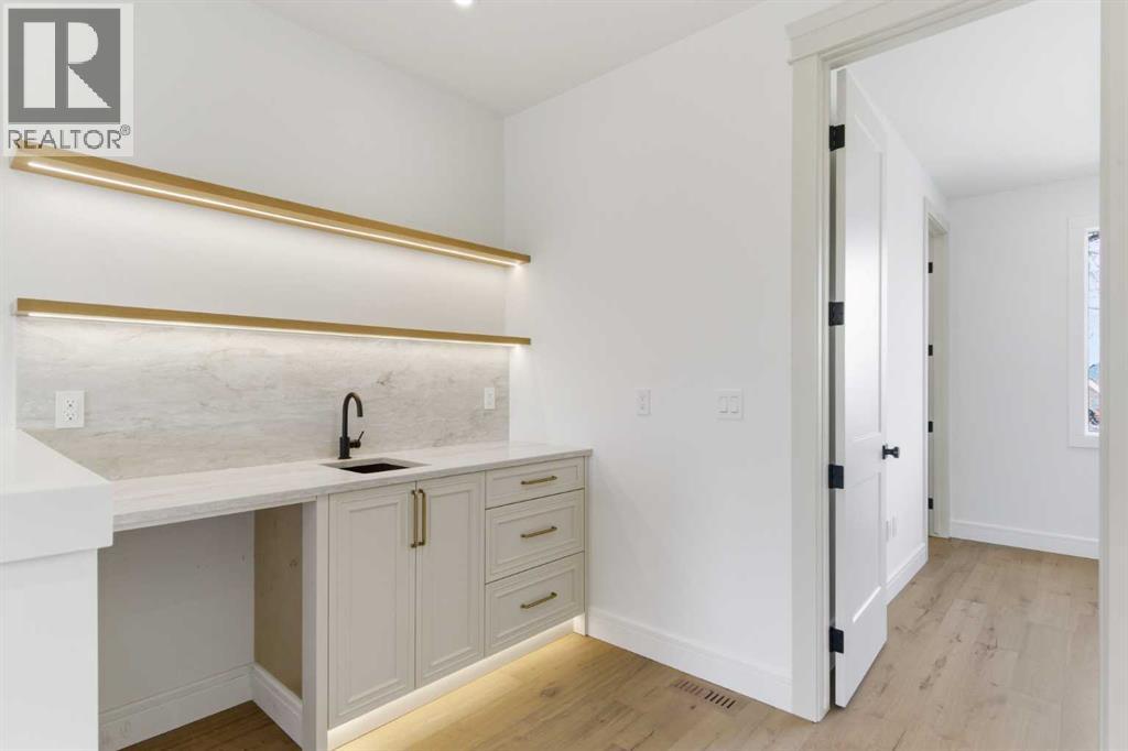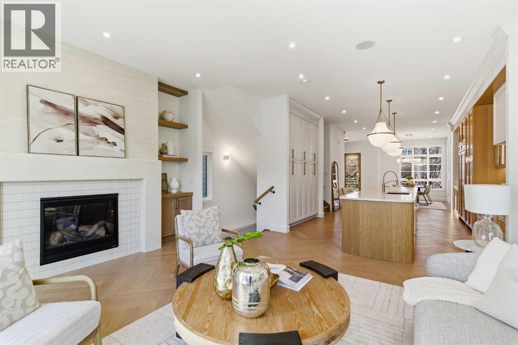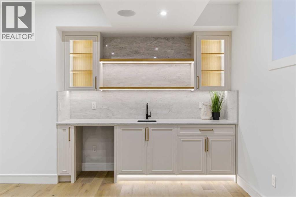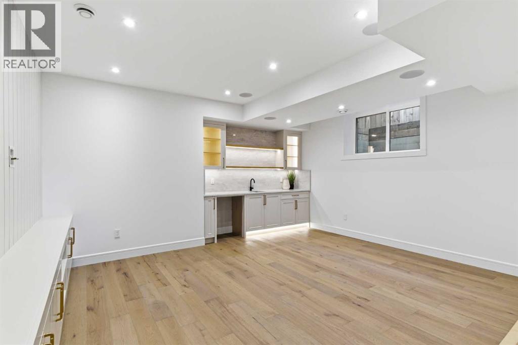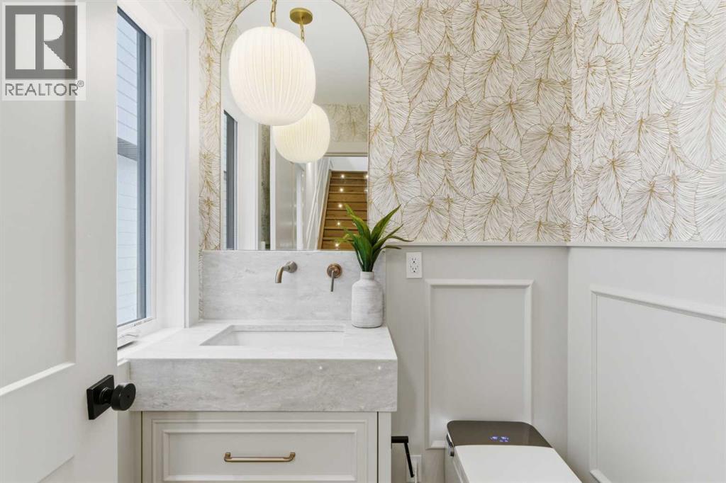 Every inch of this new luxury infill feels like a curated experience in refined design. Thoughtfully styled from the inside out, the home pairs timeless architectural details with contemporary softness—arched windows, warm wood tones, creamy stone finishes, and that quiet kind of luxury you feel the moment you step through the front door.Inside, you're greeted by a central foyer that opens into a bright, airy space with soaring ceilings and oversized windows that let in light from every angle. The dining area connects naturally to a chef-inspired kitchen past a convenient bar area with space for a beverage fridge and custom cabinetry, while the kitchen itself impresses with a full-height quartz backsplash, designer pendants, and upgraded high-end appliances, including a gas range, custom hood fan, and French door fridge/freezer. The spacious living area feels open yet cozy, grounded by a GAS FIREPLACE with built-in shelving on either side and a view of the landscaped yard, with access to the custom mudroom with built-ins, adding the kind of functional polish that makes day-to-day life feel seamless.Upstairs, you’ll find two secondary bedrooms, a bright 4-piece main bath with a fully tiled tub/shower combo and elegant finishes, and a good-sized laundry room with a quartz folding counter and an undermount sink - practical and polished. The primary suite is a true retreat, featuring DUAL WALK-IN CLOSETS for all the space, and a gorgeous ensuite with dual vanity, freestanding soaker tub, and an oversized, fully tiled WALK-IN STEAM SHOWER.The third level is where things really elevate—literally. A bonus lounge area with a WET BAR opens onto a PRIVATE SOUTH-FACING BALCONY, making it a standout space for entertaining or relaxing in the sun. Another large bedroom with a full bathroom rounds out the top floor, offering flexibility for guests, teens, or a second home office.Downstairs, a fully developed basement includes a large rec room, built-in media setup, gym spa ce, a fifth bedroom, and another full bath. There’s also ample storage and mechanicals tucked discreetly away.Located in the heart of Altadore, this home is surrounded by some of Calgary’s most sought-after schools. You're within walking distance to Altadore School (K–6) and Dr. Oakley School (Grades 3–9), with easy access to top private options like Rundle Academy and Lycée Louis Pasteur. Mount Royal University is just a 7-minute drive away, and Central Memorial High School and St. James are close by. Families will also love the proximity to River Park, Sandy Beach, and the Elbow River Pathway system. Marda Loop’s shops, cafés, fitness studios, and amenities are just a few minutes up the road, offering everything you need! (id:63190)