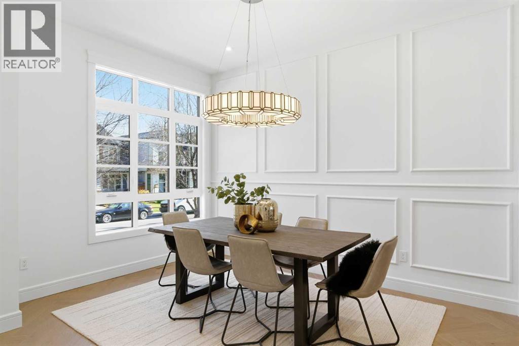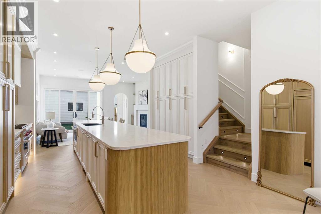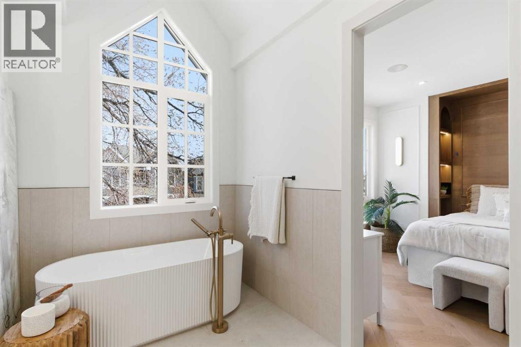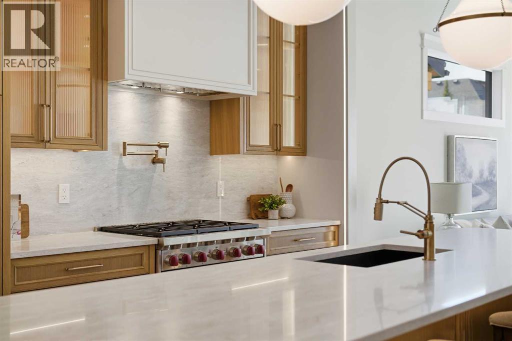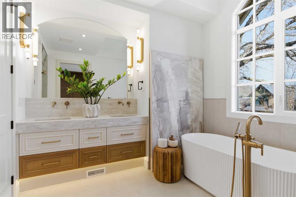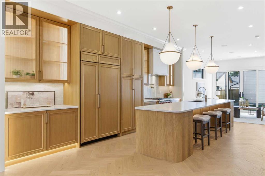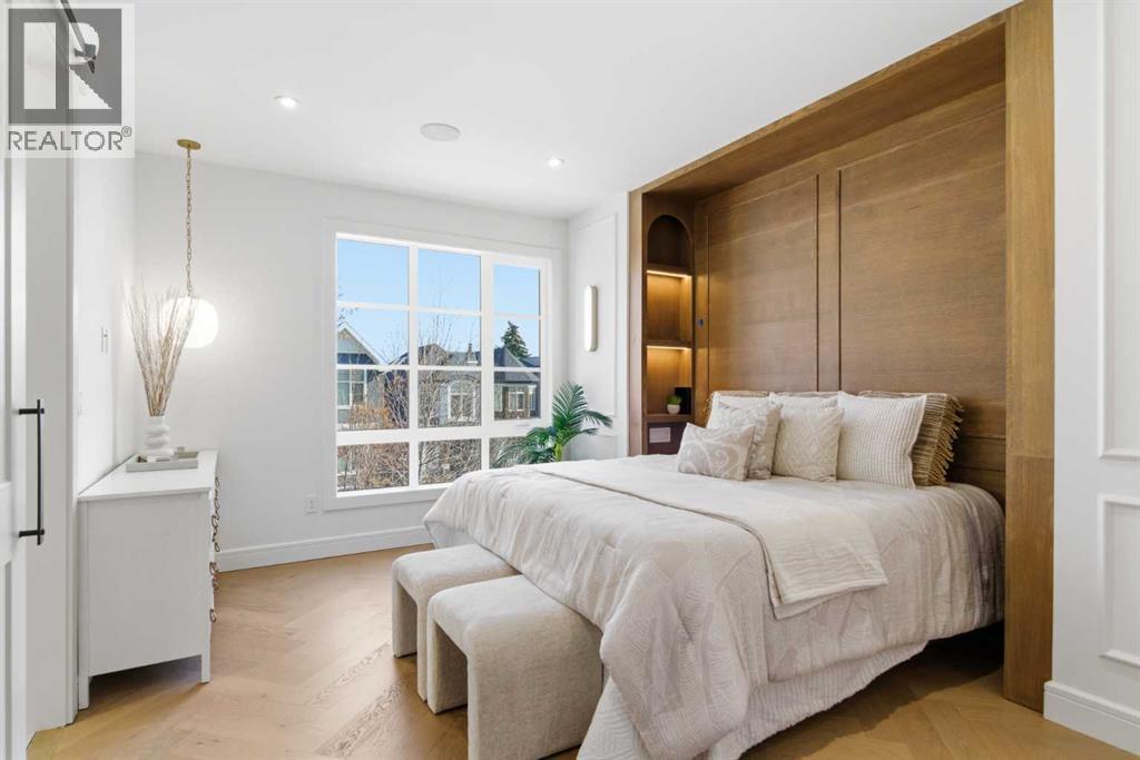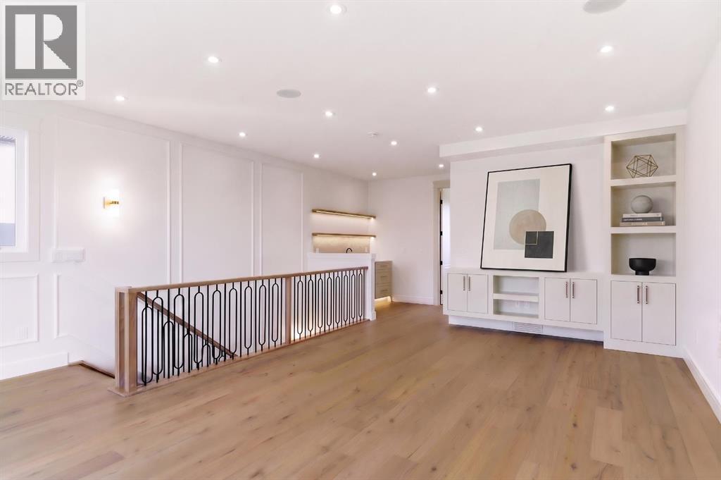 Every inch of this new luxury infill feels like a curated experience in refined design. Thoughtfully styled from the inside out, the home pairs timeless architectural details with contemporary softness—arched windows, warm wood tones, creamy stone finishes, and that quiet kind of luxury you feel the moment you step through the front door.Inside, you're greeted by a central foyer that opens into a bright, airy space with soaring ceilings and oversized windows that let in light from every angle. The dining area connects naturally to a chef-inspired kitchen past a convenient bar area with space for a beverage fridge and custom cabinetry, while the kitchen itself impresses with a full-height quartz backsplash, designer pendants, and upgraded high-end appliances, including a gas range, custom hood fan, and French door fridge/freezer. The spacious living area feels open yet cozy, grounded by a GAS FIREPLACE with built-in shelving on either side and a view of the landscaped yard, with access to the custom mudroom with built-ins, adding the kind of functional polish that makes day-to-day life feel seamless.Upstairs, you’ll find two secondary bedrooms, a bright 4-piece main bath with a fully tiled tub/shower combo and elegant finishes, and a good-sized laundry room with a quartz folding counter and an undermount sink - practical and polished. The primary suite is a true retreat, featuring DUAL WALK-IN CLOSETS for all the space, and a gorgeous ensuite with dual vanity, freestanding soaker tub, and an oversized, fully tiled WALK-IN STEAM SHOWER.The third level is where things really elevate—literally. A bonus lounge area with a WET BAR opens onto a PRIVATE SOUTH-FACING BALCONY, making it a standout space for entertaining or relaxing in the sun. Another large bedroom with a full bathroom rounds out the top floor, offering flexibility for guests, teens, or a second home office.Downstairs, a fully developed basement includes a large rec room, built-in media setup, gym spa ce, a fifth bedroom, and another full bath. There’s also ample storage and mechanicals tucked discreetly away.Located in the heart of Altadore, this home is surrounded by some of Calgary’s most sought-after schools. You're within walking distance to Altadore School (K–6) and Dr. Oakley School (Grades 3–9), with easy access to top private options like Rundle Academy and Lycée Louis Pasteur. Mount Royal University is just a 7-minute drive away, and Central Memorial High School and St. James are close by. Families will also love the proximity to River Park, Sandy Beach, and the Elbow River Pathway system. Marda Loop’s shops, cafés, fitness studios, and amenities are just a few minutes up the road, offering everything you need! (id:63190)