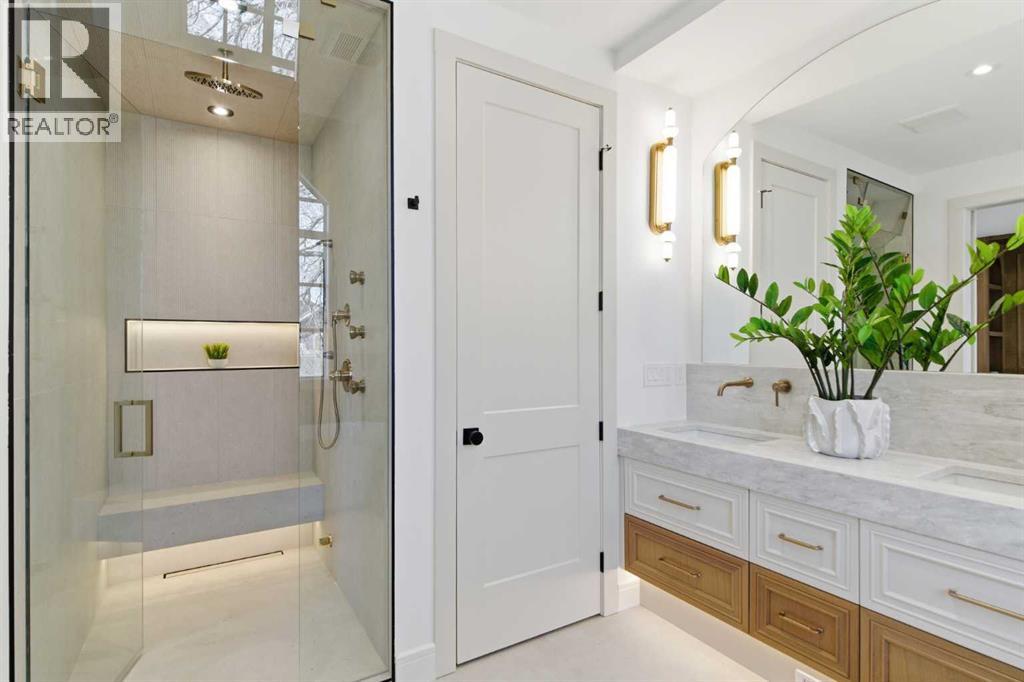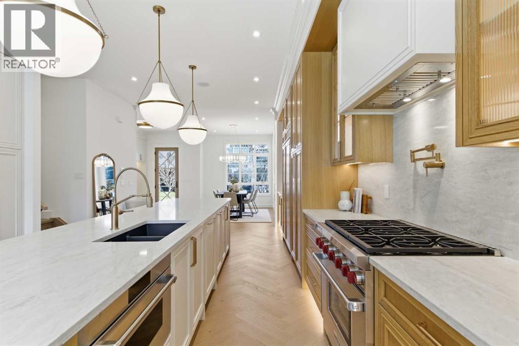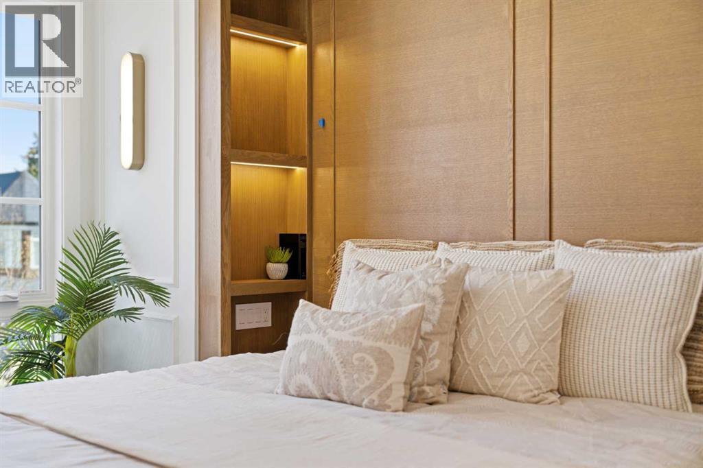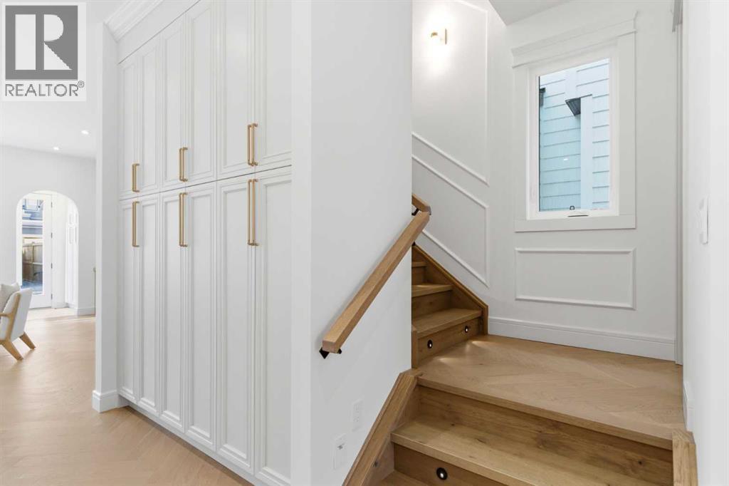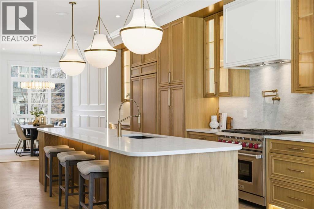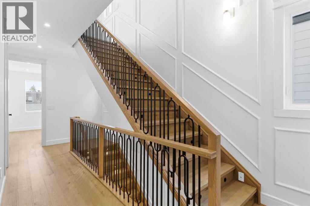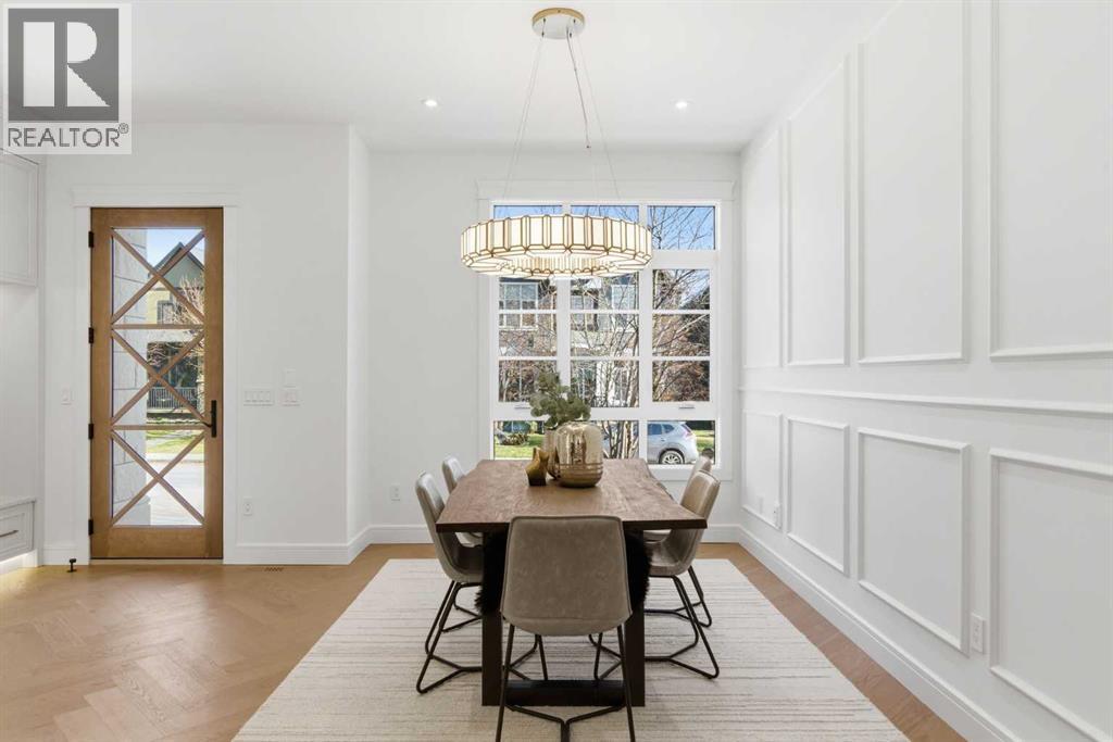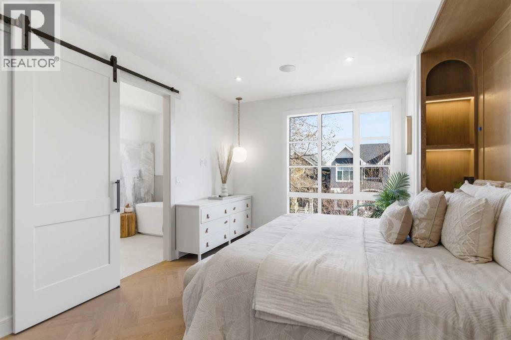 Every inch of this new luxury infill feels like a curated experience in refined design. Thoughtfully styled from the inside out, the home pairs timeless architectural details with contemporary softness—arched windows, warm wood tones, creamy stone finishes, and that quiet kind of luxury you feel the moment you step through the front door.Inside, you're greeted by a central foyer that opens into a bright, airy space with soaring ceilings and oversized windows that let in light from every angle. The dining area connects naturally to a chef-inspired kitchen past a convenient bar area with space for a beverage fridge and custom cabinetry, while the kitchen itself impresses with a full-height quartz backsplash, designer pendants, and upgraded high-end appliances, including a gas range, custom hood fan, and French door fridge/freezer. The spacious living area feels open yet cozy, grounded by a GAS FIREPLACE with built-in shelving on either side and a view of the landscaped yard, with access to the custom mudroom with built-ins, adding the kind of functional polish that makes day-to-day life feel seamless.Upstairs, you’ll find two secondary bedrooms, a bright 4-piece main bath with a fully tiled tub/shower combo and elegant finishes, and a good-sized laundry room with a quartz folding counter and an undermount sink - practical and polished. The primary suite is a true retreat, featuring DUAL WALK-IN CLOSETS for all the space, and a gorgeous ensuite with dual vanity, freestanding soaker tub, and an oversized, fully tiled WALK-IN STEAM SHOWER.The third level is where things really elevate—literally. A bonus lounge area with a WET BAR opens onto a PRIVATE SOUTH-FACING BALCONY, making it a standout space for entertaining or relaxing in the sun. Another large bedroom with a full bathroom rounds out the top floor, offering flexibility for guests, teens, or a second home office.Downstairs, a fully developed basement includes a large rec room, built-in media setup, gym spa ce, a fifth bedroom, and another full bath. There’s also ample storage and mechanicals tucked discreetly away.Located in the heart of Altadore, this home is surrounded by some of Calgary’s most sought-after schools. You're within walking distance to Altadore School (K–6) and Dr. Oakley School (Grades 3–9), with easy access to top private options like Rundle Academy and Lycée Louis Pasteur. Mount Royal University is just a 7-minute drive away, and Central Memorial High School and St. James are close by. Families will also love the proximity to River Park, Sandy Beach, and the Elbow River Pathway system. Marda Loop’s shops, cafés, fitness studios, and amenities are just a few minutes up the road, offering everything you need! (id:63190)