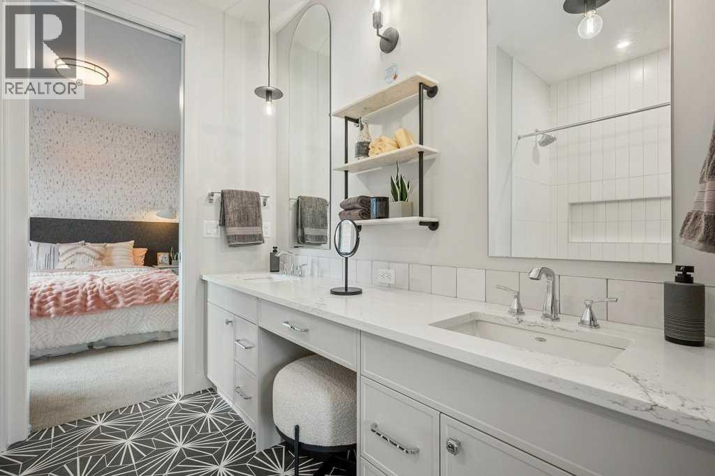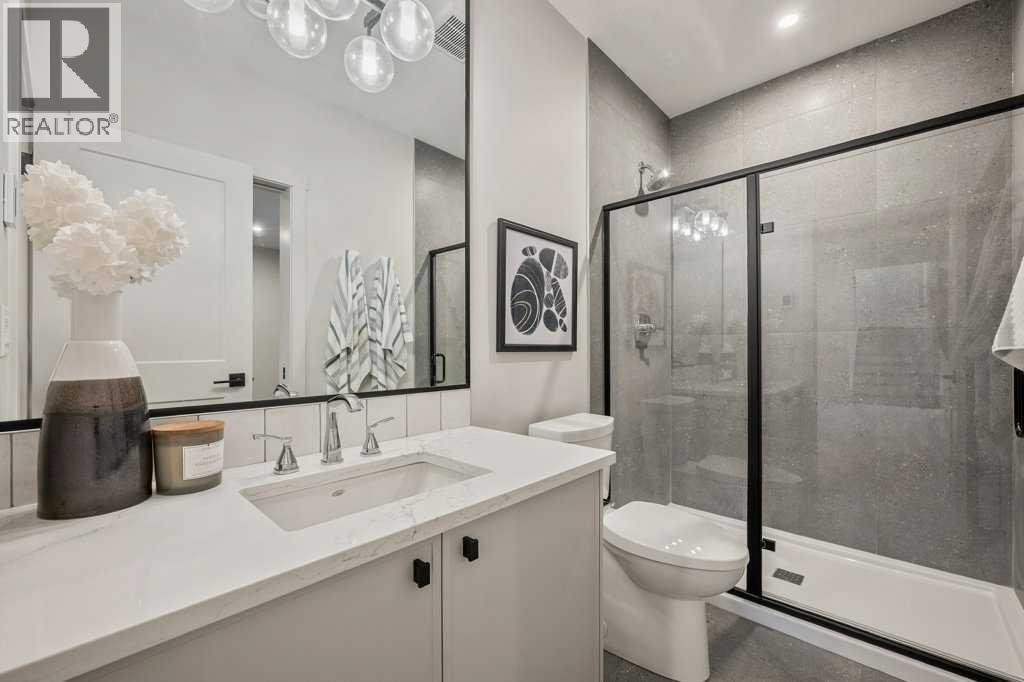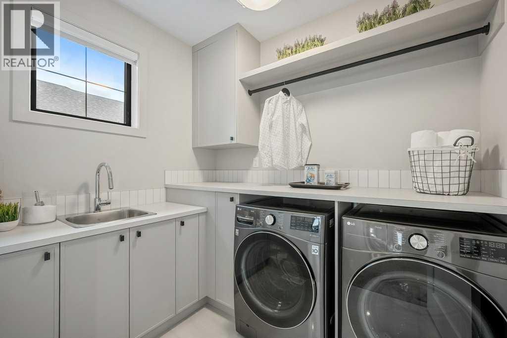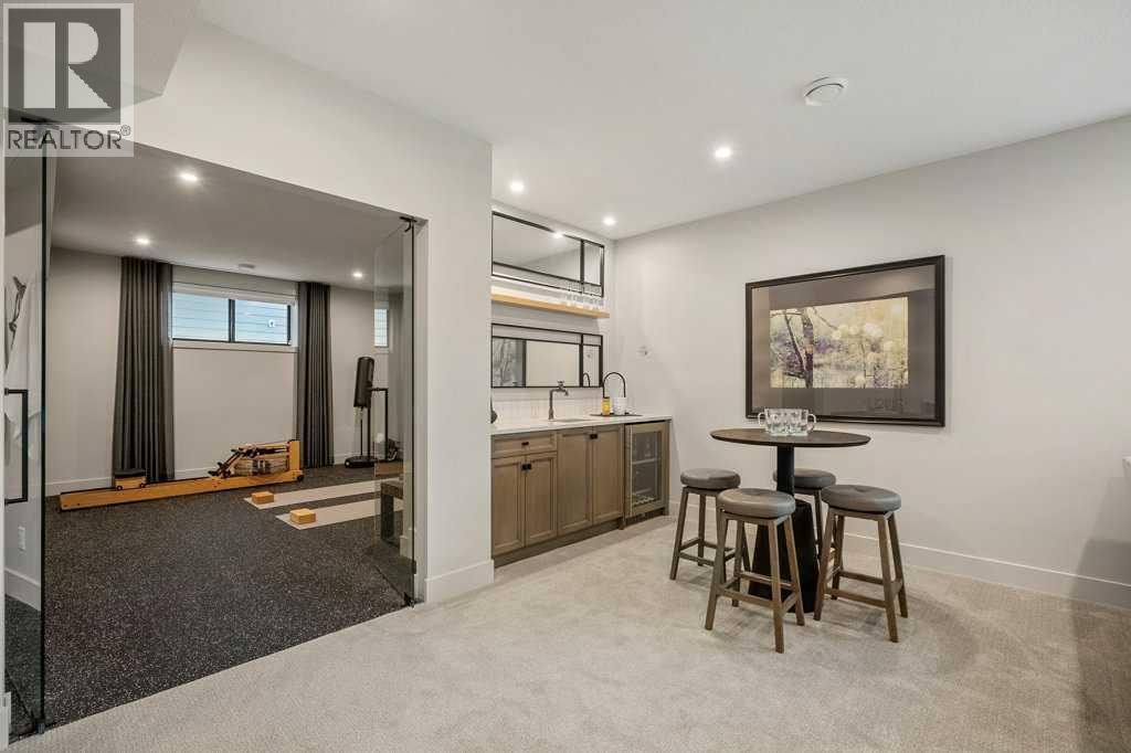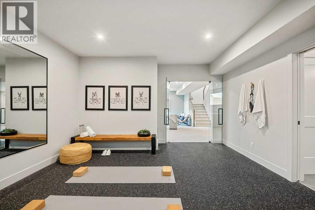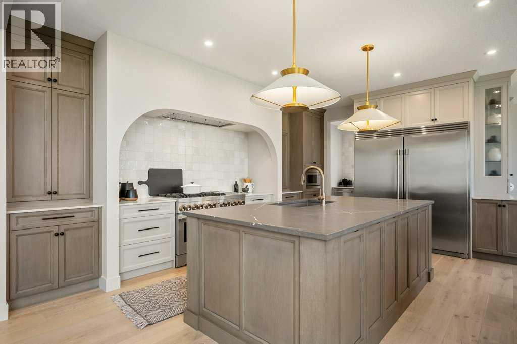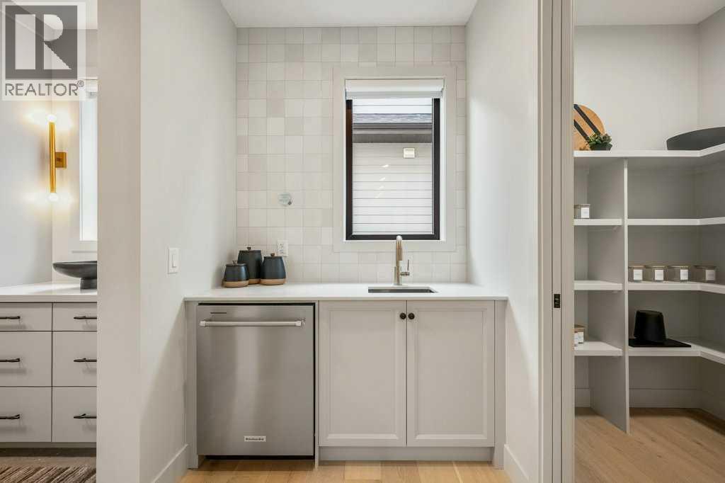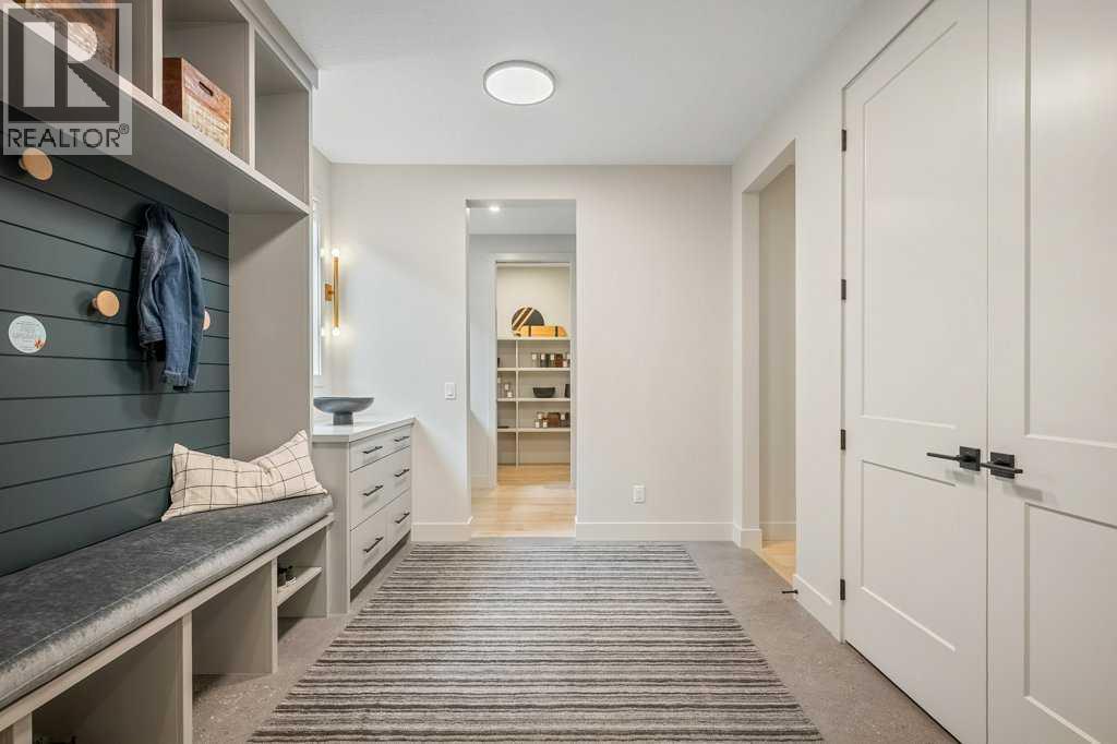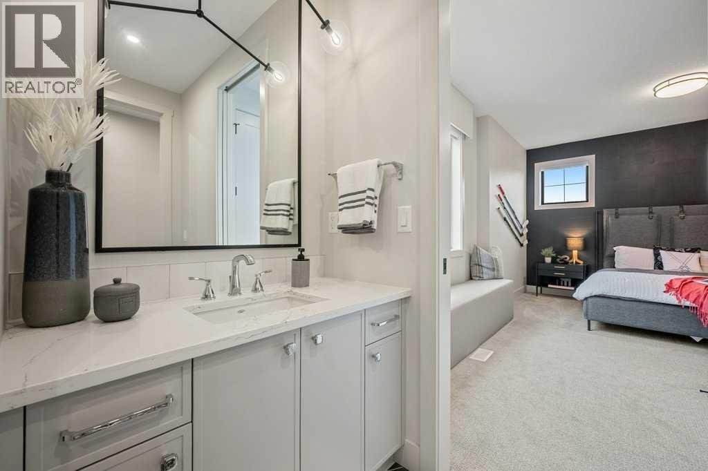 Lake side living at its finest! Presenting the Scarlett Show Home built by Baywest Homes. Ideal for the modern family at just over 5,000 square feet of total developed space, featuring 4 bedrooms, plus generous living and gathering spaces all wrapped in an abundance of style, design and the over-the-top upgrades you would expect in Harmony Estates. Gemstone lighting, a triple front garage, central air, custom window treatments and lighting, a grand open to above, covered deck, 4 full baths, a gym, butlers pantry, generous size mudroom and enclosed front den. Enter into engineered flooring, dual island concept in the kitchen within the themed concept of entertaining and hosting, side by side professional fridge, freezer and gas stove. Built in's throughout the main floor space including the dining area, butlers pantry, den and lower level recreation room. The 'WOW' factor offered from the open to above lifestyle room with its focal 2 story fireplace offers natural light throughout this space. The family convenience of a spacious mudroom located off the butlers pantry, secondary pantry with a corridor hall connecting the front foyer hidden behind the stunning main floor design. An upper floor created for personal space, but welcoming to all. The 3 upper bedrooms situated to the front of the home smartly designed with a 5-peice Jack and Jill en-suite opposite the 3rd bedroom with its own private 4-peice en-suite bath. The laundry area is located just off the bridge access to this level and rests beside the vaulted bonus room. Dual door access to the rear primary bedroom overlooking the green space and walking paths with heated floors in the 5-piece en-suite bath, a full size shower, soaker tub, full width vanity, his and her sinks, an abundance of storage giving off the 5 star hotel vibes from the hanging mirrors to the faucets and fixtures. A lower level for room to relax and gather with a recreation room, wet bar, 5th bedroom and a pocket door to the 4-piece lower ba th with heated floors from the curated gym space. Your outdoor space has a covered deck with access to the walking paths, a short trip to current and future local amenities as well as the beach club, Launchpad and Mickelson National Golf Course. (id:63190)