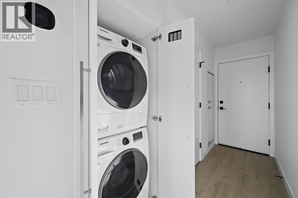 Welcome to Plaza at West District. Discover refined urban living in this beautifully designed 2-bedroom, 1-bathroom residence by TRUMAN, located within an award-winning concrete building in Calgary’s vibrant West District community. Thoughtfully planned and filled with natural light, this home offers modern comfort and exceptional walkability.Inside, the open-concept layout showcases contemporary finishes and efficient design. The bright living and dining area flows seamlessly into a stylish kitchen featuring premium appliances, sleek cabinetry, and a functional layout ideal for everyday living or entertaining. Large south-facing windows flood the space with sunlight throughout the day, creating a warm and inviting atmosphere.Step onto your sunny south-facing balcony—perfect for morning coffee, afternoon lounging, or soaking up the natural light in every season.Both bedrooms offer comfortable, private retreats, while the well-appointed bathroom blends modern style with practical functionality.Additional features include a titled underground parking stall, providing secure and convenient access year-round.Residents of Plaza enjoy access to exceptional amenities, including a fully equipped fitness centre and an inviting owners’ lounge—ideal for relaxing, working, or connecting with neighbours. Located just steps from boutique shops, local services, and the lively energy of West District, this home places you in one of Calgary’s most sought-after urban destinations.Live Better. Live TRUMAN. (id:63190)