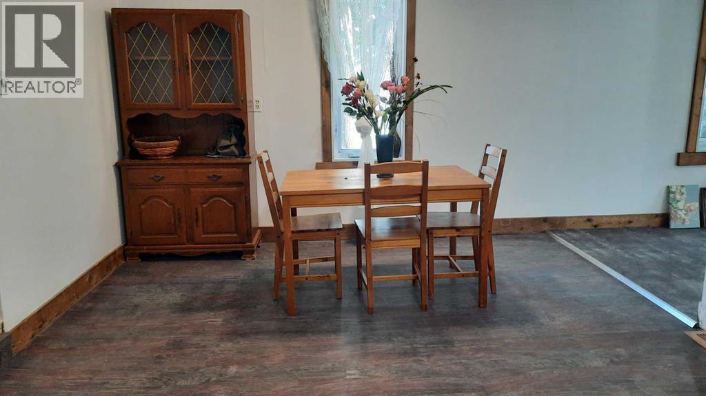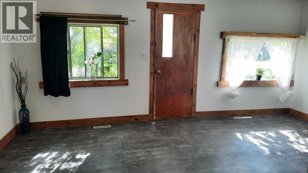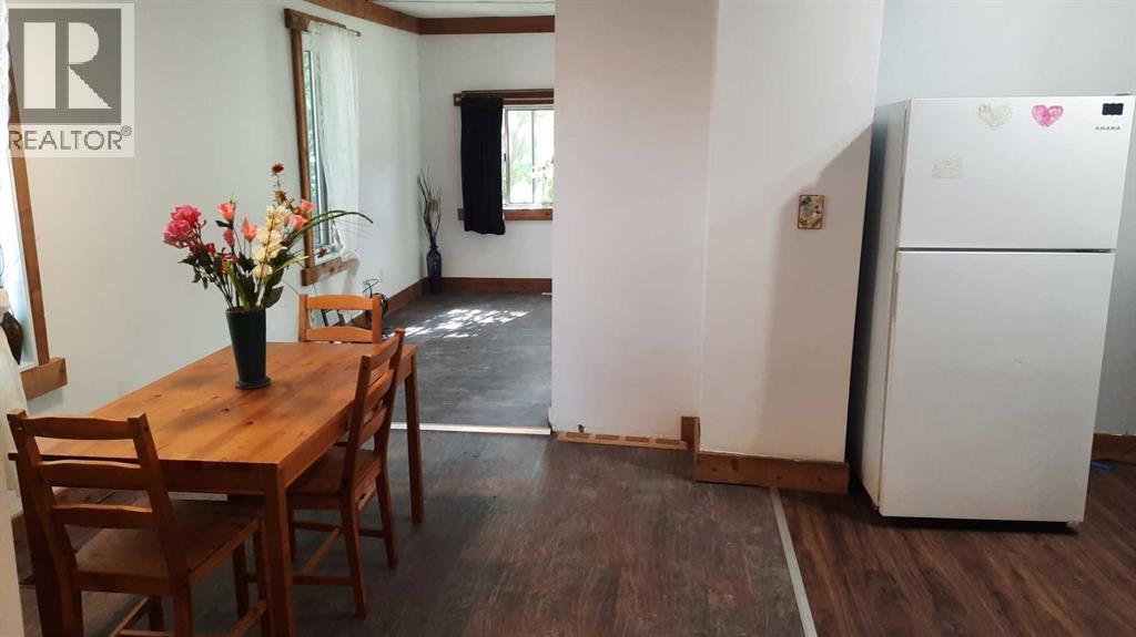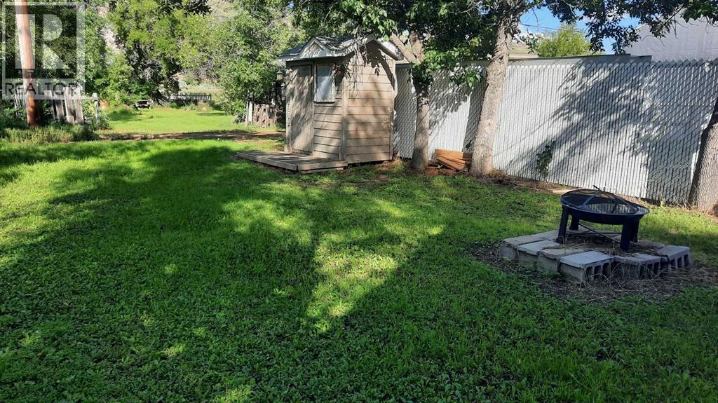 Good Vibes in East Coulee ! This cottage style home features Living room with good Art and furniture placement, open dining room so friends can gather. Kitchen with ample space. 4 piece bathroom is almost complete but functioning, and a large Bedroom that could accommodate multiple beds for a bunk room style or spacious enough for all your stuff. There is a nook that would be a good fit for laundry. New 100AMp Electrical panel, new flooring, Fresh paint and ready for new owners. With a fenced front yard and a landscaped back yard with shed and fire pit. East coulee has a potable water station at the entrance. Short walk to Community Hall, playground and Buffalo Trading post. (id:63190)