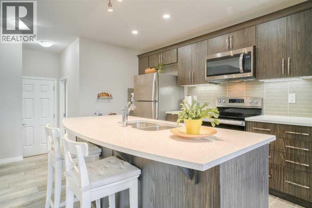 NO CONDO FEES! Welcome to this beautiful End-Unit townhome in the flourishing community of Yorkville. Step inside and be greeted by the bright, open-concept main floor featuring a modern kitchen and a harmonious living room and dining area, with plenty of modern cabinets. The upgraded quartz countertops and stainless steel appliances make this kitchen a dream for the home chef. The upper level offers plenty of space with 3 good-sized bedrooms, a cozy family room, and a laundry room. A 5-piece en-suite bathroom and another 4-piece bathroom on this level provide great convenience to the family. With main windows facing either east or west, this house is completely cherished with refreshing morning sun and soothing afternoon light. A double attached garage is conveniently accessed from the back alley. A vibrant playground is located just across the road. Close to all amenities, shopping, parks, and restaurants, and quick access to the ring road and other major roadways. Book a showing today! (id:63190)