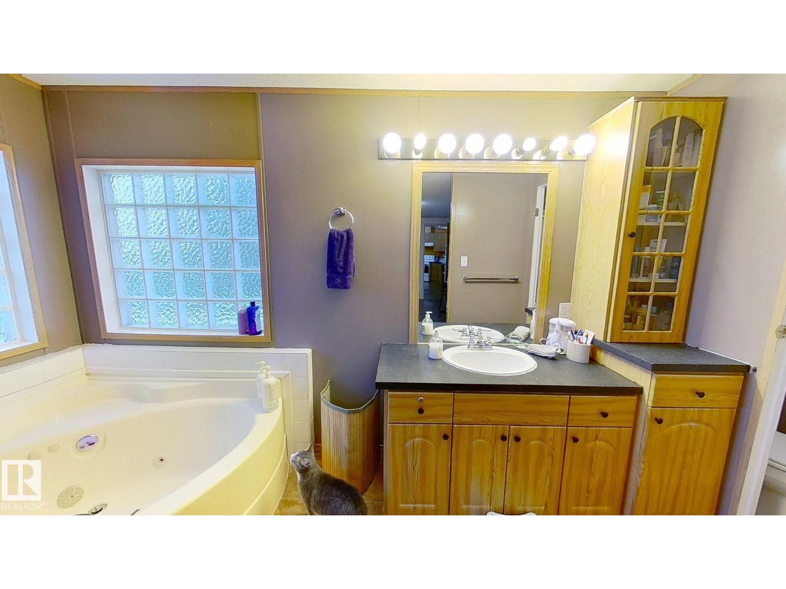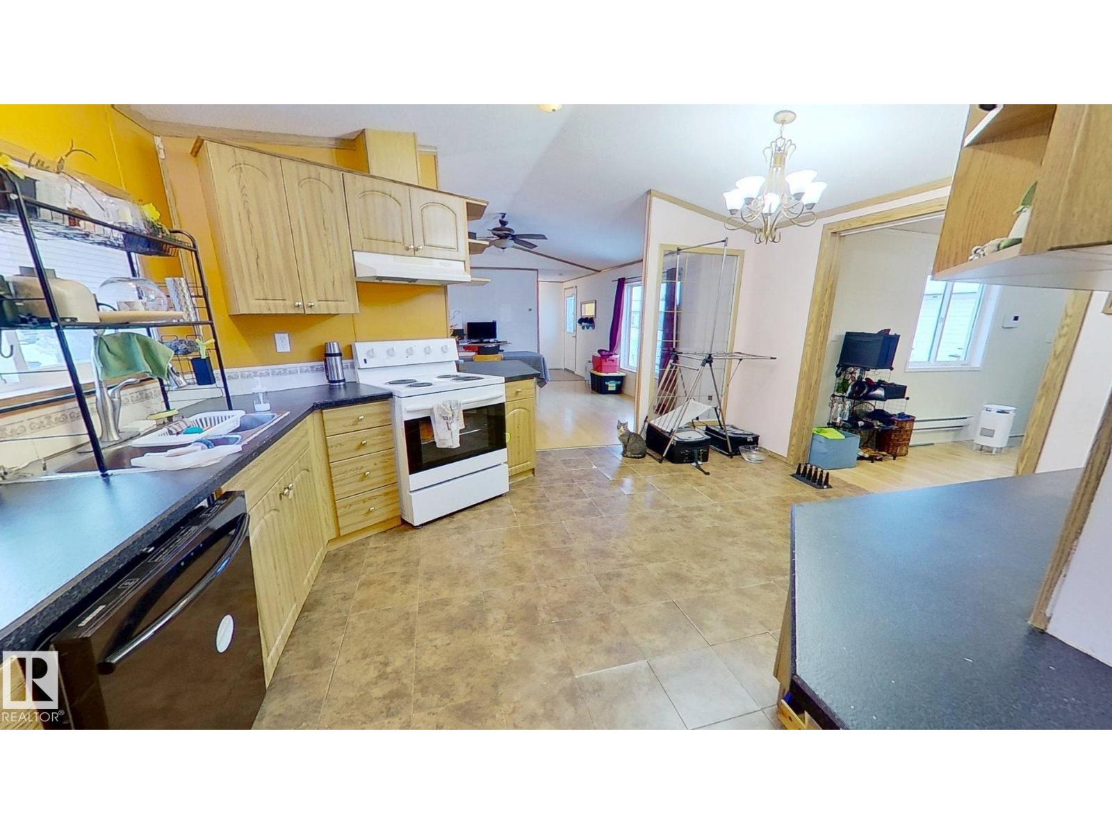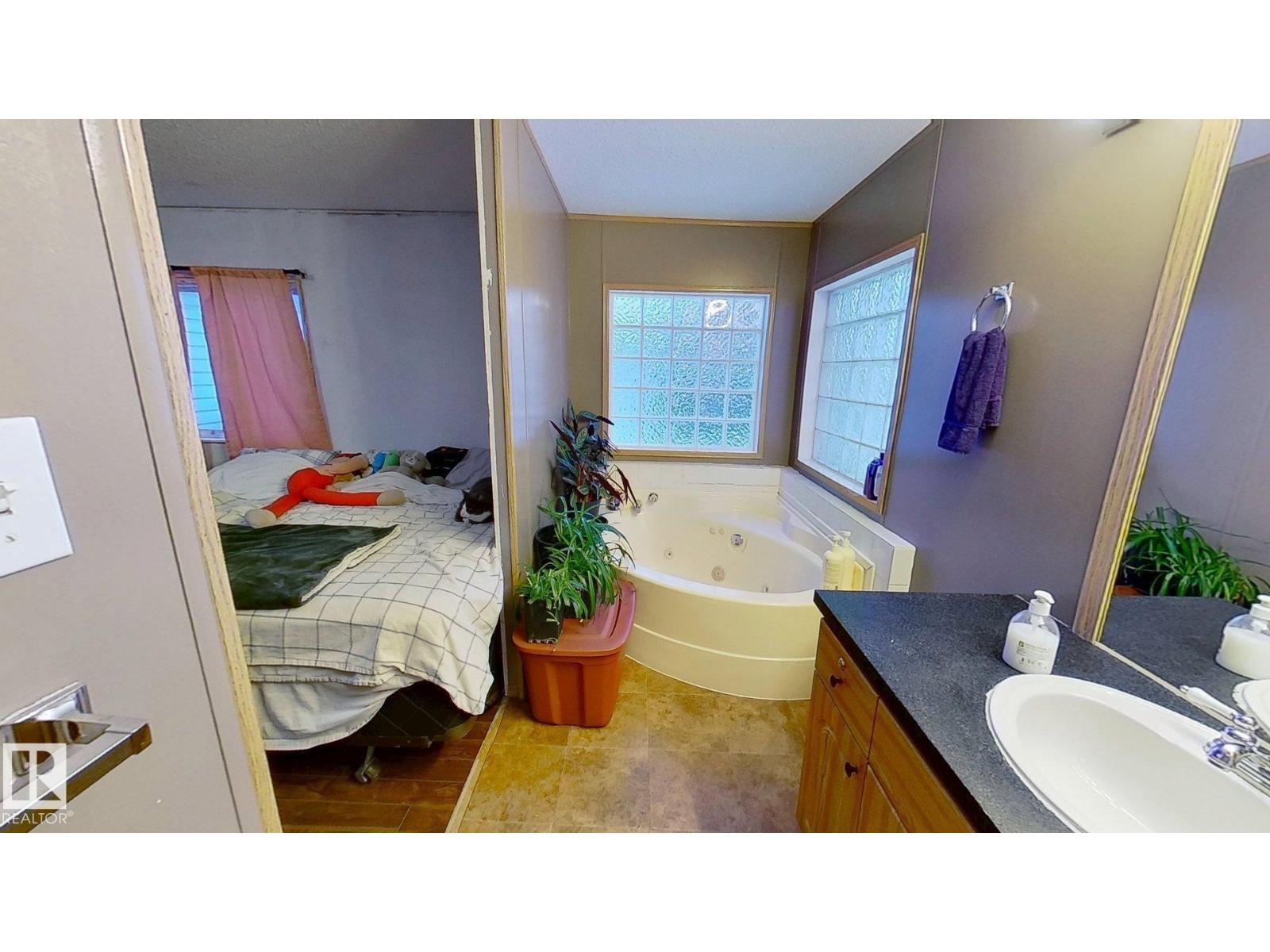 Welcome to this 3-bed 2-bath, 1650 sq ft mobile home in WVV. Bring your ideas, pick your colours, and make it your own! Refurbish on your own timeline - finish the cosmetic repairs with peace of mind knowing many major items have been updated: fridge 09/21, heat trace repairs 01/22, shingles 06/23, furnace, stack, thermostat, and hwt 12/24, deck upgrades 08/25, primer on most walls 10/25, range 01/26. Living/entrance addition and powered shed 2012. Fully fenced lot, mature trees, flower beds, 2 veg gardens (mature chives, oregano, and parsley), and young raspberry bushes. This lot backs out on to a treed green space and is near a bus stop. WVV has 2 playgrounds, a pond that attracts migratory birds, ice rink, a gym, gas station, a pharmacy, daycare facility, pub, and RV storage. Schools nearby and quick access to the Anthony Henday and Hwy 16. Windows(including skylights) and doors(interior and exterior) need replacing but are functional. Jetted tub may need new motor, and needs to be reinsulated. (id:63190)