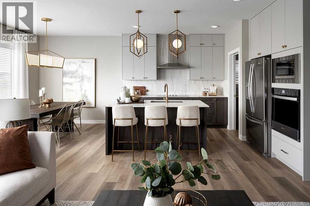 The Solara by Shane Homes – a pre-construction, customizable home in the desirable community of Ambleton. This 3-bed, 3-bath home sits on an extra-wide lot. The upgraded kitchen includes a chimney hood fan, built-in microwave, gas cooktop, and a spice kitchen for added convenience. Enjoy a main floor full bath, 9’ basement foundation, and roughed-ins for potential future development flexibility. Personalize your finishes and design selections to suit your lifestyle. Located in a community surrounded by pathways, parks, and planned amenities. Photos are representative and may show optional features. (id:63190)