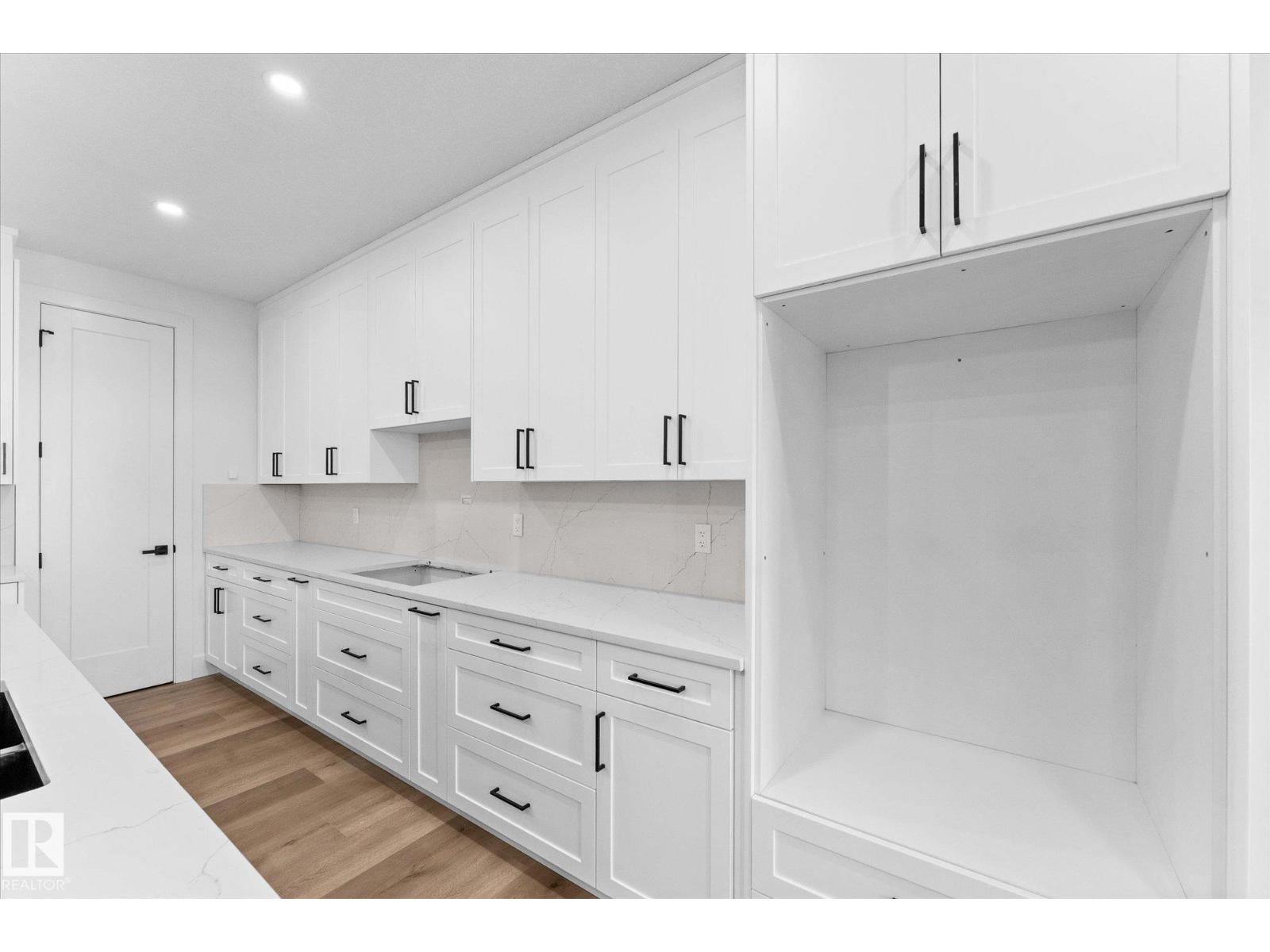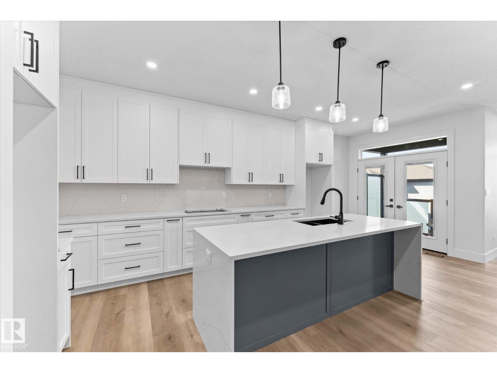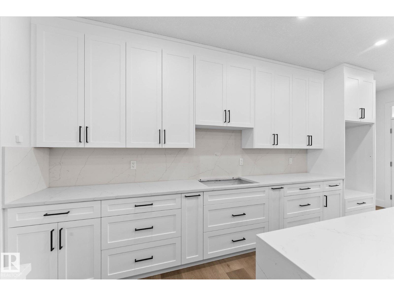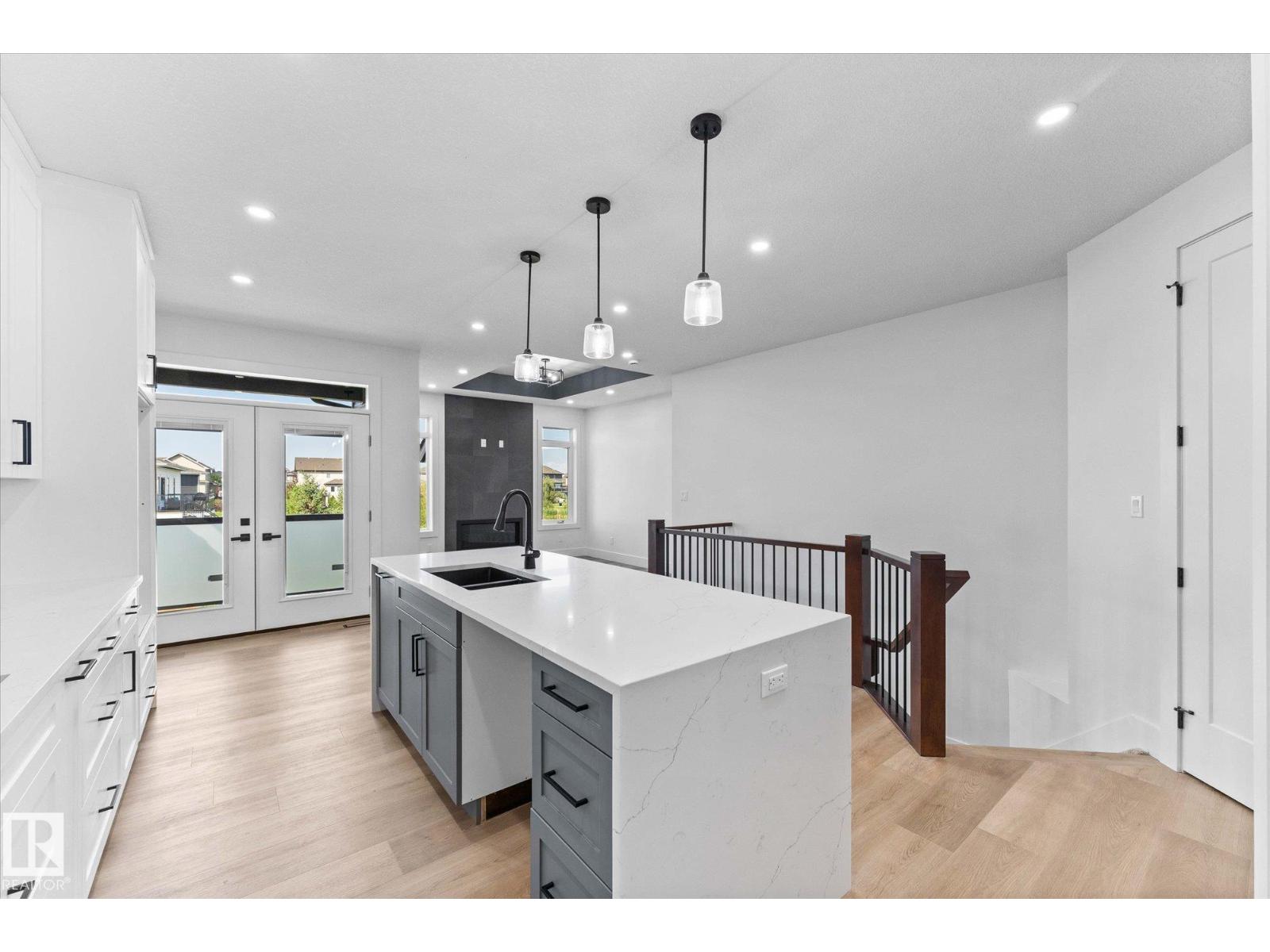 Stunning Walkout Bungalow Backing onto the Pond in The Meadows! This 1527 sq ft home offers a rare combination of serene views, functional design, and exceptional upgrades. The main floor features 9' ceilings and an open layout with 3 bedrooms, including a spacious primary suite with a walk-in closet and a luxurious 5-piece ensuite. The kitchen is a chef’s dream—equipped with quartz countertops, dual pantries, built-in appliances, and a large central island. The fully finished walkout basement adds two more generously sized bedrooms, a large family/rec room, a 4-piece bathroom, and an expansive mechanical/storage room. From the basement, step out to the stamped concrete patio and enjoy your private backyard oasis with views of the peaceful pond. The massive triple attached garage is a standout, offering high ceilings, a floor drain, and more than enough room for vehicles, tools, and toys. This is a rare opportunity to own a walkout bungalow in a premium Fort Saskatchewan location. (id:63190)