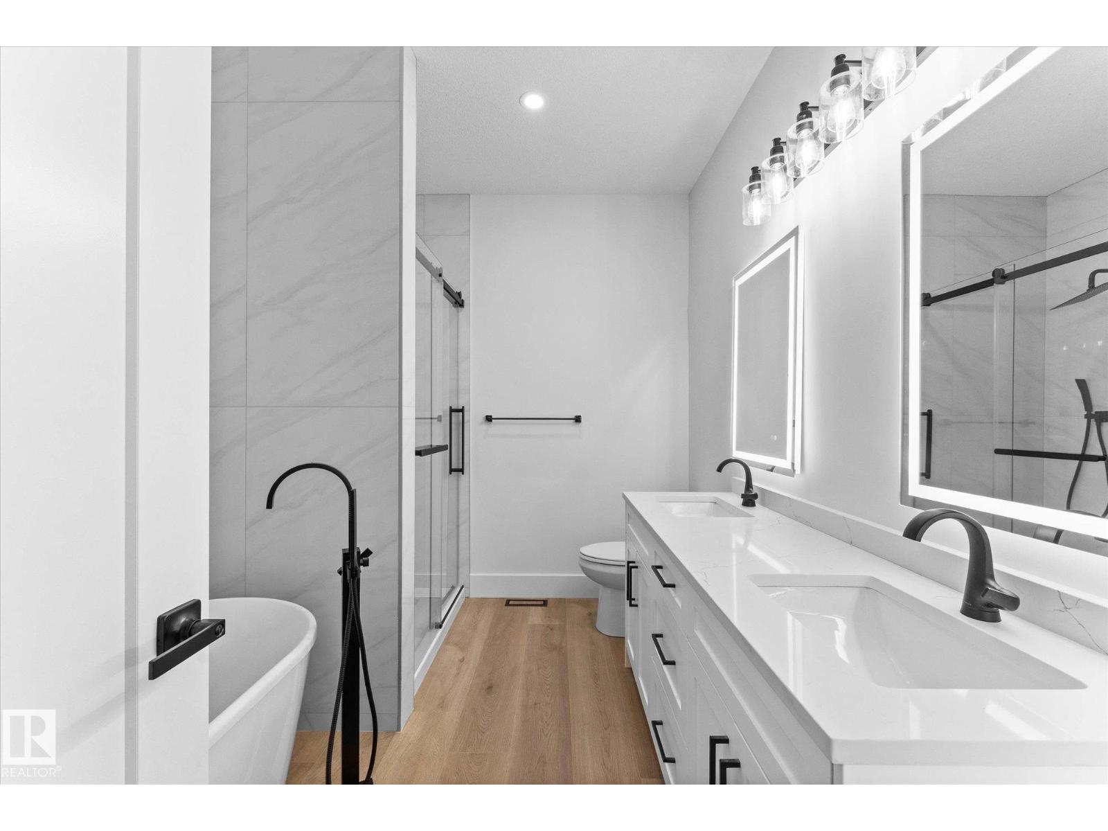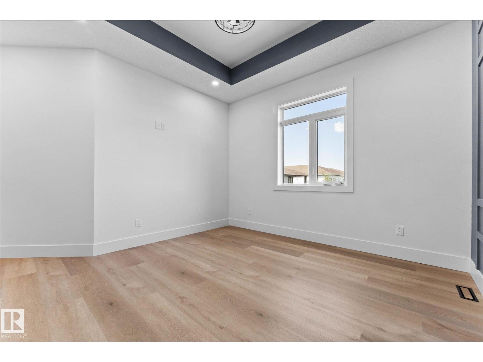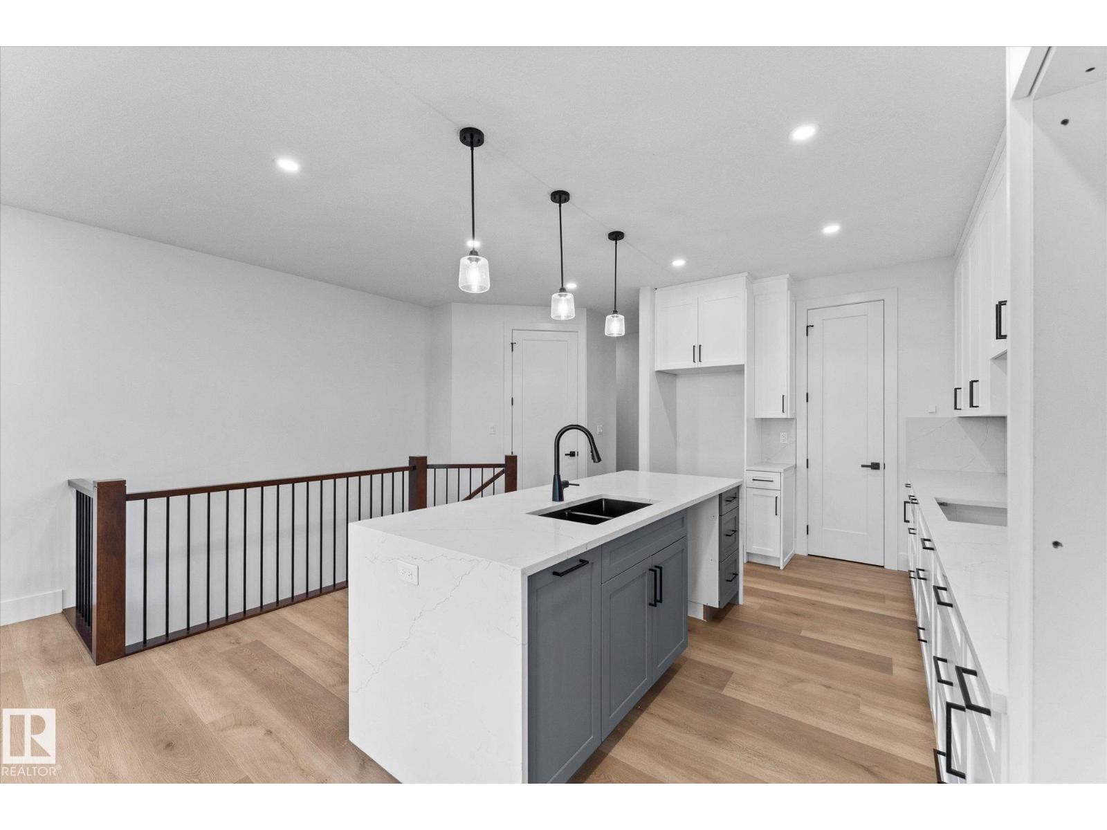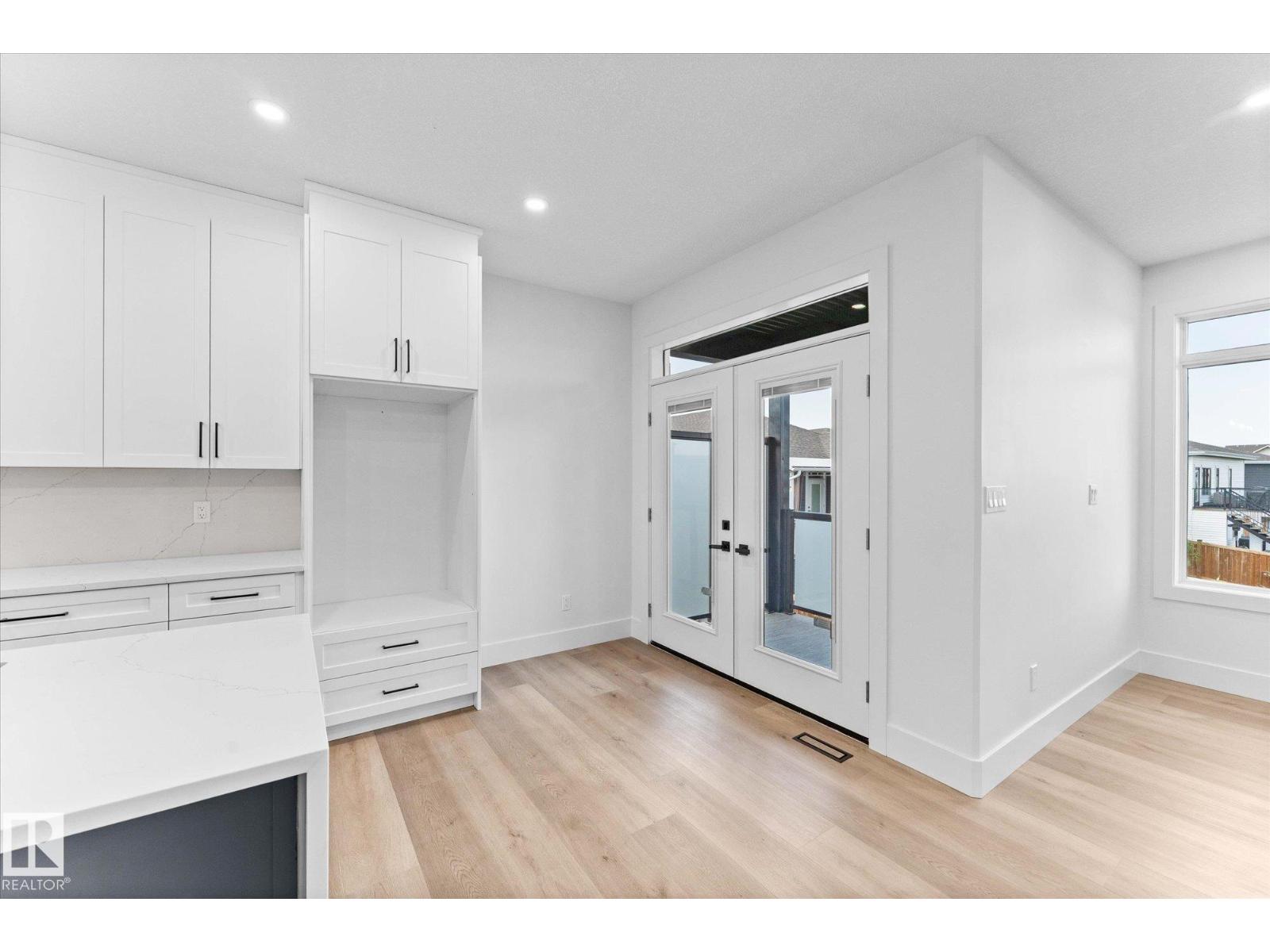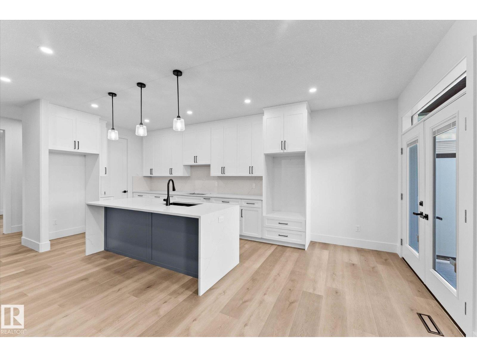 Stunning Walkout Bungalow Backing onto the Pond in The Meadows! This 1527 sq ft home offers a rare combination of serene views, functional design, and exceptional upgrades. The main floor features 9' ceilings and an open layout with 3 bedrooms, including a spacious primary suite with a walk-in closet and a luxurious 5-piece ensuite. The kitchen is a chef’s dream—equipped with quartz countertops, dual pantries, built-in appliances, and a large central island. The fully finished walkout basement adds two more generously sized bedrooms, a large family/rec room, a 4-piece bathroom, and an expansive mechanical/storage room. From the basement, step out to the stamped concrete patio and enjoy your private backyard oasis with views of the peaceful pond. The massive triple attached garage is a standout, offering high ceilings, a floor drain, and more than enough room for vehicles, tools, and toys. This is a rare opportunity to own a walkout bungalow in a premium Fort Saskatchewan location. (id:63190)