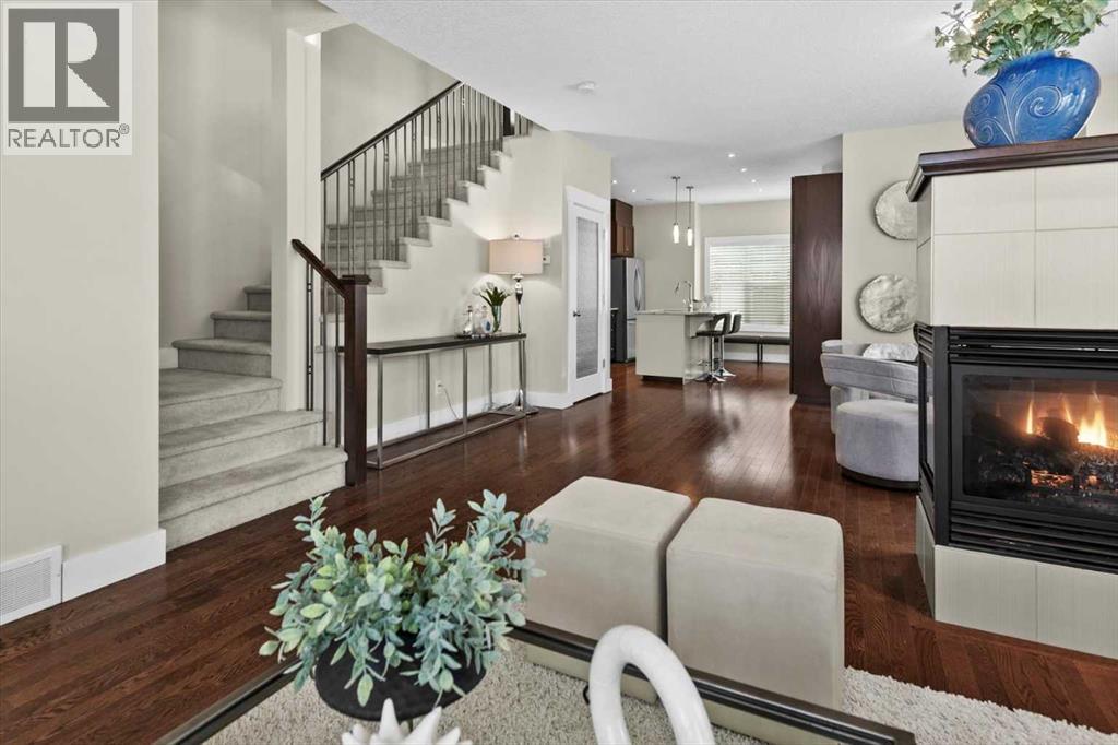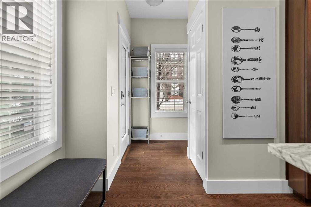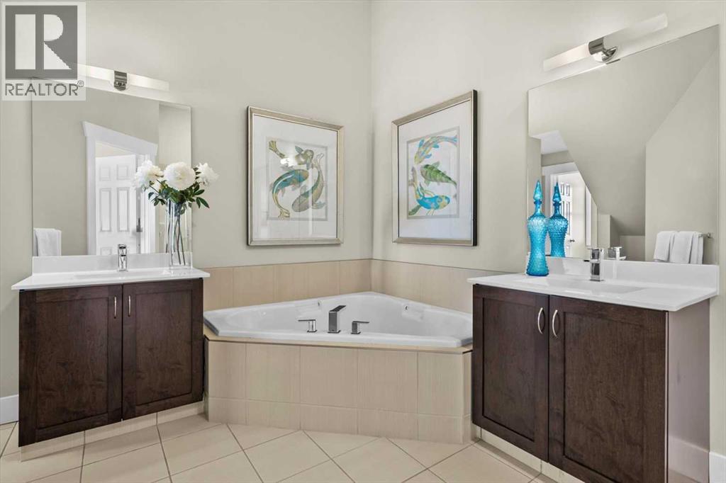 Architecturally refined and timelessly designed, this 3 storey END UNIT townhouse presents a commanding presence within the heart of Garrison Green, offering nearly 3,000 sq. ft. of thoughtfully developed living space and a layout designed to support both everyday life and elevated entertaining. A charming brick exterior creates an enduring first impression while the end unit positioning allows for additional windows and enhanced natural light throughout. Hardwood floors, high ceilings and a neutral colour palette set a calm and cohesive tone across the main level, where an open floor plan encourages effortless flow between living, dining and kitchen spaces. A 3 sided fireplace anchors the main floor, inviting relaxation in the living room while simultaneously creating a warm, intimate atmosphere in the dining area ideal for hosting gatherings. Culinary creativity is inspired in the beautifully appointed kitchen featuring quartz countertops, a gas stove for precise cooking control, stainless steel appliances, full height cabinetry for expanded storage, a wall pantry for organization and a centre island with breakfast bar seating that naturally becomes a social hub. A rear mudroom provides a functional transition from the outdoors, easily concealing daily clutter and offering convenient access to the powder room for quick cleanups after arrivals. Outdoor enjoyment continues on the rear deck equipped with a gas line, simplifying summer barbecues and casual evenings outside. An iron-railed staircase leads to the second level where a private bedroom layout places sleeping quarters on opposite sides, enhancing privacy and flexibility for families or guests. 2 extremely generously sized bedrooms each benefit from corner windows that draw in abundant daylight, while a centrally located laundry area eliminates the need to carry loads between floors. A full 4-piece bathroom completes this level with ease and practicality. The entire 3rd floor is dedicated to an exceptional p rimary retreat, creating a true owner’s sanctuary defined by privacy and scale. Vaulted ceilings and additional windows amplify the sense of space, while the indulgent ensuite offers dual vanities for streamlined mornings, a deep soaker tub for unwinding and a separate shower for spa-like comfort. A large walk-in closet provides ample room for wardrobe organization and seasonal storage. Additional living space is found in the professionally finished basement where a massive recreation room allows furniture-defined zones for media, play, fitness, work or hobbies without compromise. A full 4 piece bathroom on this level supports extended stays and flexible use. Outdoor living is complemented by a private rear deck with sunny south exposure and a paver stone patio that leads directly to the double detached garage, ensuring secure parking and added storage. Central vacuum simplifies cleaning routines for everyday convenience. Designed for everyday comfort with space, privacy and a walkable park-side setting! (id:63190)