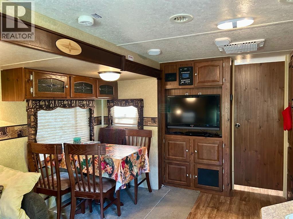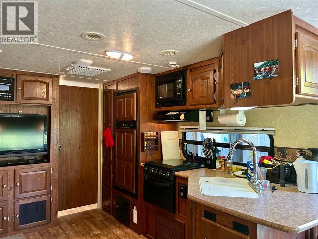 Tucked away in the quiet Riverside RV Village, this exceptional pie-shaped lot offers the perfect summer retreat for those seeking a peaceful escape without sacrificing comfort or convenience. Spanning approximately 6,000 square feet, the oversized lot is both spacious and private, thoughtfully developed to create a relaxing outdoor haven.Included with the property is a well-maintained 8’ x 30’ Forest River Inc. RV featuring one cozy bedroom—ideal for a couple or small family to unwind after a day of outdoor adventure. A sofabed adds additional sleeping space, if needed. A beautifully crafted 12’ x 20’ addition expands your living space and invites you to enjoy cooler evenings by the warmth of the propane fireplace, all while surrounded by nature.Whether you're sipping your morning coffee or relaxing on the private patio or gathering with friends around the private fire pit, this lot has everything you need to embrace the good life. The lot includes two handy sheds, with the larger one at the front offering ample room for use as a workshop, creative space, or guest overflow. Generous storage throughout the property ensures room for all your summer toys and gear.Enjoy full RV hookups and immediate access to the resort’s well-appointed clubhouse, complete with showers, washrooms, and laundry facilities—making extended stays effortless. The lot is just steps away from the Red Deer River, renowned for fishing and natural beauty, while nearby walking and biking paths let you explore the great outdoors at your own pace.The resort community also features family-friendly amenities including playgrounds, a sandpit, horseshoe pits, and even a basketball court. Golfers will appreciate the selection of scenic courses just minutes away, and with shopping close at hand, every convenience is within reach.Whether you're looking for a summer basecamp, a weekend getaway, or a quiet corner to relax and reconnect with nature, this Sundre River Resort property offers a rare bl end of comfort, recreation, and tranquility. It's more than a lot—it’s your own piece of paradise. (id:63190)