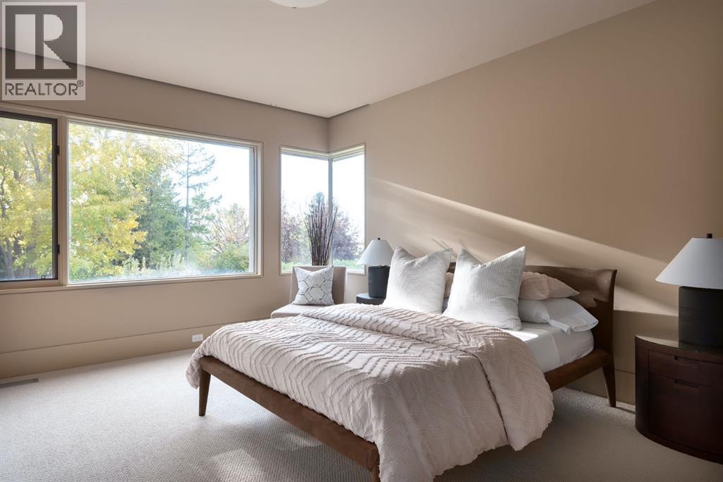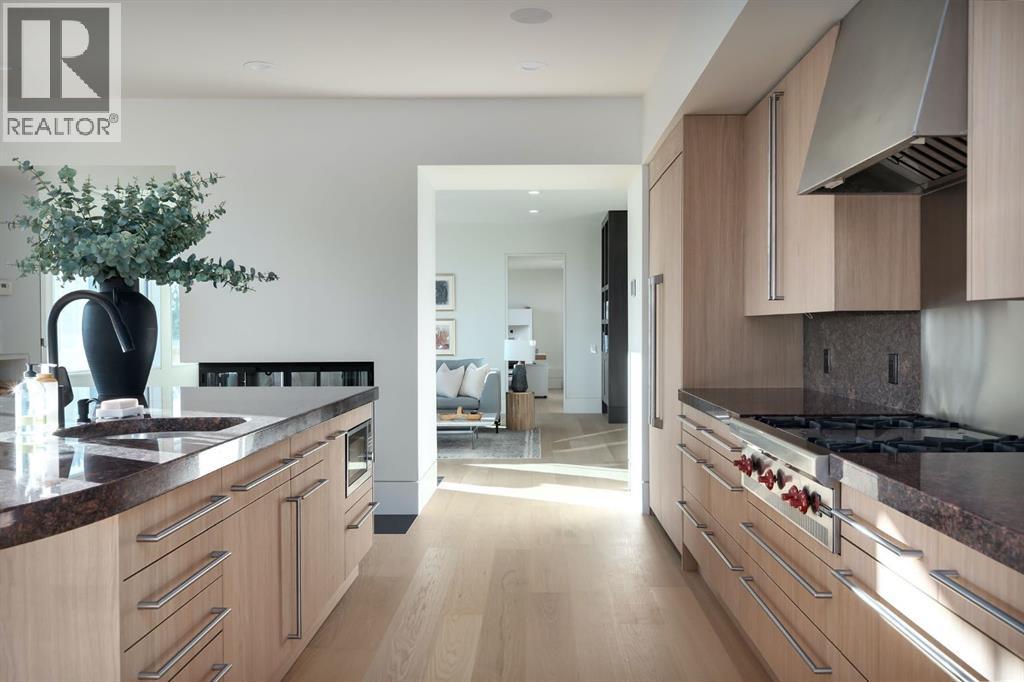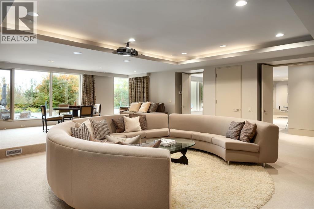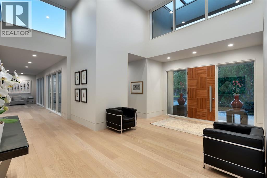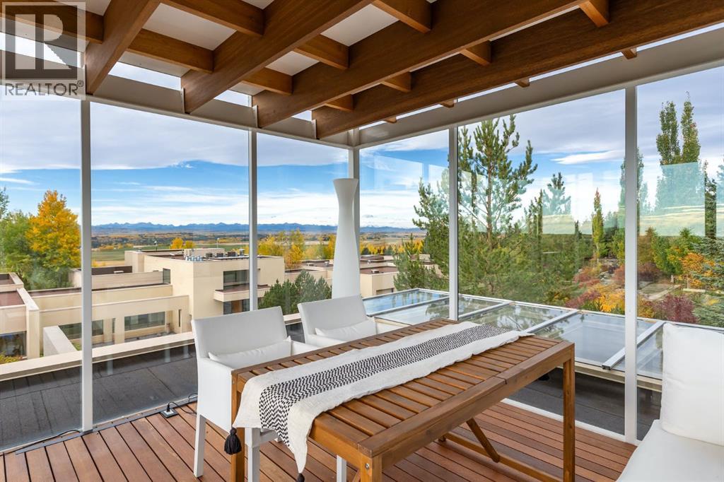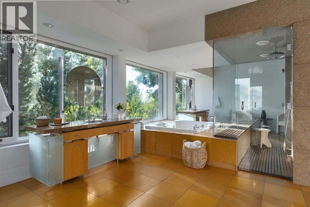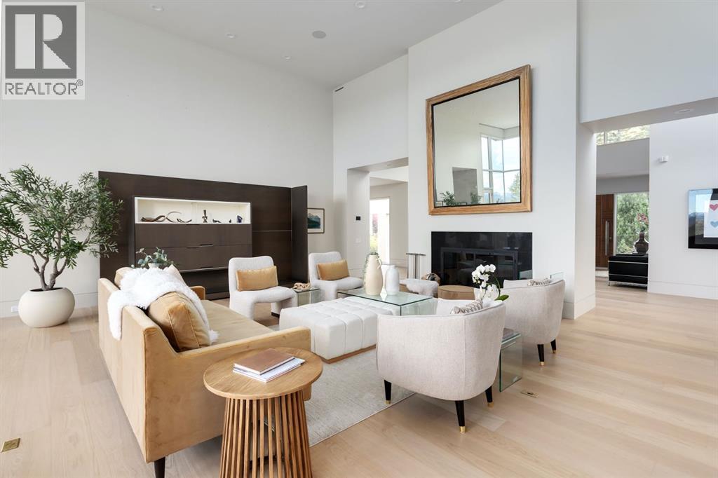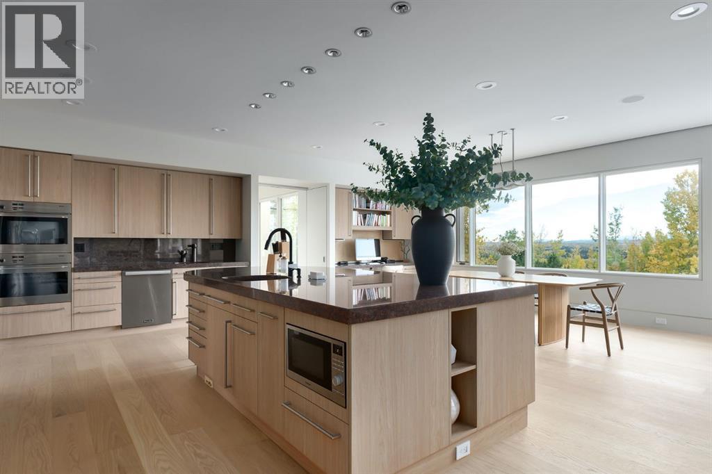 Seize a rare opportunity to own an iconic landmark in the prestigious southwest Springbank area, one of Calgary’s most coveted locations. Set on an expansive 18.62-acre escarpment, this exceptional property offers stunning mountain views and unparalleled privacy. Designed with new-age minimalism, this 20,000+ sq ft estate is a serene retreat for the discerning buyer. Located just minutes from Stoney Trail West, on the edge of Calgary, this secluded paradise offers the ultimate in luxury living. With 6 bedrooms + 10 bathrooms + 2 large offices, the home features stunning architectural design, including soaring flat & vaulted ceilings, a grand two-story great room illuminated by expansive windows. The contemporary living spaces are complemented by a soothing wood fireplace & ZEN garden inspired hallway views. The spacious dining room, perfect for memorable gatherings, overlooks beautifully landscaped grounds and majestic mountain vistas. Ample vehicle storage includes an oversized 3 car garage, a 2 car garage, and an additional oversized auxiliary 3 car garage (all heated). The gourmet kitchen is a chef’s dream, featuring a Wolf gas range with dual ovens, a built-in refrigerator, a walk-in pantry, an oversized granite island and custom white oak cabinetry. The adjacent family room includes a cozy fireplace, while the sunroom with another fireplace is perfect for family game or movie nights. The bedroom wing, secured by fire doors, houses the luxurious primary suite, a tranquil haven with views of mature trees and a lounge area with a fireplace. The ensuite boasts a deep soaker tub, granite dual-sink vanity, dual toilets, a bidet, and 2 oversized showers, along with a spacious walk-in closet. Four additional bedrooms, each with its own ensuite, are located in the bedroom wing, along with a laundry room and extra storage. Heated floors throughout both the main and lower levels provide year-round comfort. The lower level offers an additional bedroom with a full bathroom, a dedicated hot tub room, a spacious exercise room, an office and a large recreation room. A nearby bar and media room add to the entertainment space, while a walk-up entrance leads to the beautifully landscaped backyard, where a large in-ground pool awaits. Outdoor spaces include southwest-facing decks and a patio, a vast yard, and a middle courtyard with a sports court. An auxiliary building offers potential as a future guest house. The property has undergone millions of dollars in recent landscaping, with paved and natural pathways, waterfall features, and hidden sitting areas. Two security gates, fencing, and surveillance cameras ensure your privacy and security. This magnificent estate offers a private oasis with rolling hills, lush gardens, and elaborate landscaping that rivals anything in Aspen Hills—yet is only five minutes away from top-tier private schools. Experience the pinnacle of luxury living in Canada. Schedule your private tour today and discover all that your next home has to offer. (id:63190)