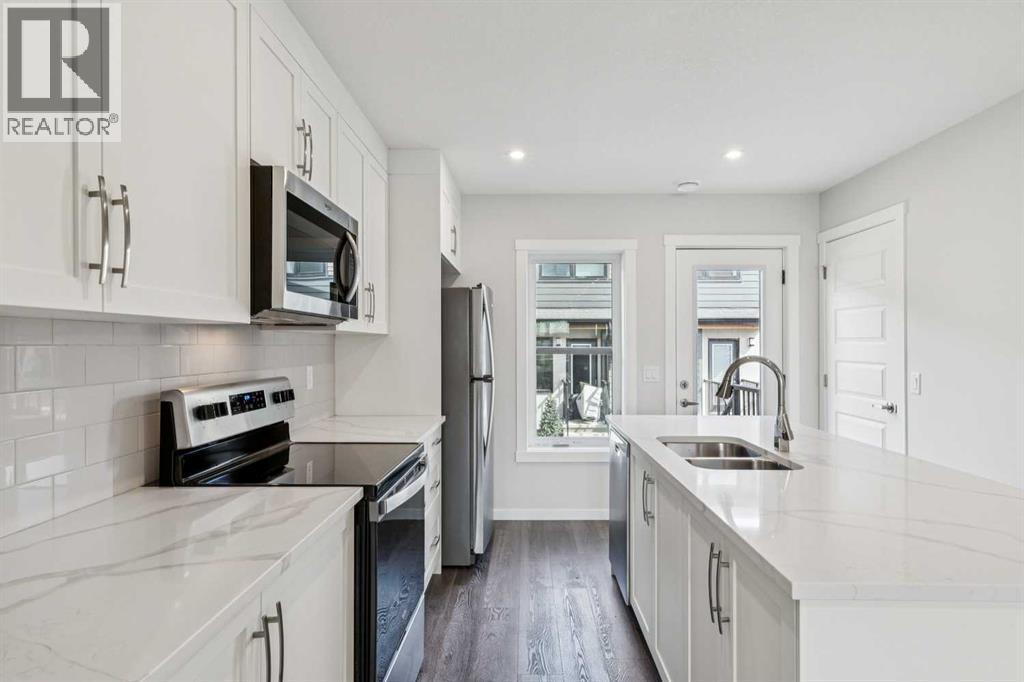 Welcome to your brand new Zen Mahogany condo that combines smart design, everyday comfort, and exceptional location. This 2-storey Ambrosia Floorplan is built with energy efficiency top of mind, going beyond the standard. It features superior insulation that exceeds building codes by 40%, double-coated triple-pane windows, and a fresh air system (HRV) to ensure year-round comfort and air quality. Inside, quartz countertops, stainless steel appliances, and luxury vinyl plank flooring offer a clean, modern aesthetic with lasting durability.The open-concept layout welcomes you with a bright living area that flows naturally into the dining space and stylish kitchen, complete with a central island and direct access to the fenced yard—perfect for both everyday living. Upstairs, two generously sized bedrooms each offer their own private ensuite, providing both functionality and privacy. The Ambrosia layout is both functional and beautiful, perfect for you and your pets to enjoy—that's right, this home is pet friendly!Beyond the home itself, you’ll enjoy access to Mahogany’s Westman Village just a few blocks away—a vibrant lifestyle hub filled with dining, fitness, and entertainment options. Access to Lake Mahogany and the Beach Club is an additional feature, giving you access to amazing recreational amenities, community events, and a space for connection. Quick routes to Deerfoot and Stoney Trail and close proximity to the South Health Campus in Seton ensure your daily commute and errands are always easy. This isn’t just a home—it’s a lifestyle upgrade. Come see what Mahogany living in the ZEN Mahogany community will look like for you! (id:63190)