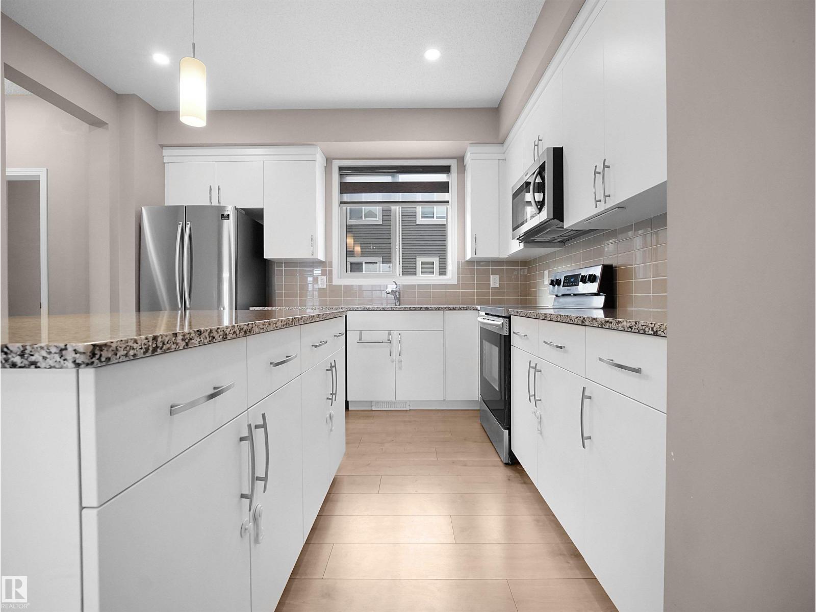 BEST VALUE IN WALKER — PRICED TO SELL! Welcome to Mattamy’s sought-after Crescent Trails – Harvest Model, offering exceptional value in Southeast Edmonton. This bright, modern open-concept townhouse features 1,553 sq ft of well-planned living space with stylish finishes throughout. The contemporary kitchen boasts upgraded cabinetry, a large island with eating bar, tiled backsplash, and OTR microwave—perfect for daily living and entertaining. The spacious living and dining areas are filled with natural light and enhanced by a cozy electric fireplace. Upstairs you’ll find 3 good-sized bedrooms, including a generous primary suite with walk-in closet and 4-piece ensuite. Enjoy the convenience of a double attached garage, low condo fees, a private balcony, and ample street parking for guests. Located steps from walking trails and close to schools, shopping, and major routes. Modern design, unbeatable value, and priced to sell—this one won’t last! (id:63190)