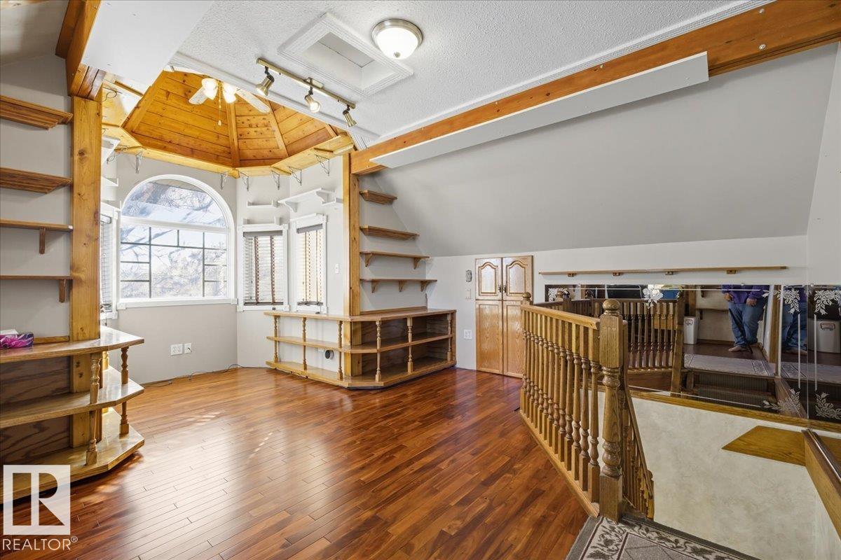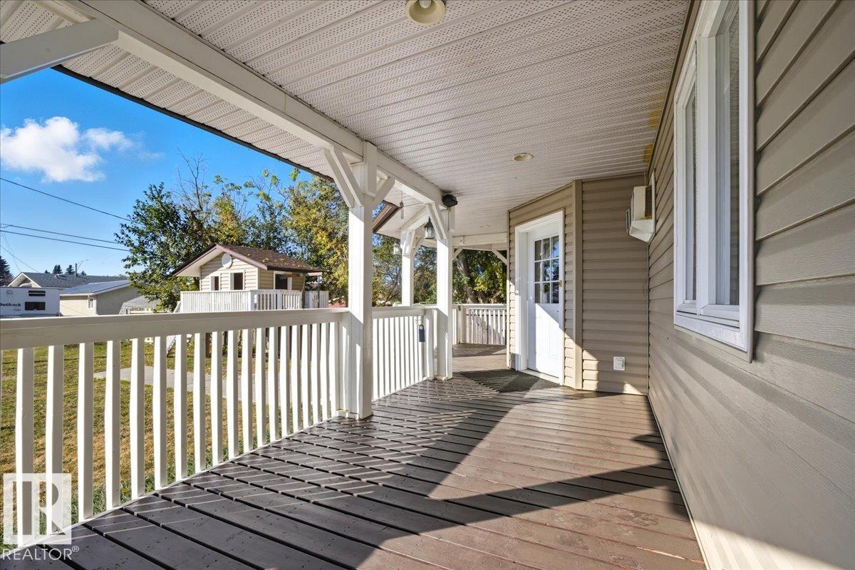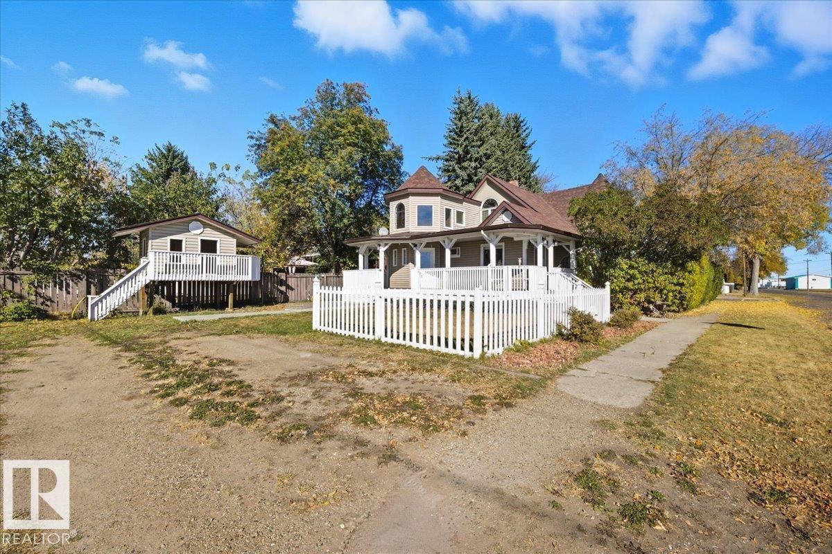 Charming 2-Storey Character Home! Step into timeless charm w/ this unique & beautifully maintained home, featuring a welcoming enclosed front porch & spacious back veranda, perfect for relaxing. Inside, you will fall in love w/ the custom kitchen (Wood Art) boasting solid oak cabinetry & mosaic tile flooring— perfect for the home chef. The formal dining room shines w/hardwood floors & a vintage chandelier, while the cozy living room includes a den/office space for added flexibility. Upstairs, discover a loft-style layout w/ 2 unique bedrooms including a spacious primary suite w/ built-in cabinetry, custom solid wood bed, 4-pc ensuite, w/i closet & private balcony. The 2nd room is bright & unique w/ octagonal ceiling & 2nd staircase to the main floor. The partially finished basement offers a workshop, laundry, 3-pc bath & loads of storage. Recent updates include a newer furnace & tankless hot water system. The landscaped, partially fenced yard offers mature trees for privacy, space for parking, and a playh (id:63190)